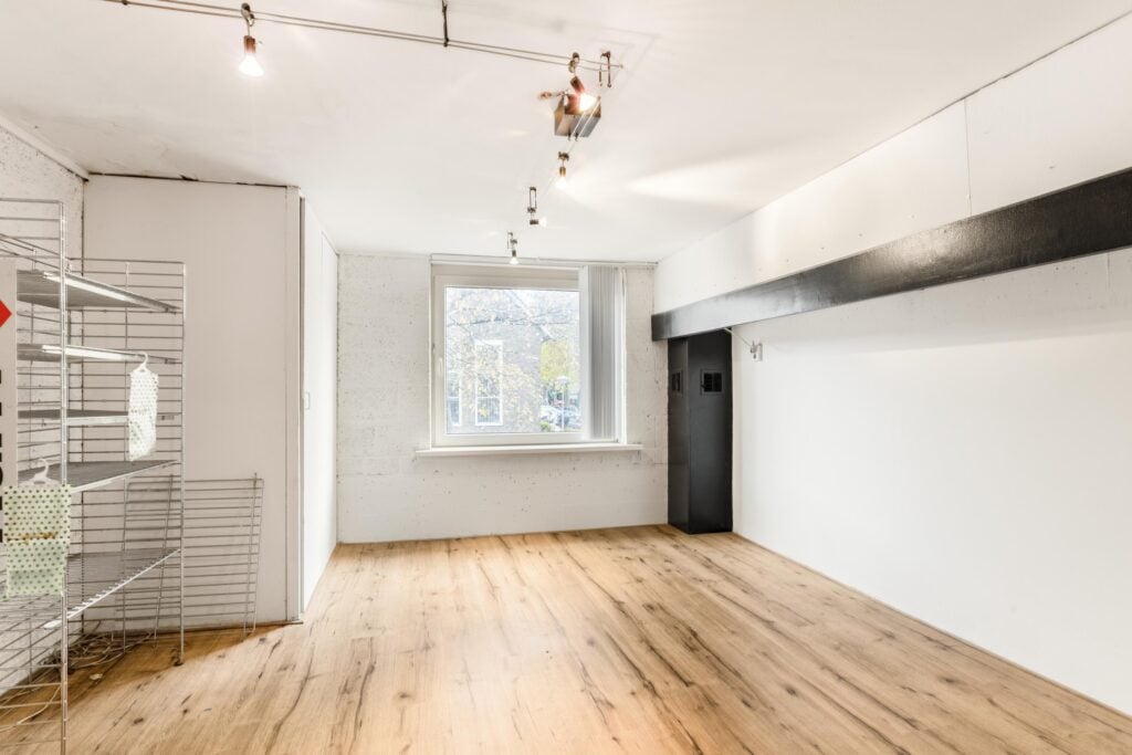 Deze commerciële ruimte maakt deel uit van het te verkopen geheel en biedt uitstekende mogelijkheden voor detailhandel, dienstverlening of atelier. De brede etalage pui, diepe verkoopvloer, kantoor-/opslagruimte en extra verdieping maken dit een aantrekkelijke bedrijfsruimte met hoge zichtbaarheid.