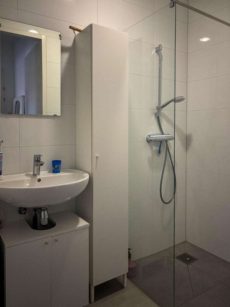Het 3-kamerappartement bevindt zich op de eerste verdieping en is te bereiken via een trap. De ruimte is luxe afgewerkt met stijlvolle pvc-vloeren, hoge plinten, glad gestucte en wit gesausde wanden, een moderne keuken voorzien van diverse inbouwapparatuur en een fraaie badkamer met douche en wastafel.