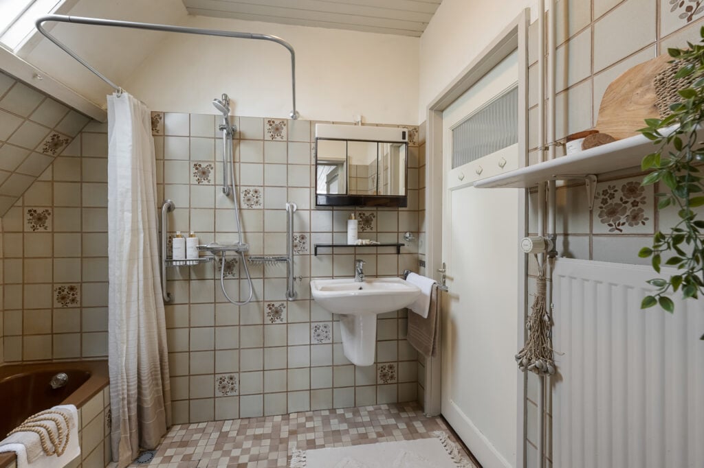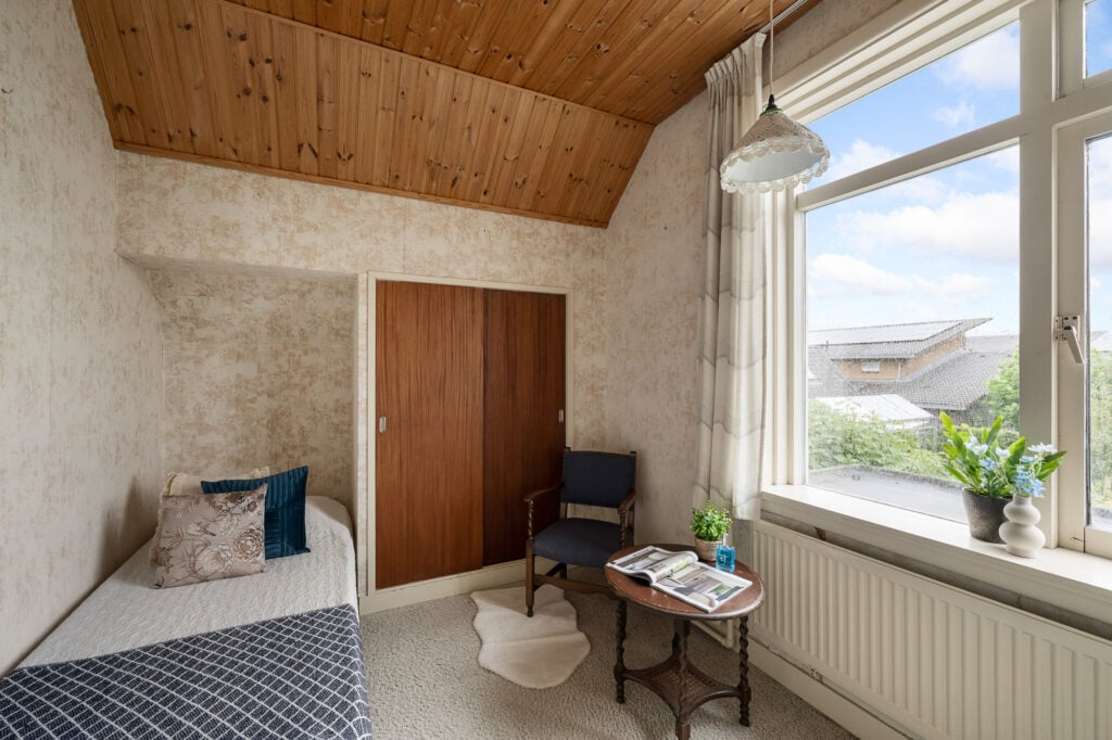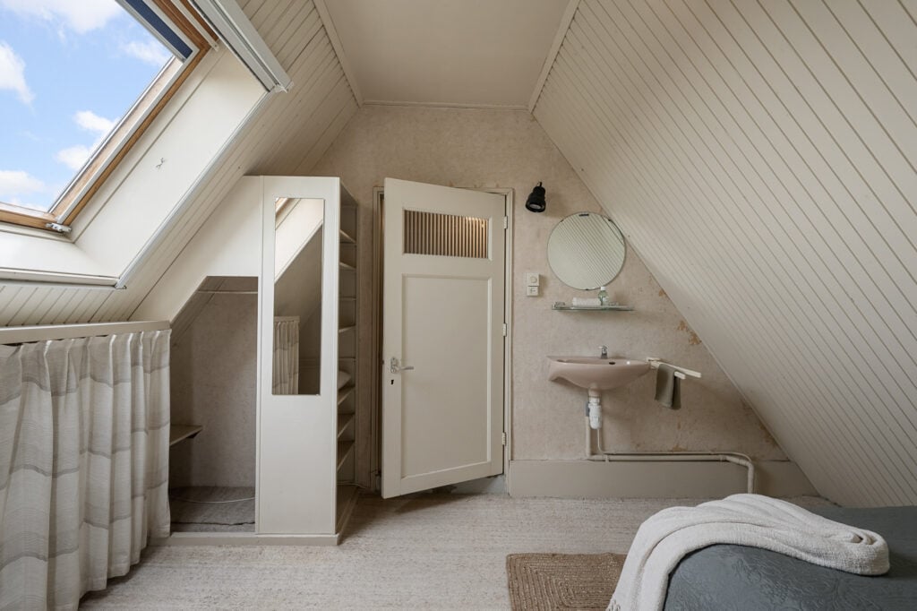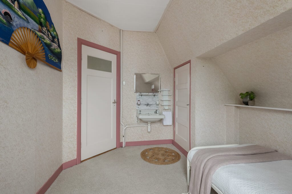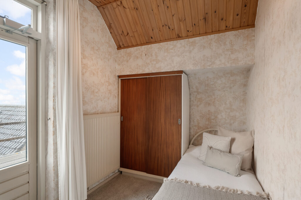 Op de verdiepingen vind je de ruime slaapkamers, elk met hun eigen karakter en uitstraling. De kamers zijn goed van formaat en bieden volop mogelijkheden voor inrichting naar eigen smaak. De badkamer, hoewel toe aan modernisering, beschikt over alle benodigde voorzieningen.
