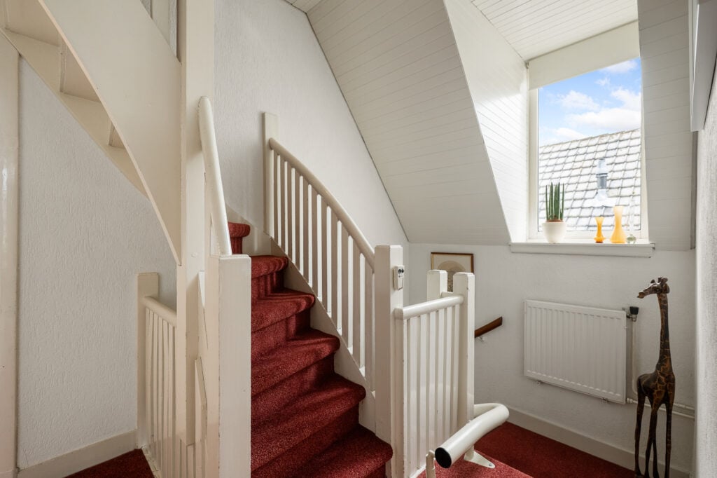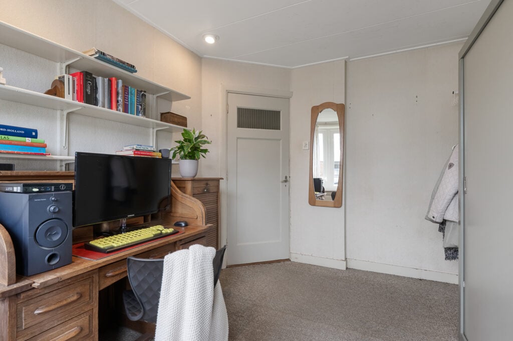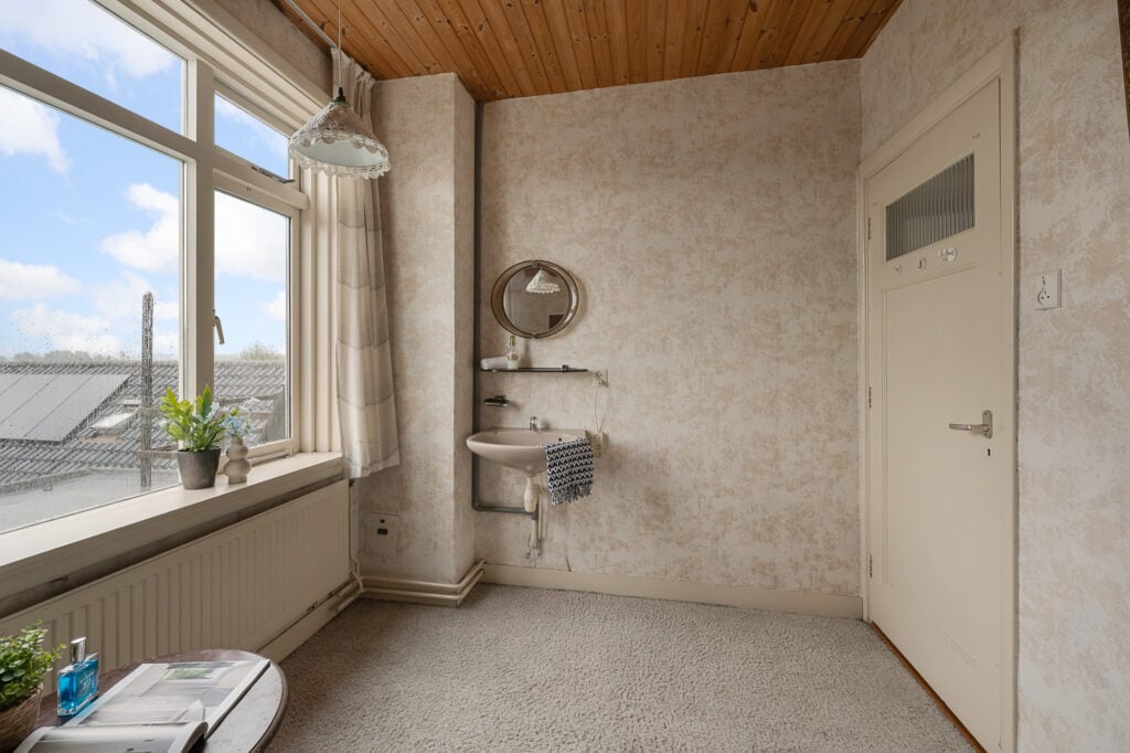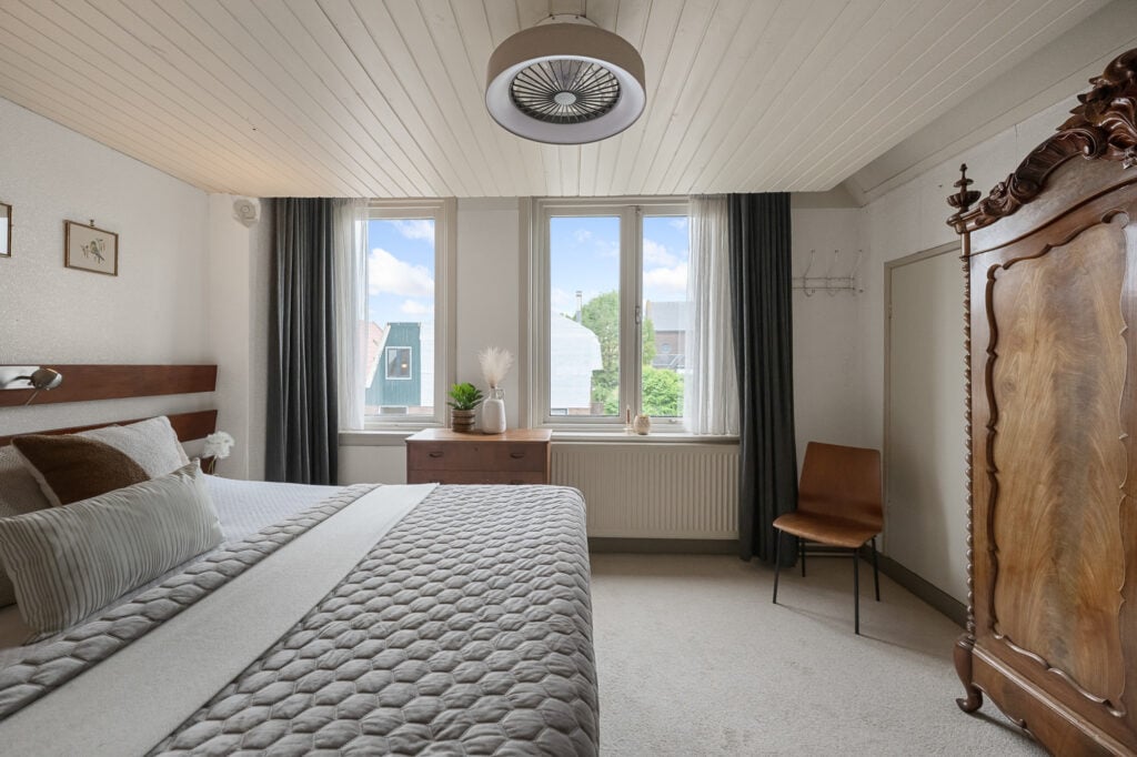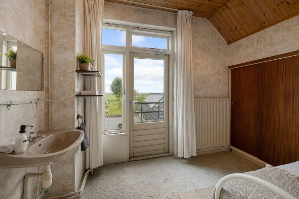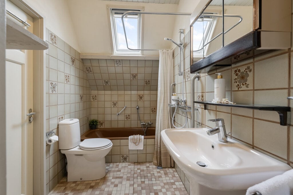 Op de verdiepingen vind je de ruime slaapkamers, elk met hun eigen karakter en uitstraling. De kamers zijn goed van formaat en bieden volop mogelijkheden voor inrichting naar eigen smaak. De badkamer, hoewel toe aan modernisering, beschikt over alle benodigde voorzieningen.
