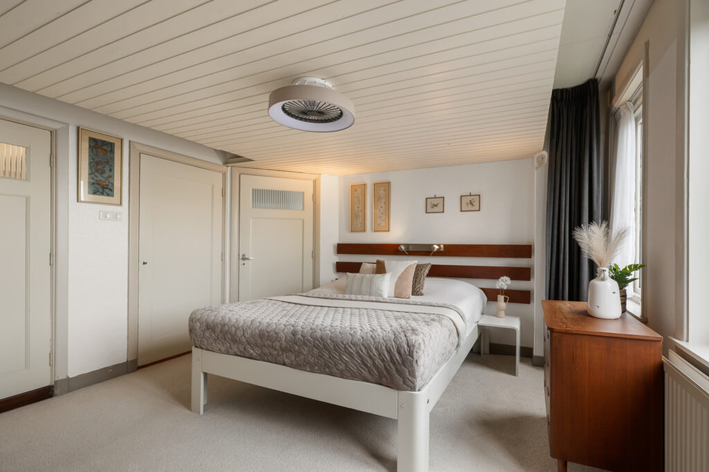 Wat deze woning bijzonder maakt, is de ligging. Aan de achterzijde geniet je van een weids uitzicht over het vaarwater en een royale tuin op het zuiden van maar liefst 971 m². Aan de voorkant kijk je uit richting natuurgebied ’t Zwet – een charmant doorkijkje dat rust en ruimte benadrukt.