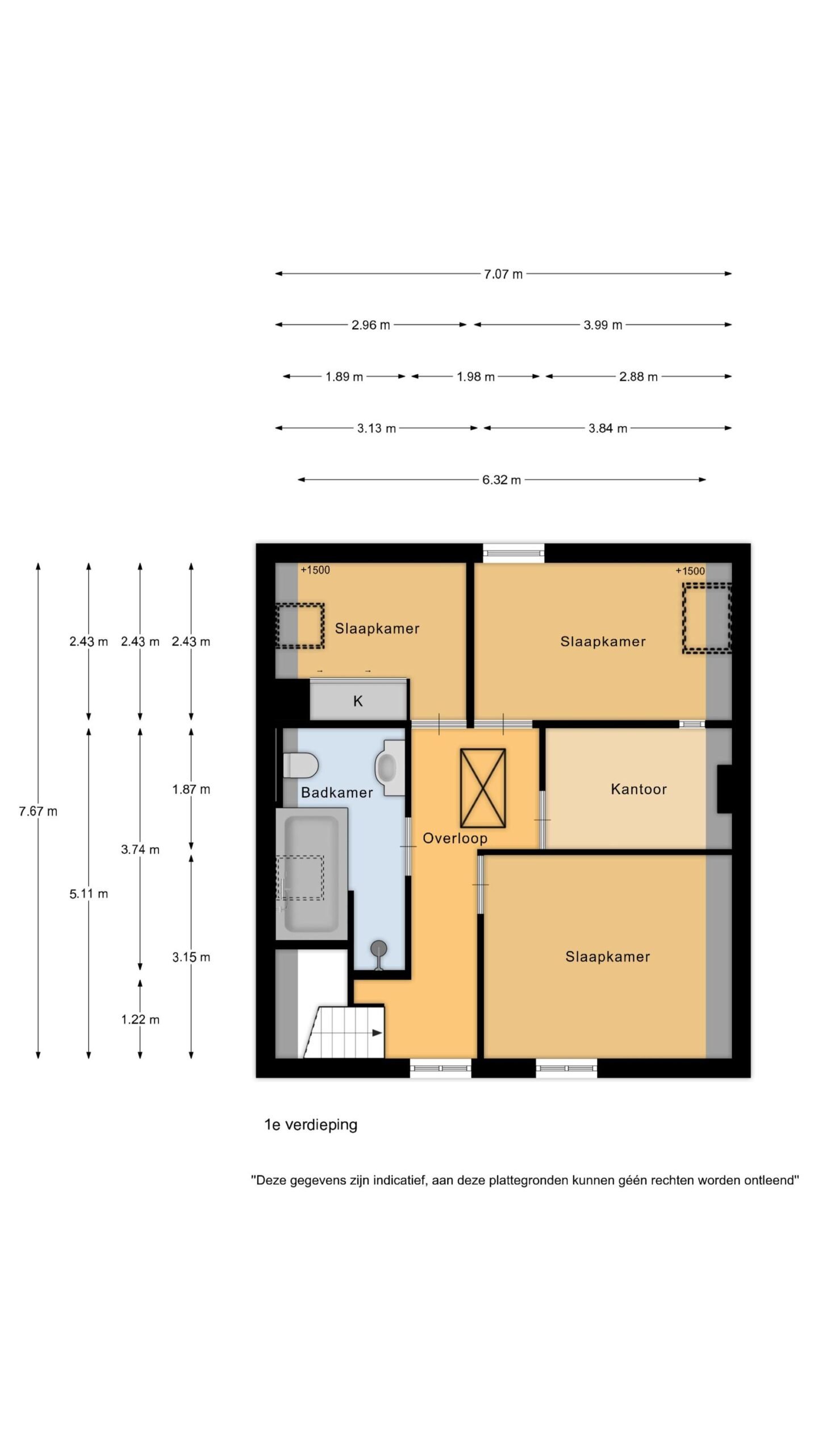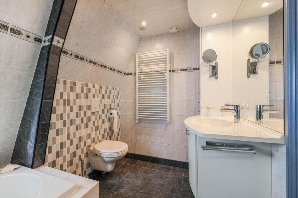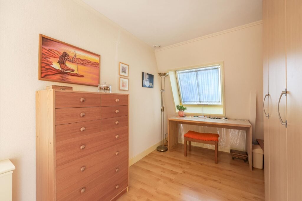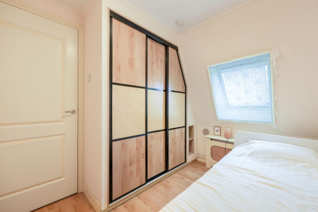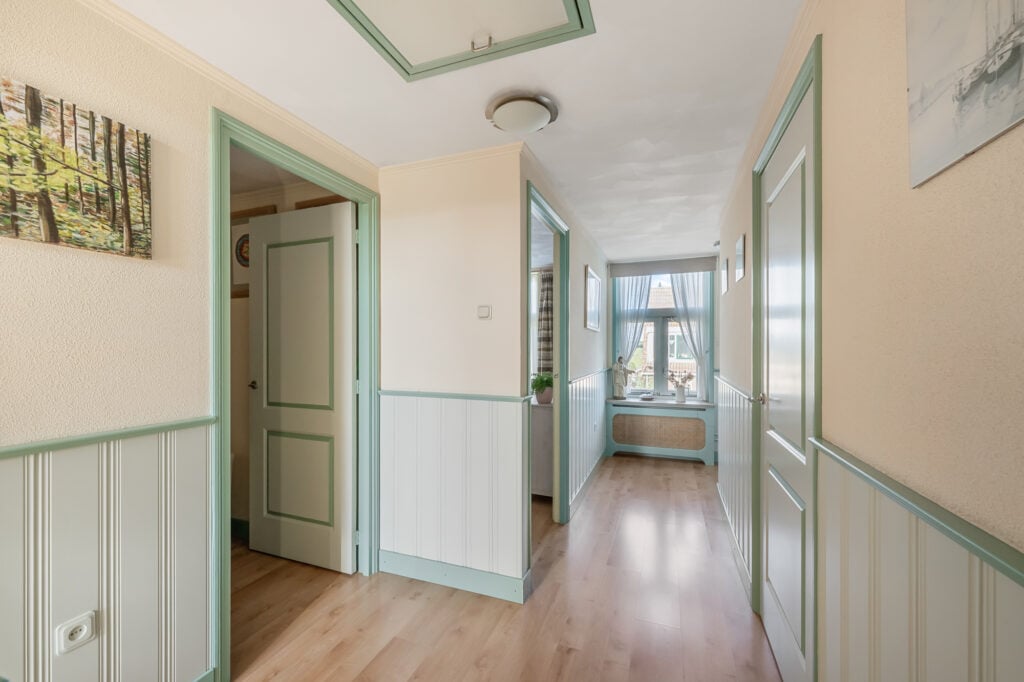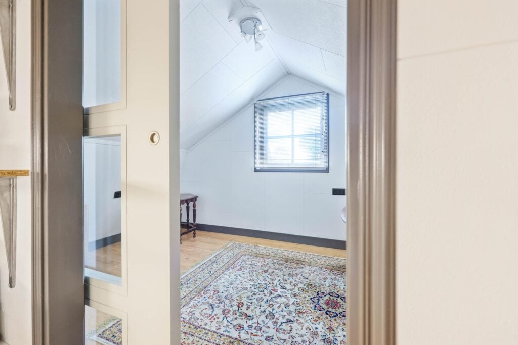 Laten we teruggaan naar de woning, waar we op de eerste verdieping drie ruime slaapkamers aantreffen. Dankzij de mansardekap zijn deze kamers niet alleen praktisch, maar ook royaal van formaat, met volop mogelijkheden om ze naar eigen wens in te richten. Ook beschik je nog over een extra kamer die perfect dient als walk-in closet. Denk aan een sfeervolle master bedroom, een kinderkamer of juist een fijne werkplek. We lopen verder en komen bij de badkamer. Deze is stijlvol en compleet uitgevoerd, met een ligbad voor de ontspanning, een inloopdouche voor het dagelijkse gemak, een wastafel en een toilet. Alles wat je nodig hebt, overzichtelijk bij elkaar.