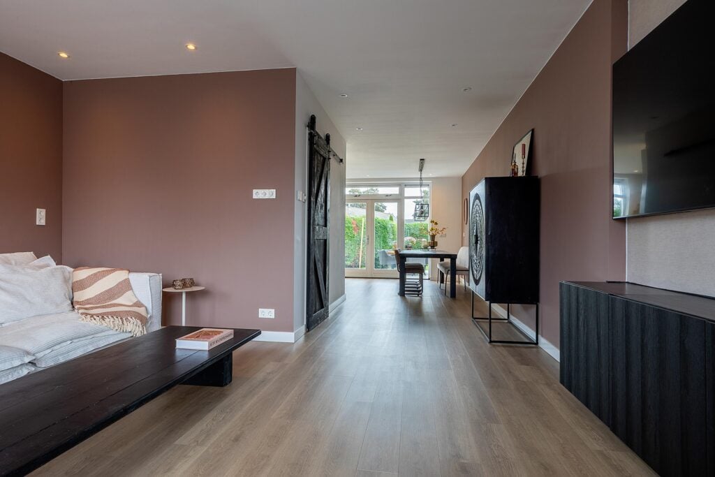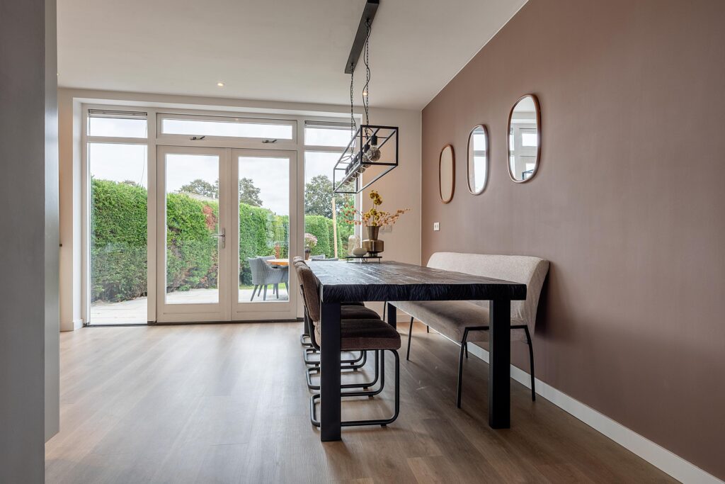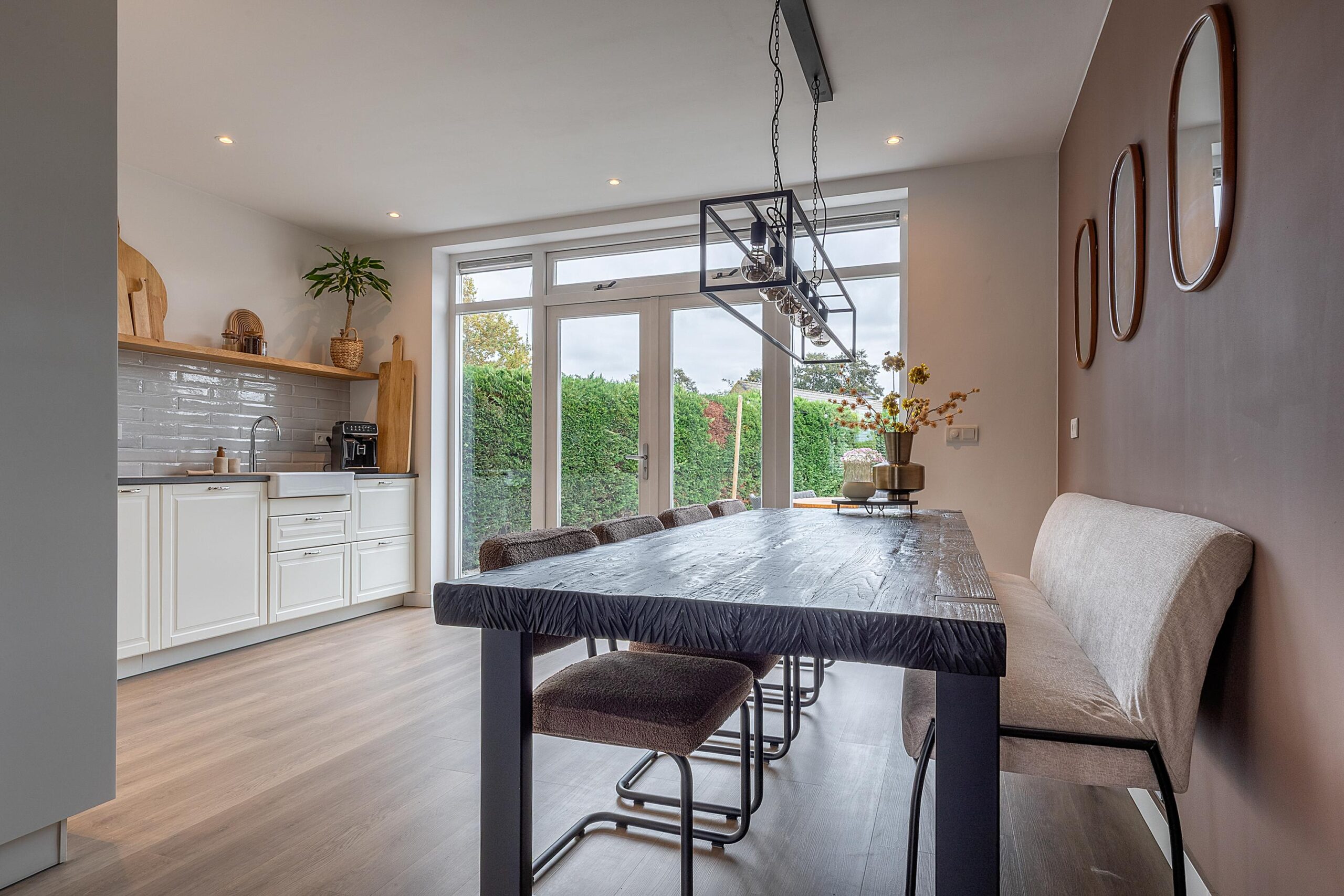 Via de voordeur stap je binnen in de lichte hal, waarna je de sfeervolle woonkamer betreedt. De gehele begane grond is voorzien van vloerverwarming en is hoogwaardig afgewerkt. De achterzijde van de woning is uitgebouwd en in 2020 vernieuwd, waardoor je nu een heerlijke zitruimte hebt met volop plek voor een grote eettafel. Dankzij de openslaande deuren staat de tuin op zonnige dagen in directe verbinding met de woning. Aan de voorzijde vind je de keuken uit 2023 – strak wit uitgevoerd en voorzien van moderne apparatuur, waaronder een Quooker (eveneens uit 2023). Deze ruimte vormt een stijlvol en praktisch geheel en is echt het hart van het huis.
