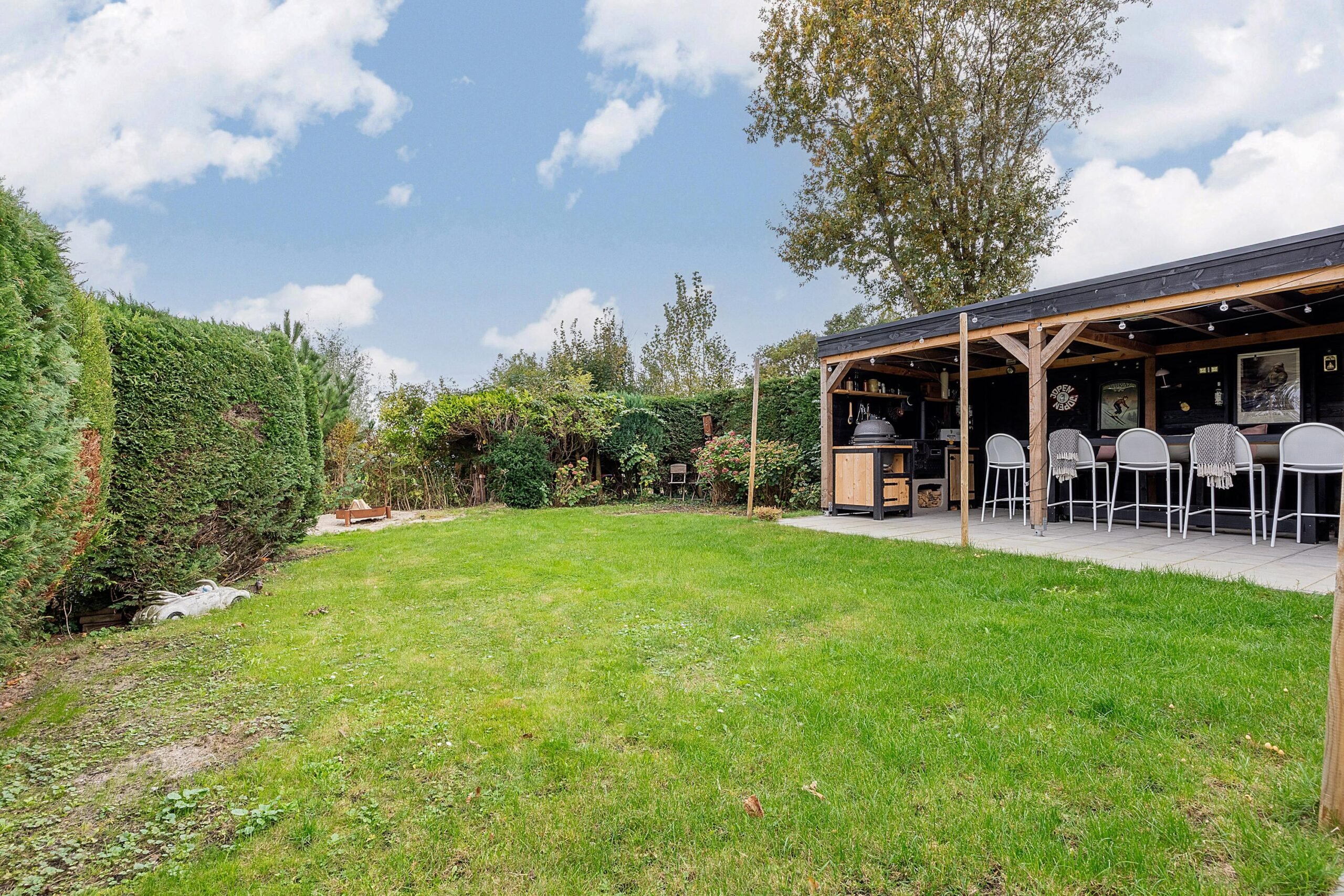 Via de openslaande deuren kom je in de zonnige tuin op het westen, waar je de hele middag en avond van de zon kunt genieten. Achterin de tuin staat een ruime houten overkapping uit 2024, waar je heerlijk kunt ontspannen in de schaduw of met vrienden kunt borrelen op warme avonden. Vanuit je tuin vaar je zó weg richting ‘De Delft’ – de woning ligt namelijk direct aan vaarwater. Tot slot is er een ruime garage aanwezig: ideaal voor opslag, hobby’s of het parkeren van je auto.