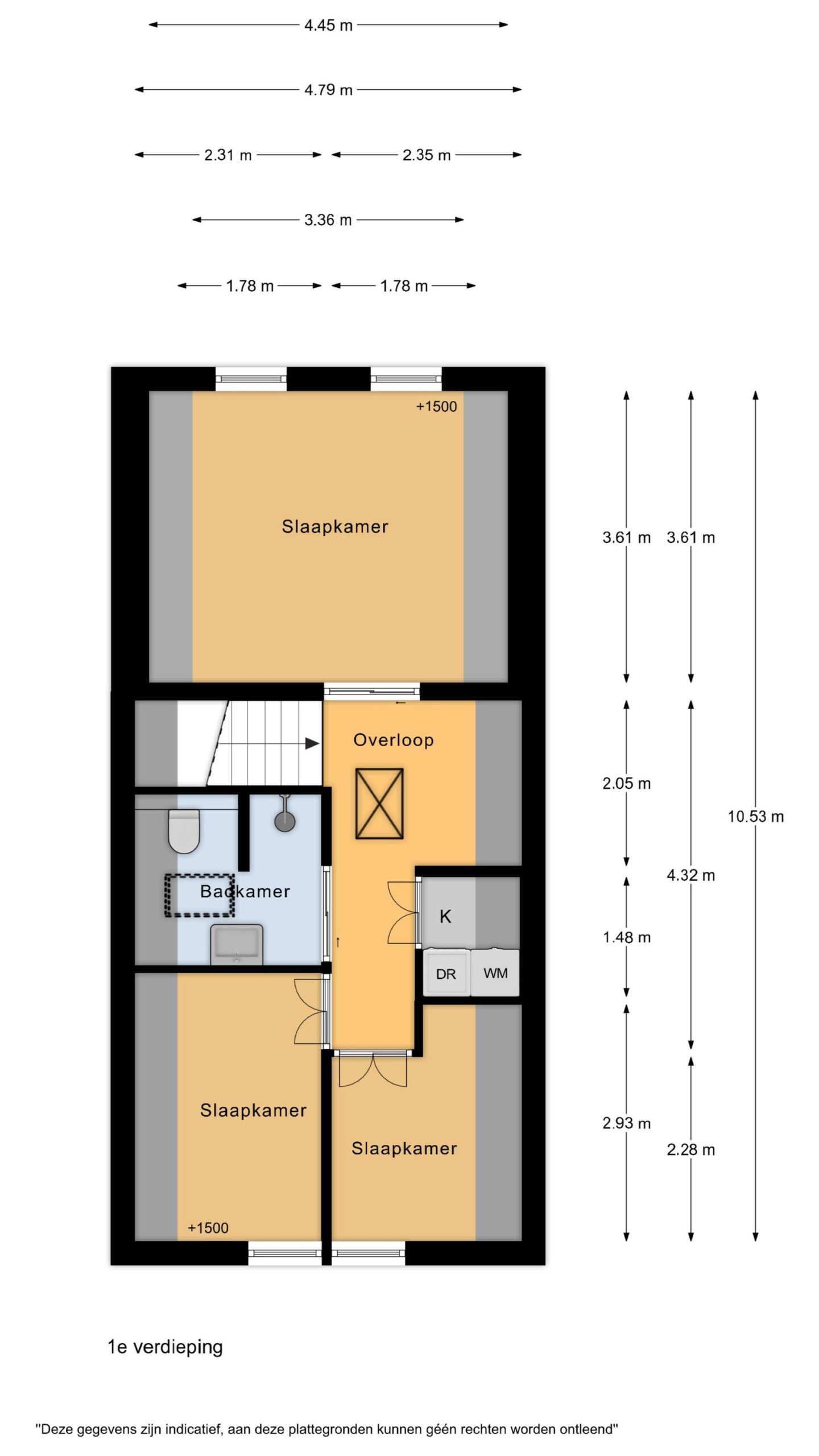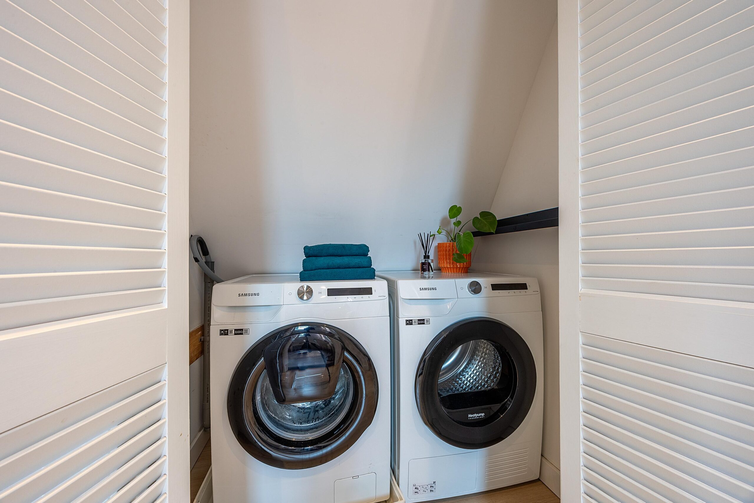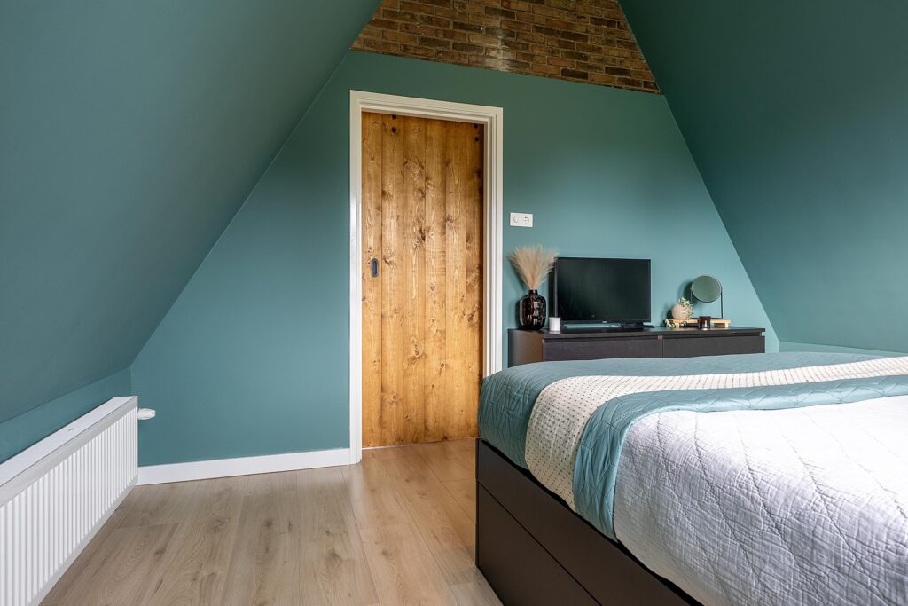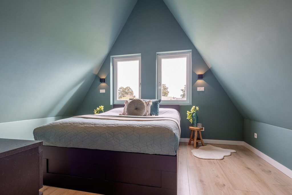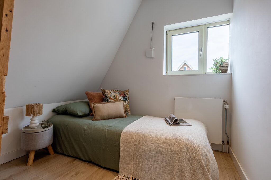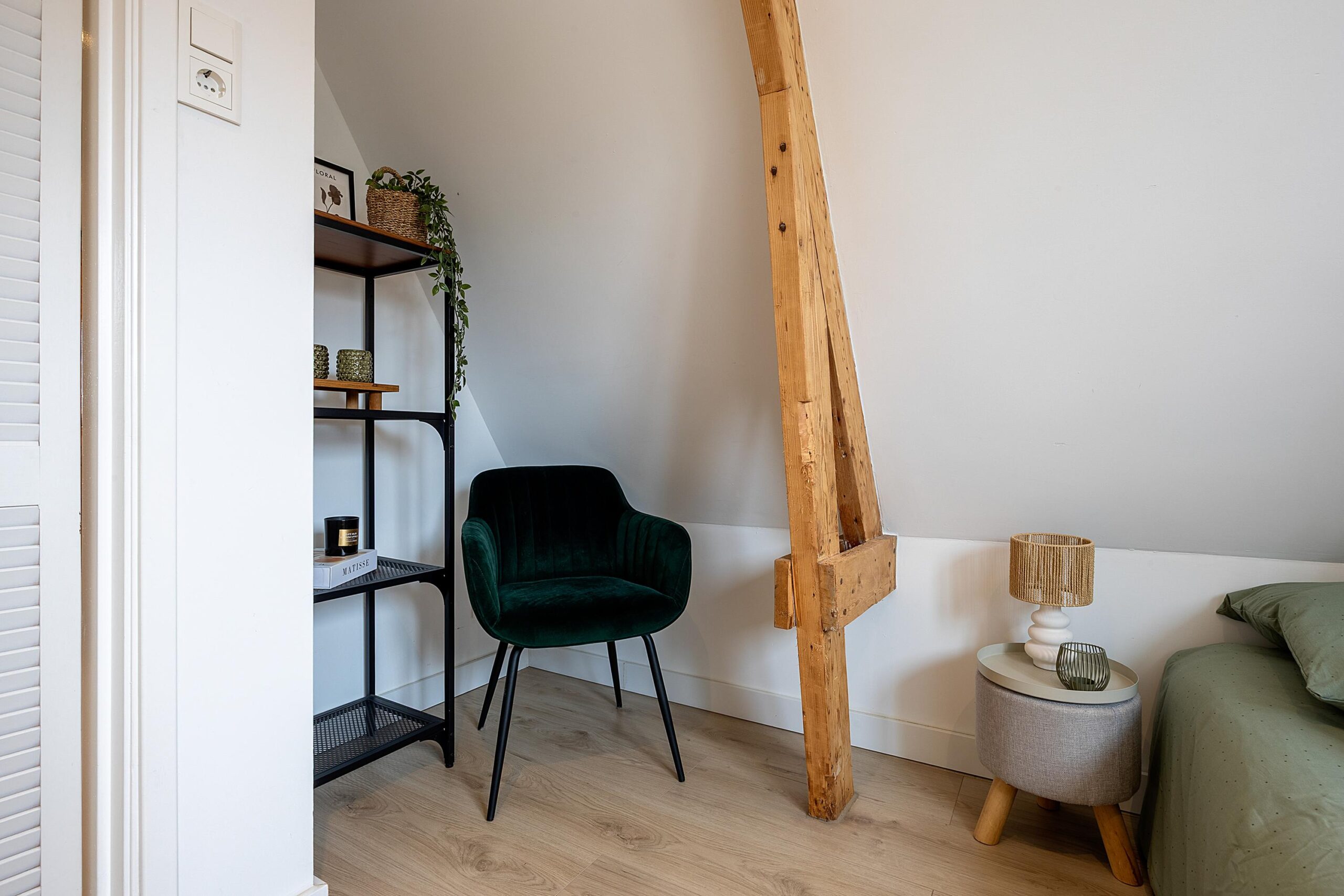 Ook boven is alles tot in detail verzorgd. Op de eerste verdieping bevinden zich drie slaapkamers, waaronder een ruime master bedroom met voldoende plek en een rustige, verzorgde uitstraling. De andere twee kamers zijn perfect te gebruiken als kinder- of werkkamer, of zelfs als inloopkast. De badkamer is in 2023 volledig vernieuwd en verkeert in uitstekende staat. Je vindt hier een moderne inloopdouche, een strak wastafelmeubel en een tweede toilet. Alles is netjes betegeld en voorzien van elektrische vloerverwarming – heerlijk comfortabel in de koudere maanden. Op de overloop is een nette kast met aansluitingen voor de wasmachine en droger, praktisch weggewerkt achter deuren zodat het geheel verzorgd oogt. Bovendien is er een extra vliering aanwezig, ideaal voor het opbergen van seizoensspullen.