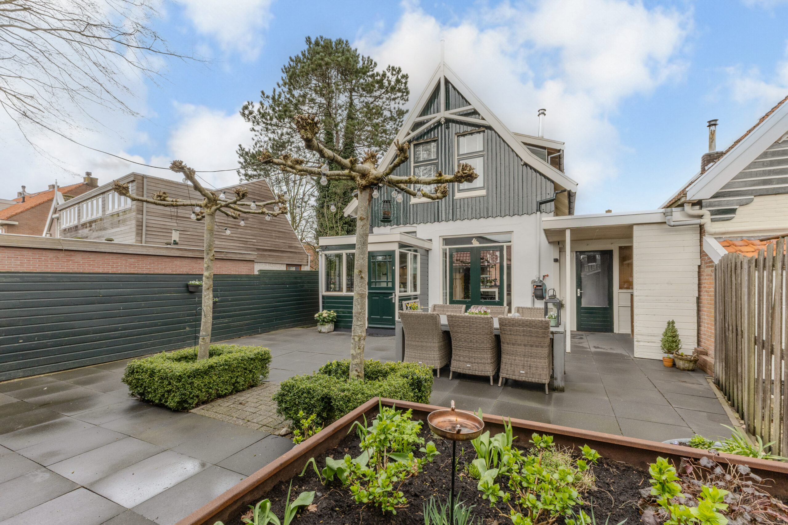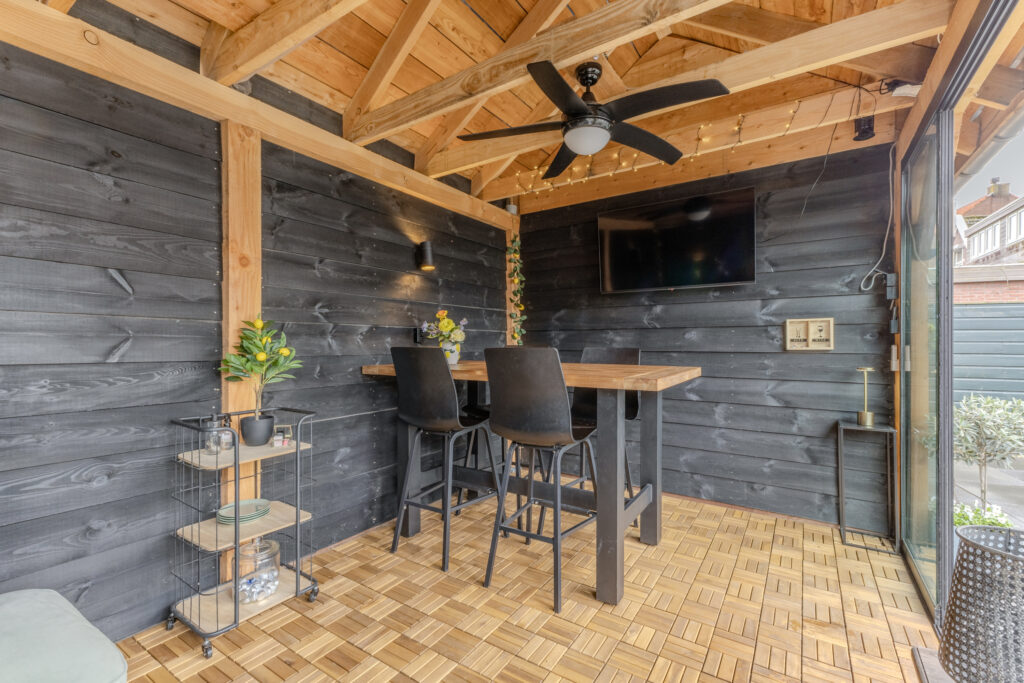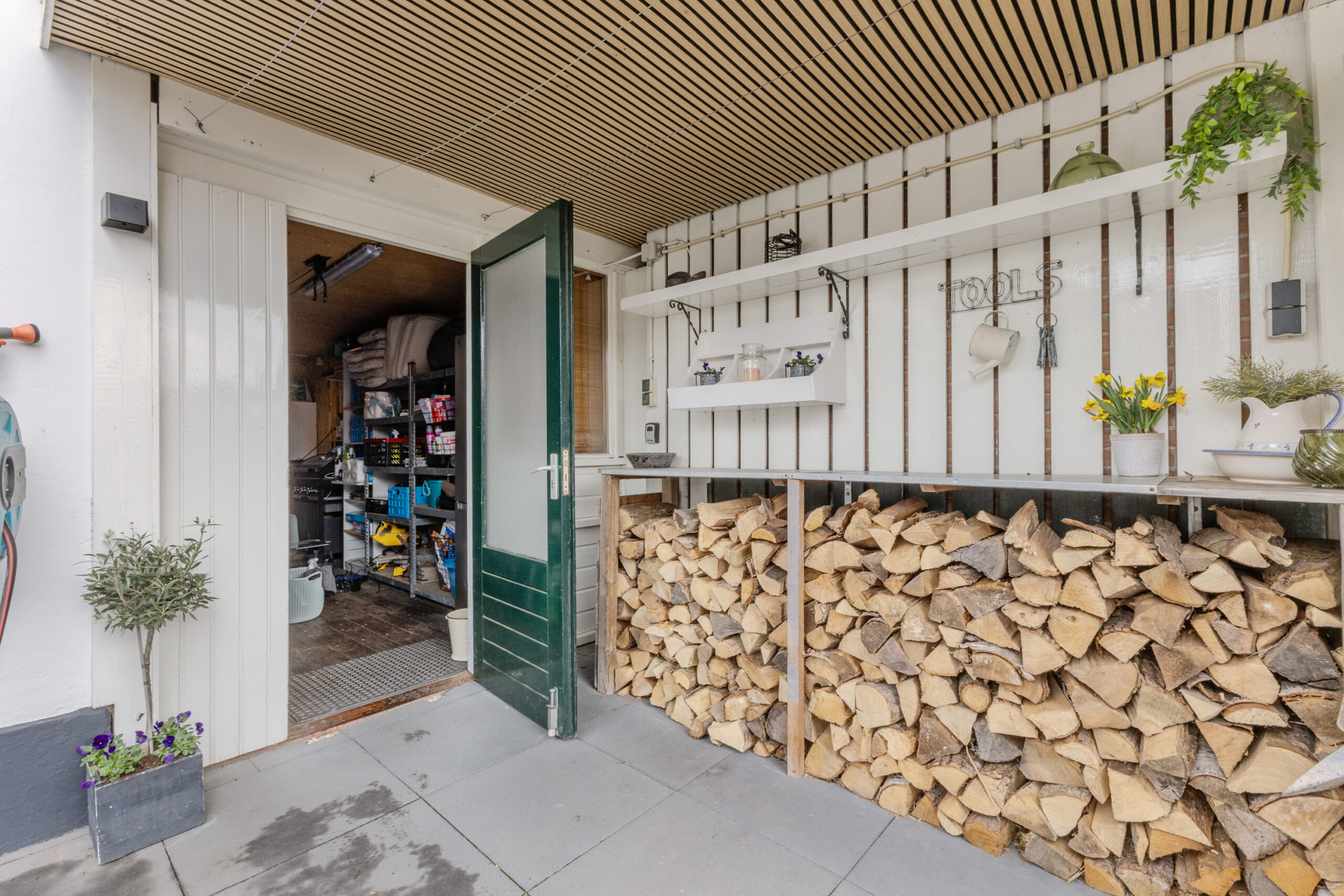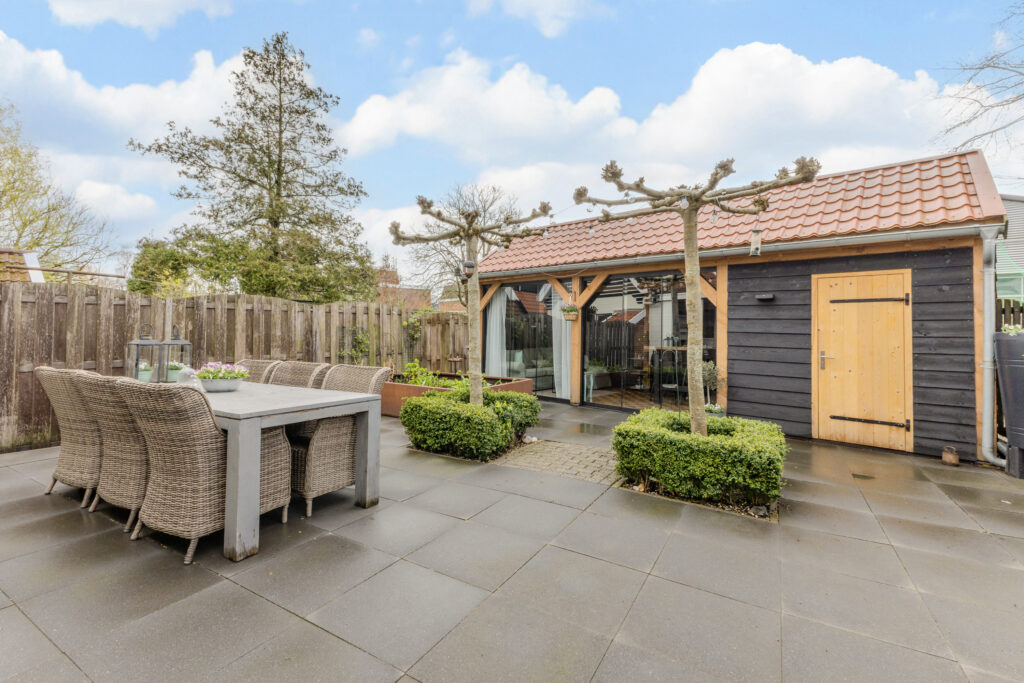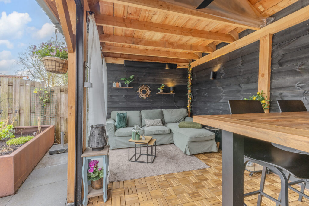 • Tuinhuis/berging en overkapping in de achtertuin