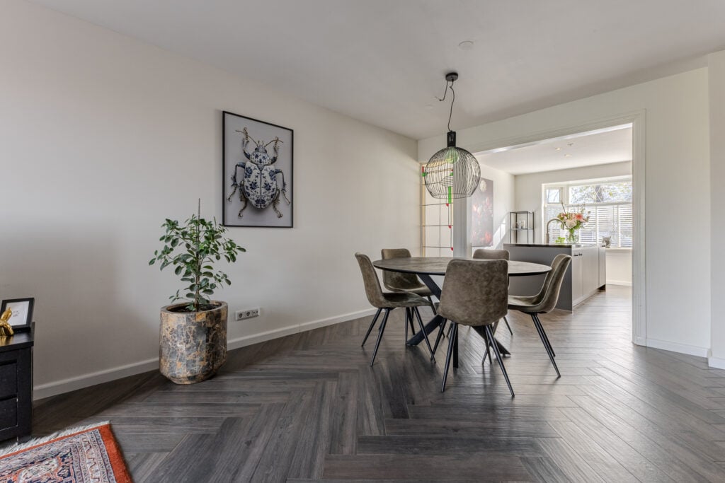 – Ruime woonkamer met visgraatvloer en vloerverwarming;