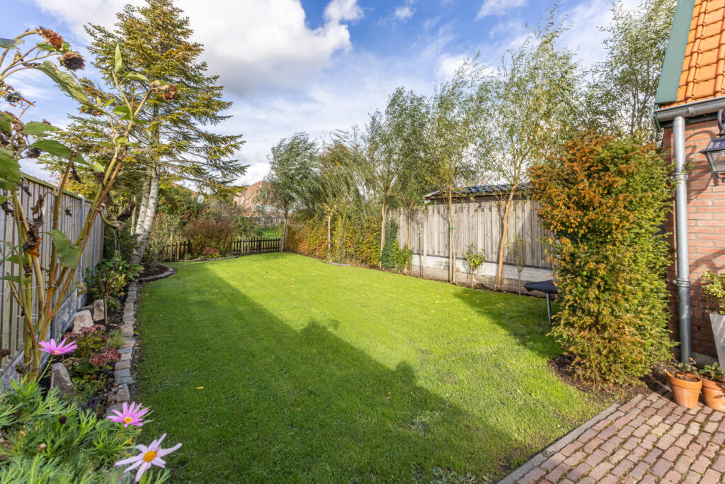 Dan de tuin, en wat voor één. Met een diepte van circa 27 meter is er altijd wel een plek in de zon of schaduw te vinden. Je hebt hier een perfecte combinatie van groen, privacy en ruimte, zonder directe achterburen en dus zonder inkijk. Achterin de tuin staat een vrijstaande stenen berging, ideaal voor fietsen en tuingereedschap. De berging beschikt over een vliering waar seizoensspullen eenvoudig kunnen worden opgeborgen.