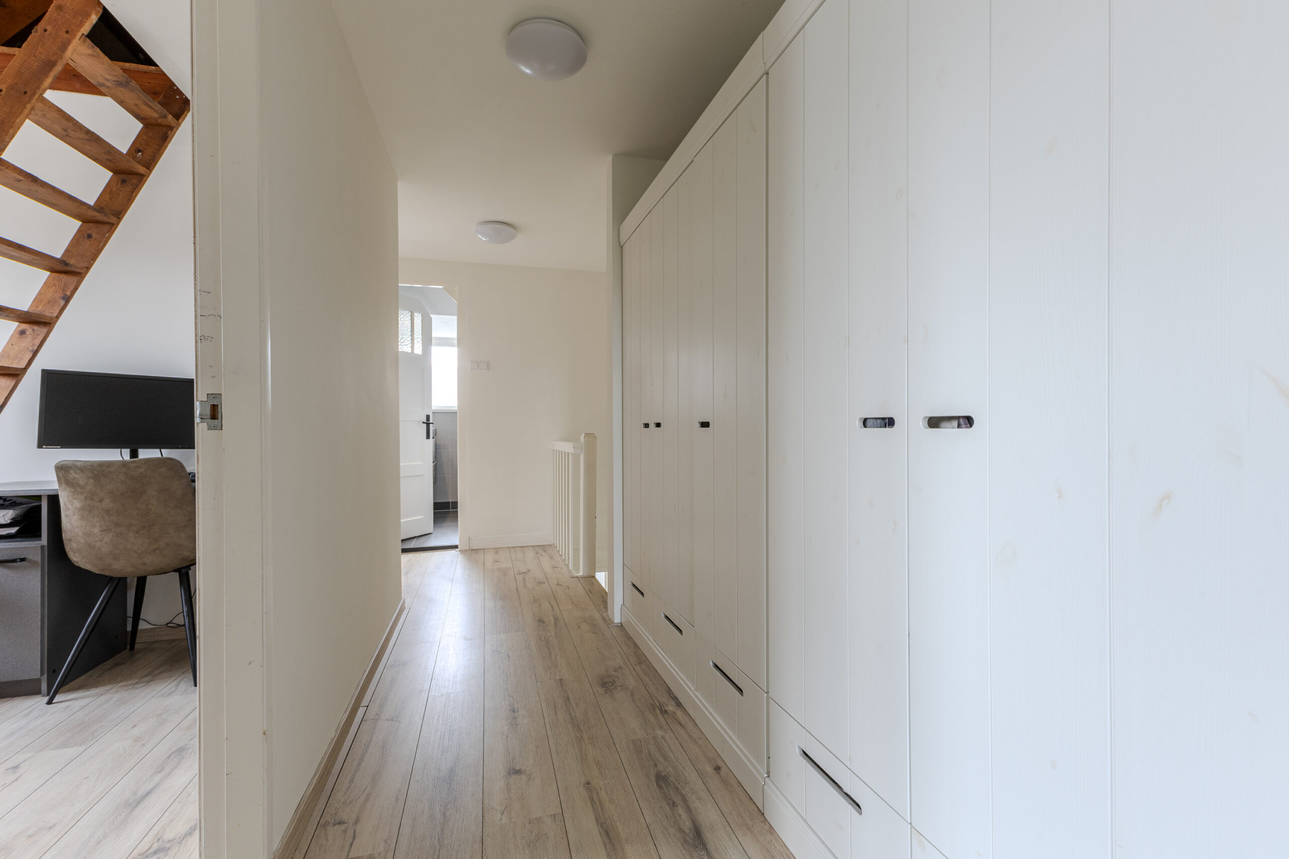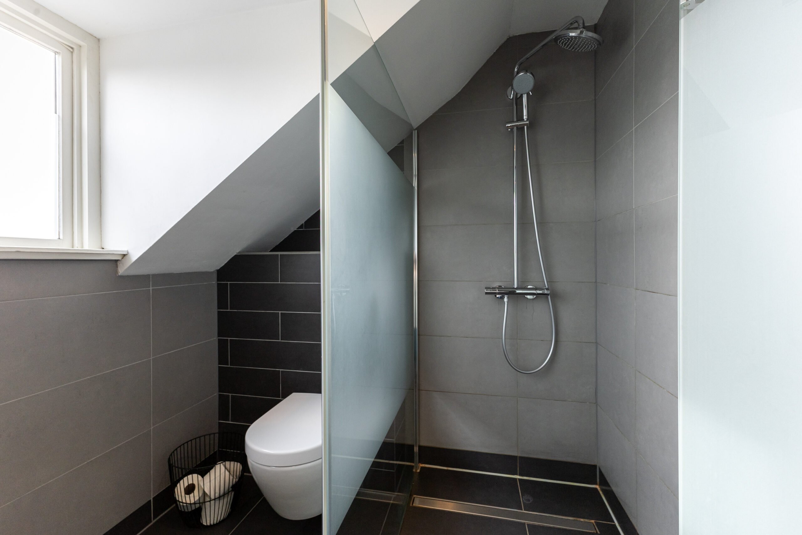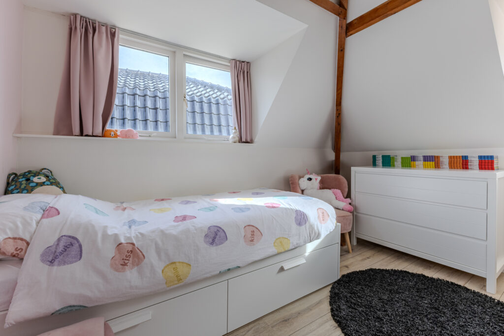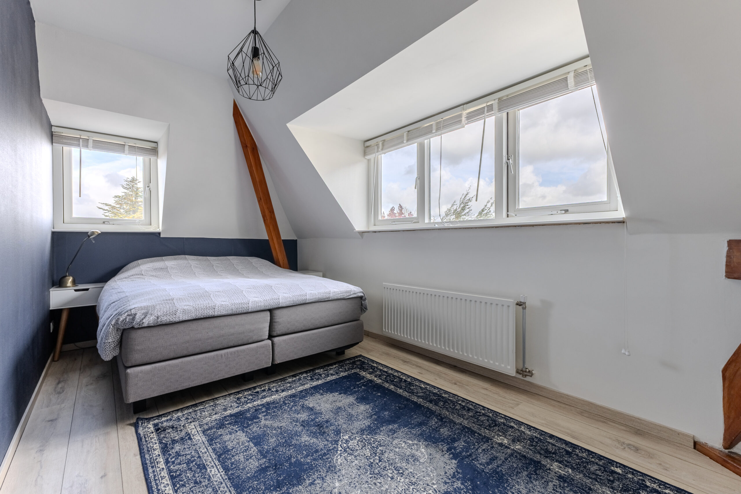 Op de eerste verdieping zijn vier slaapkamers aanwezig, allemaal van goed formaat. De zichtbare houten balken geven de kamers karakter en maken de verdieping sfeervol en authentiek. Deze ruimtes bieden volop mogelijkheden: van slaapkamers en thuiskantoor tot speel- of logeerkamer. Ook de badkamer is netjes afgewerkt en voorzien van een ruime inloopdouche, dubbele wastafel en een toilet. Bovendien is er boven nog een bergzolder, ideaal voor spullen die niet iedere dag nodig zijn.