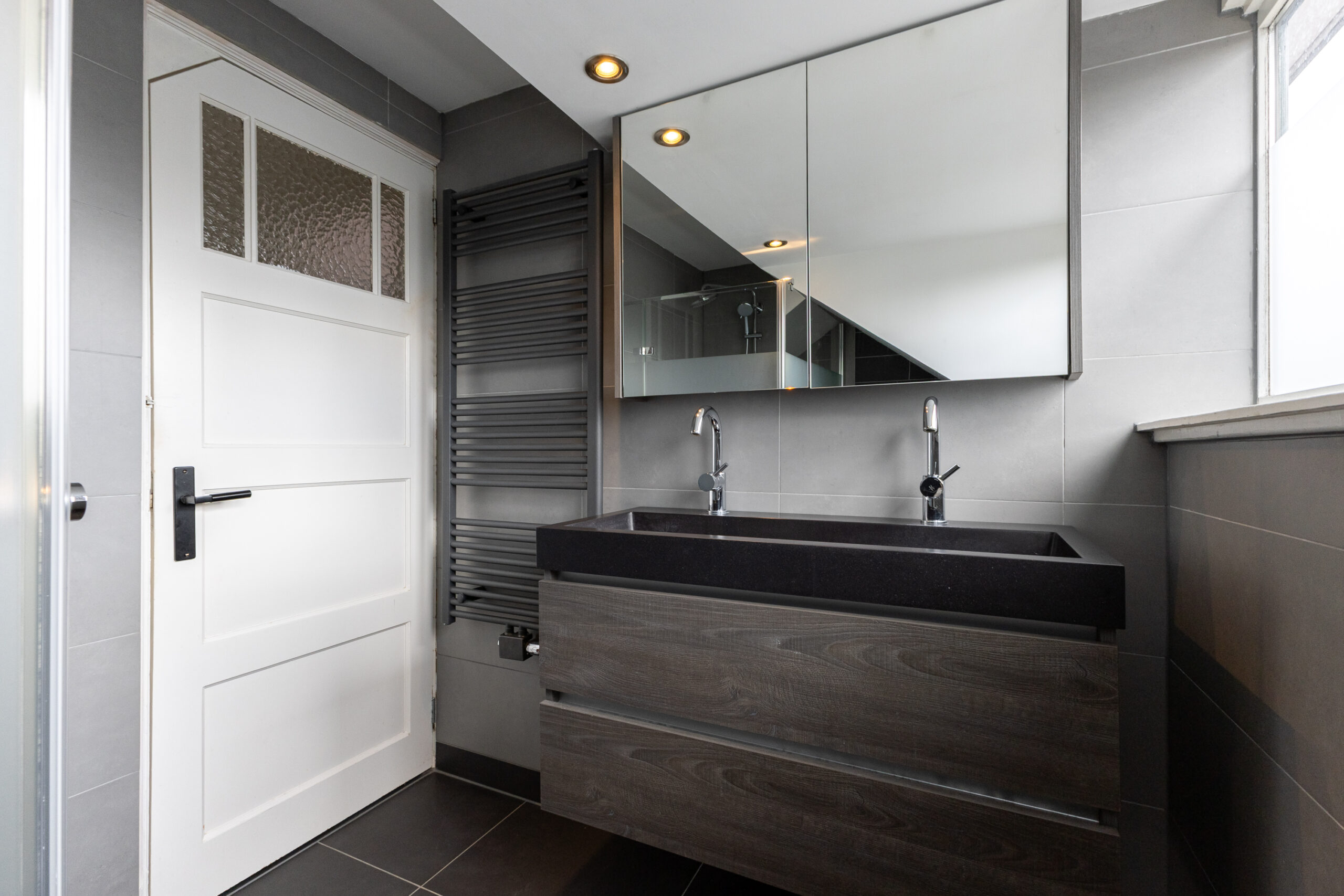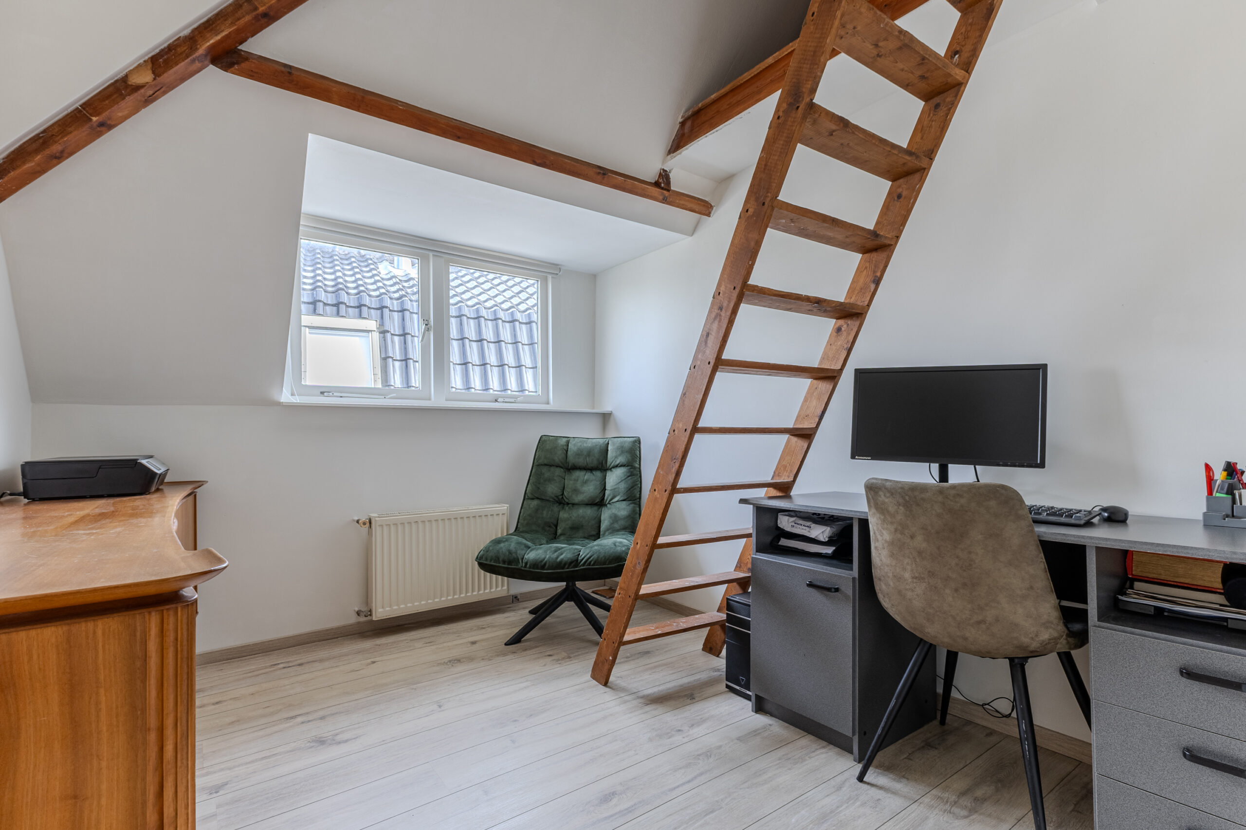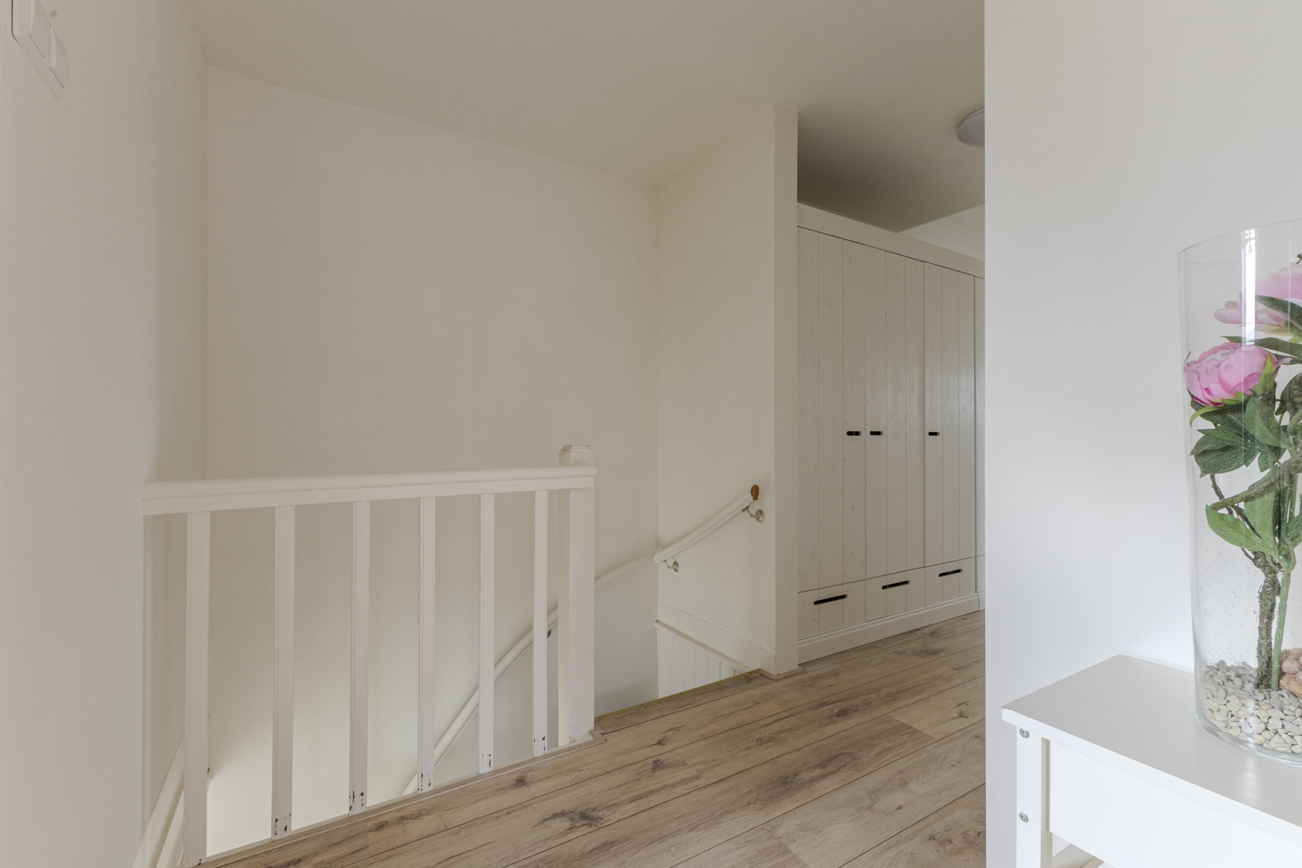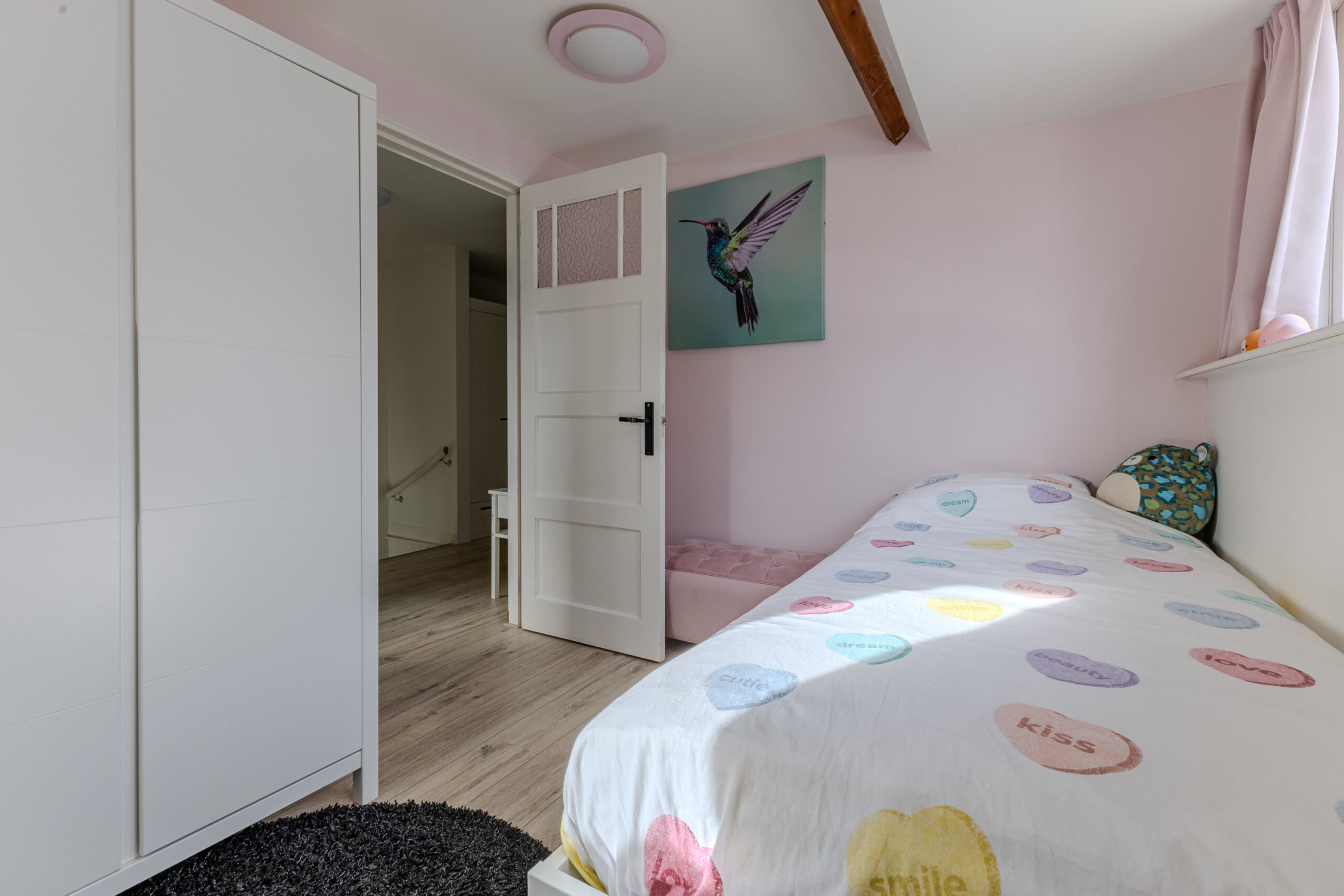 Op de eerste verdieping zijn vier slaapkamers aanwezig, allemaal van goed formaat. De zichtbare houten balken geven de kamers karakter en maken de verdieping sfeervol en authentiek. Deze ruimtes bieden volop mogelijkheden: van slaapkamers en thuiskantoor tot speel- of logeerkamer. Ook de badkamer is netjes afgewerkt en voorzien van een ruime inloopdouche, dubbele wastafel en een toilet. Bovendien is er boven nog een bergzolder, ideaal voor spullen die niet iedere dag nodig zijn.