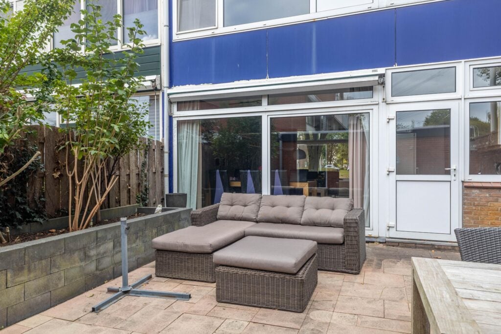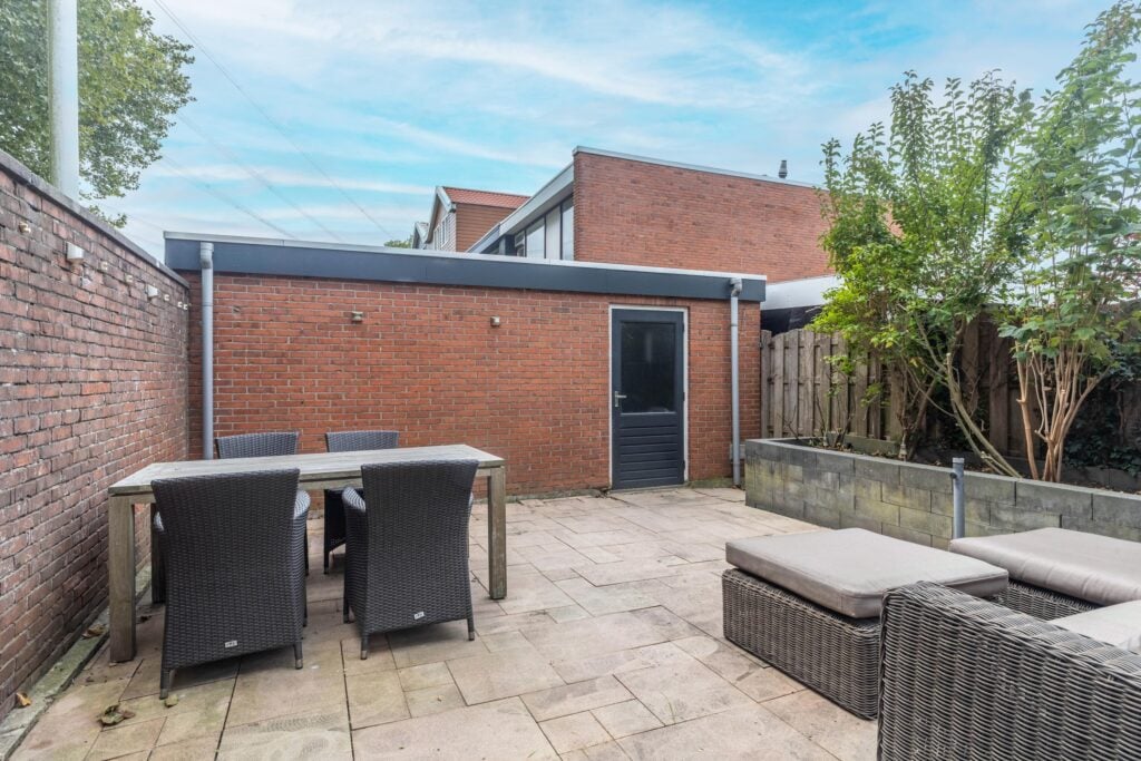 Via de schuifpui loop je de achtertuin in van ca. 35 m², gelegen op het zuidwesten. Dankzij de gunstige ligging geniet je hier volop van de middag- en avondzon. Er is meer dan genoeg plek voor zowel een eettafel als een loungehoek, zodat je optimaal kunt genieten van het buitenleven. Achter in de tuin vind je de garage, die zowel via de tuin als via de straat bereikbaar is – ideaal voor de fiets, scooter of gewoon als extra bergruimte.