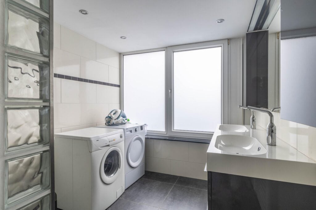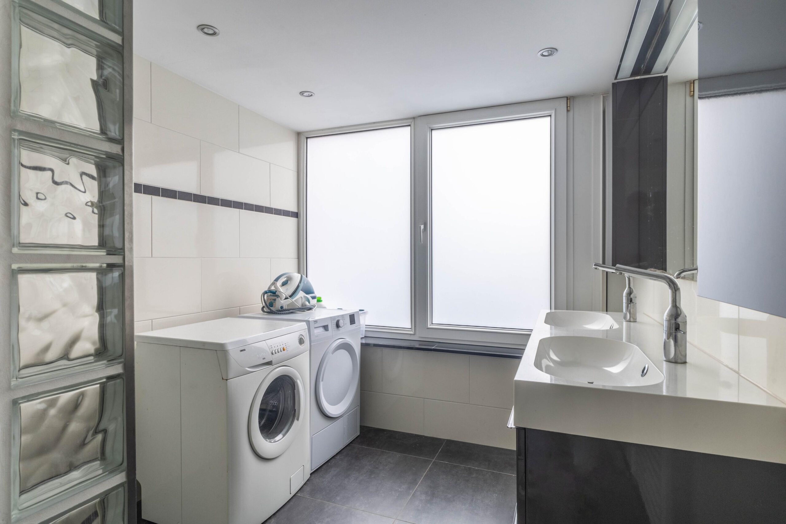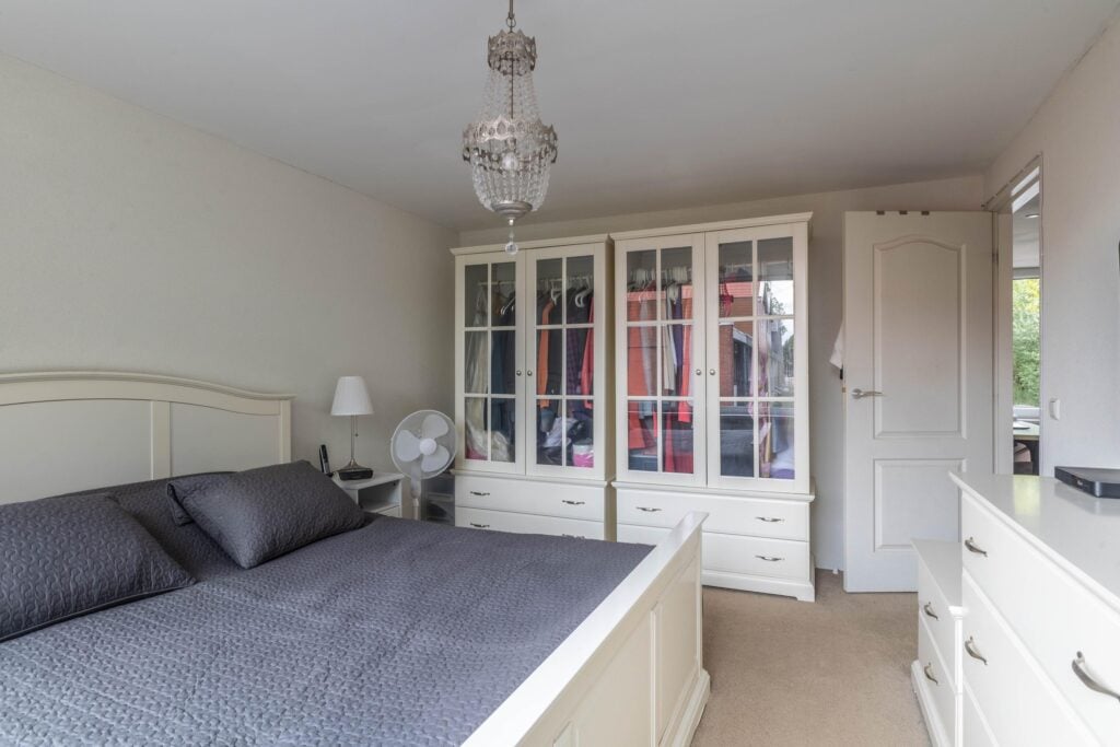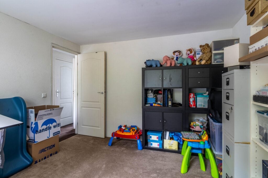 De eerste verdieping biedt twee goed bemeten slaapkamers. De master bedroom is groot genoeg voor een tweepersoonsbed én een royale kastenwand. De tweede kamer is perfect als kinderkamer, logeer- of werkkamer – multifunctioneel en altijd praktisch. Op dezelfde verdieping bevindt zich de badkamer, die netjes en volledig is ingericht met een dubbele wastafel, een ruime inloopdouche en aansluitingen voor wasmachine en droger. De aansluitingen voor de wasmachine en droger werken via aparte groepen, zodat beide apparaten tegelijkertijd kunnen draaien. Op de overloop is een werkplek gerealiseerd en er is tevens ruimte voor een opbouw.