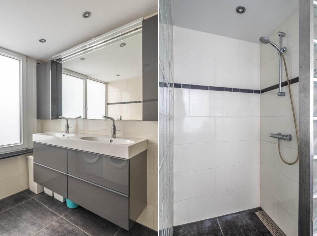 – Nette badkamer met inloopdouche en dubbele wastafel;