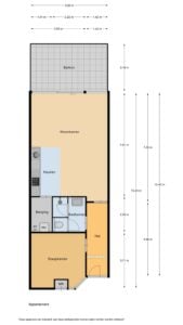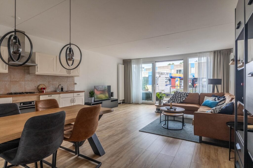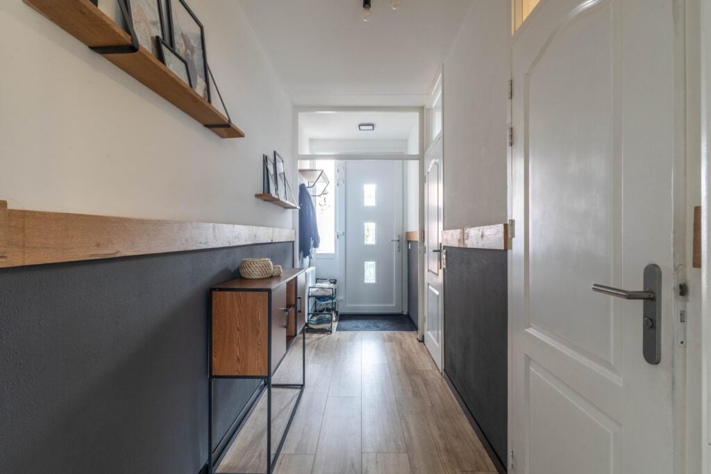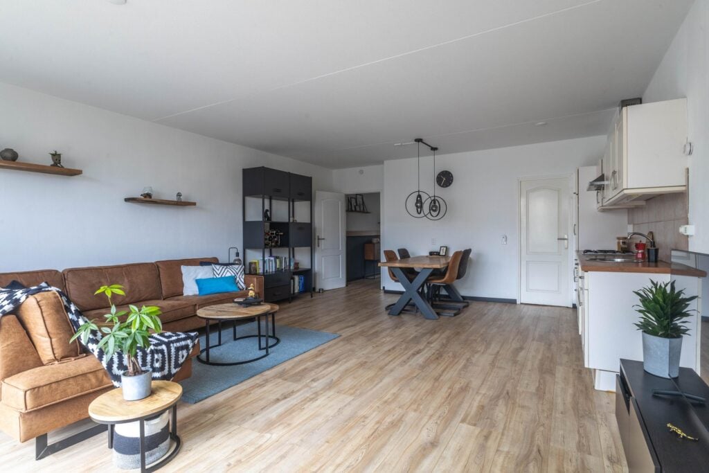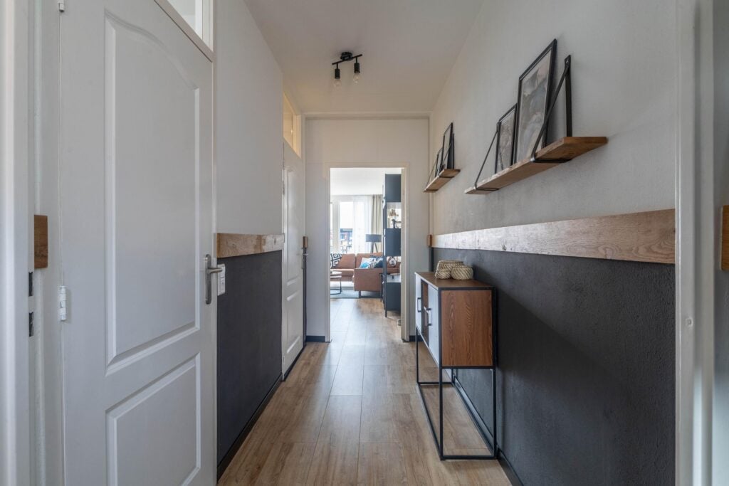 Bij binnenkomst sta je in de hal met de vernieuwde meterkast (2021) en voldoende ruimte voor jassen en schoenen. Vanuit hier loop je door naar de woonkamer, het hart van het appartement.