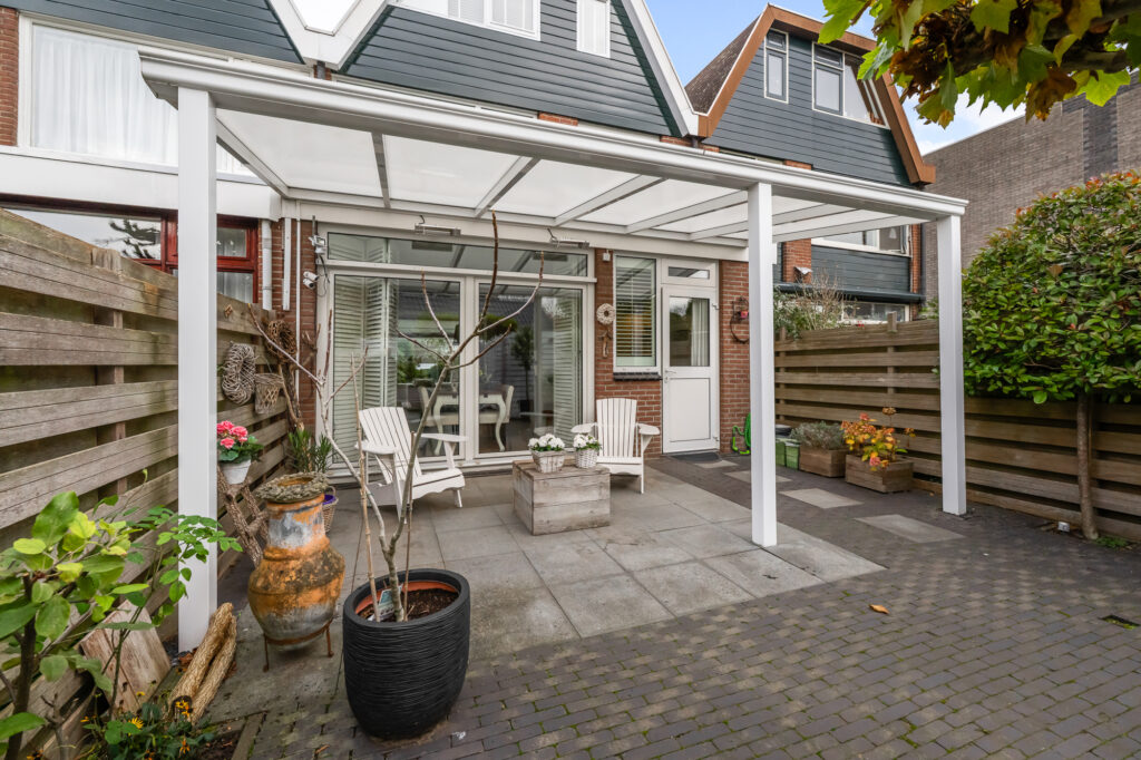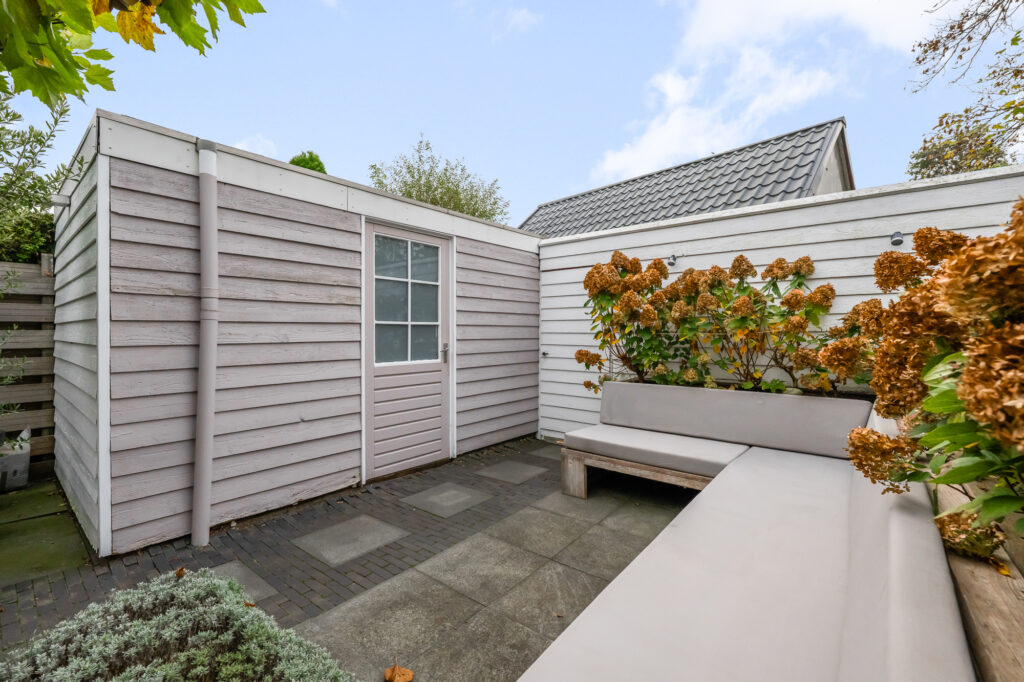 De tuin is achterom bereikbaar, handig voor fietsen, containers of tuinbenodigdheden. Aan de voorzijde ligt een nette voortuin die zorgt voor een verzorgde binnenkomst.