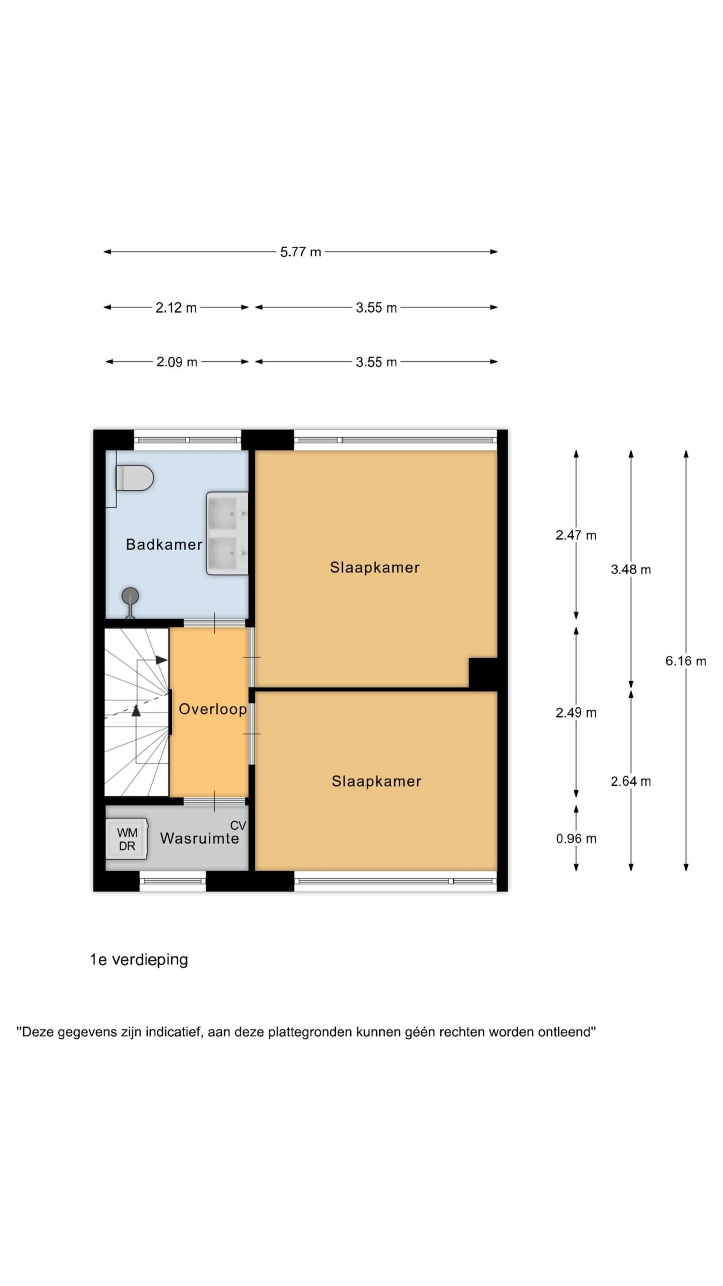 Op de eerste verdieping bevinden zich twee ruime slaapkamers. Beide kamers hebben grote ramen, zijn licht en praktisch in te delen en uitstekend geschikt als master bedroom, kinderkamer of werkkamer.