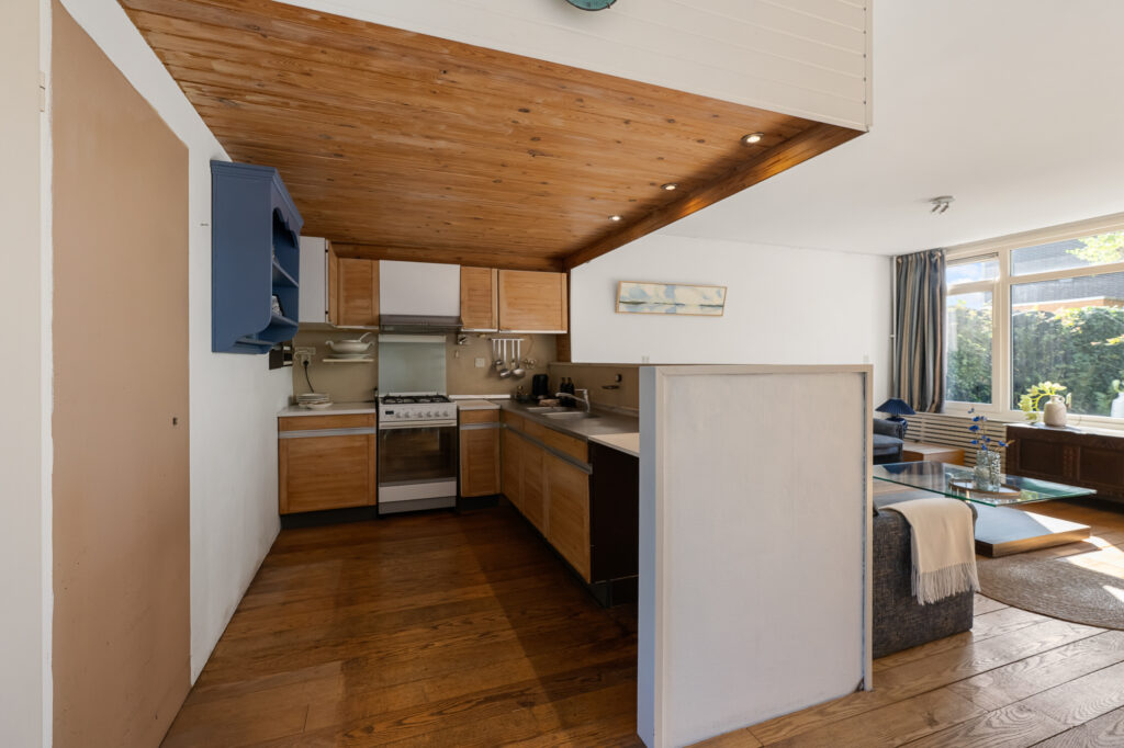 Binnen word je verwelkomd door de royale woonkamer, waar het daglicht rijkelijk binnenvalt door de grote raampartijen. De indeling is ruim en biedt volop plek voor een comfortabele zithoek én een grote eettafel waar je met gemak met familie en vrienden kunt aanschuiven. De keuken bevindt zich deels achter een half muurtje. Dat zorgt voor een praktische scheiding, terwijl je toch gezellig contact houdt met je gasten – koken en samen zijn gaan hier moeiteloos samen.