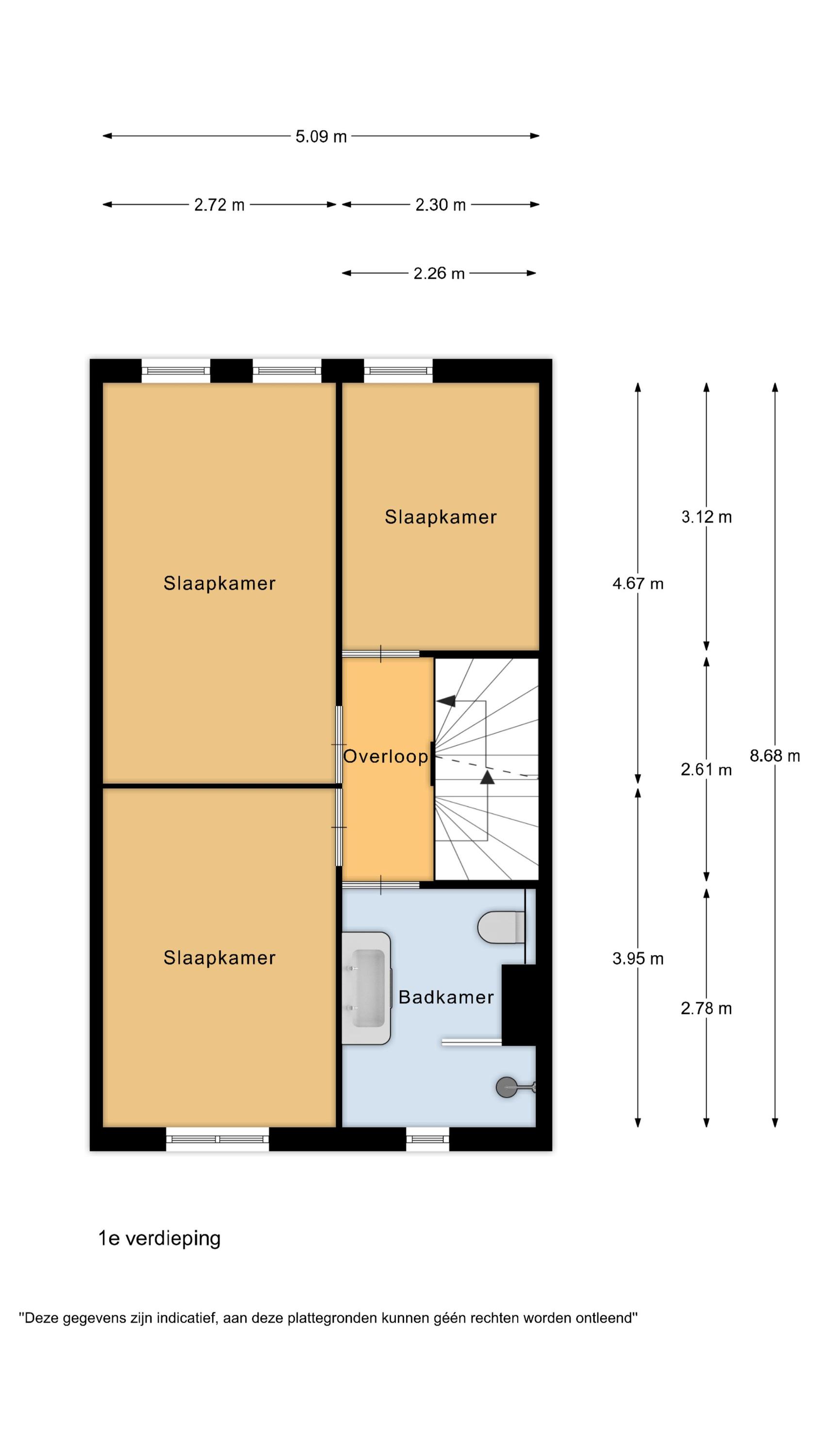 Op de eerste verdieping bevinden zich verder drie ruime slaapkamers met de master gesitueerd aan de achterzijde van het huis. Grenzend hieraan bevindt zich de kleinste kamer die uitstekend dienst kan doen als thuiswerkkantoor.