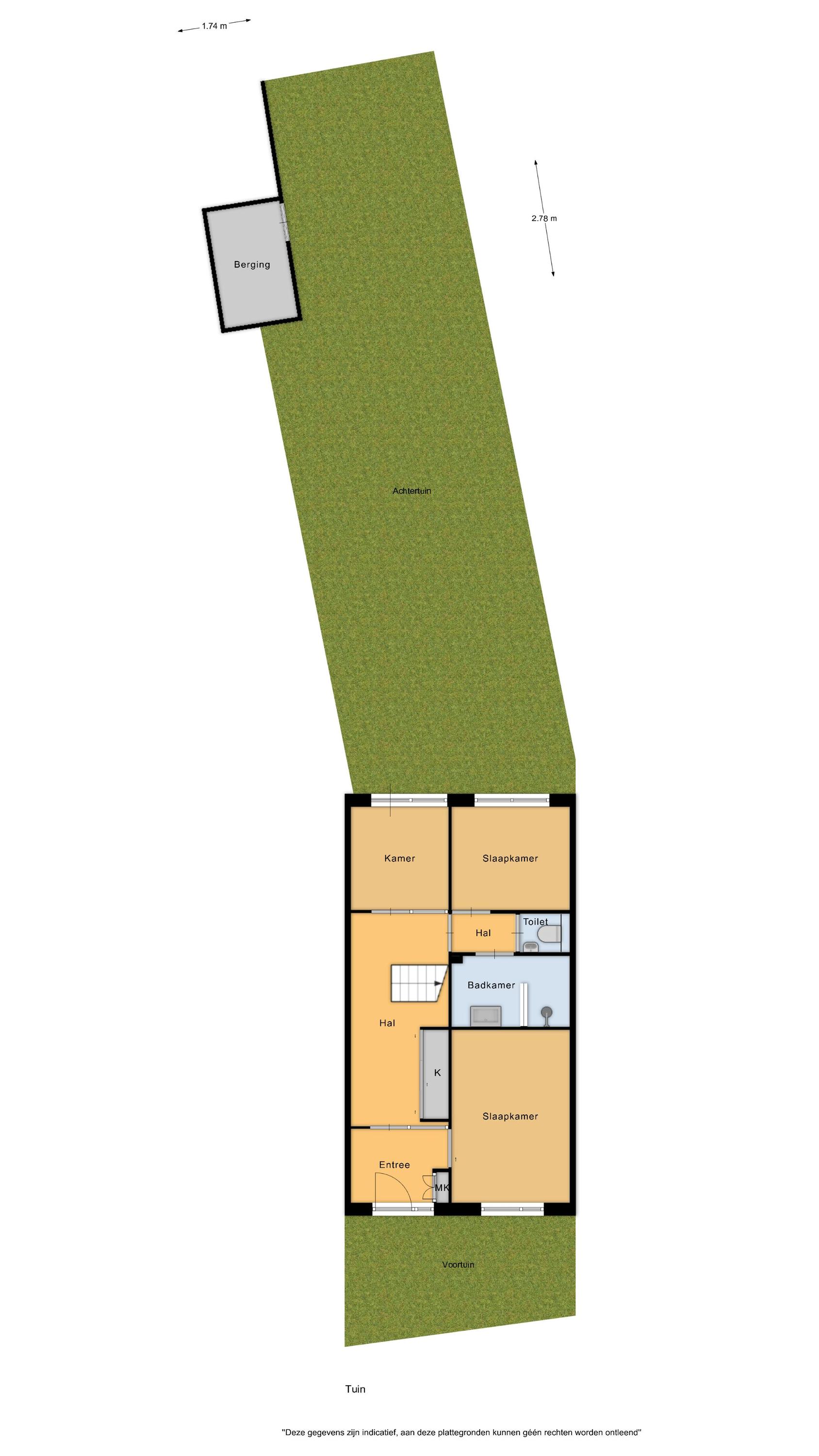 – Diepe achtertuin van ruim 17 meter met achterom en berging;