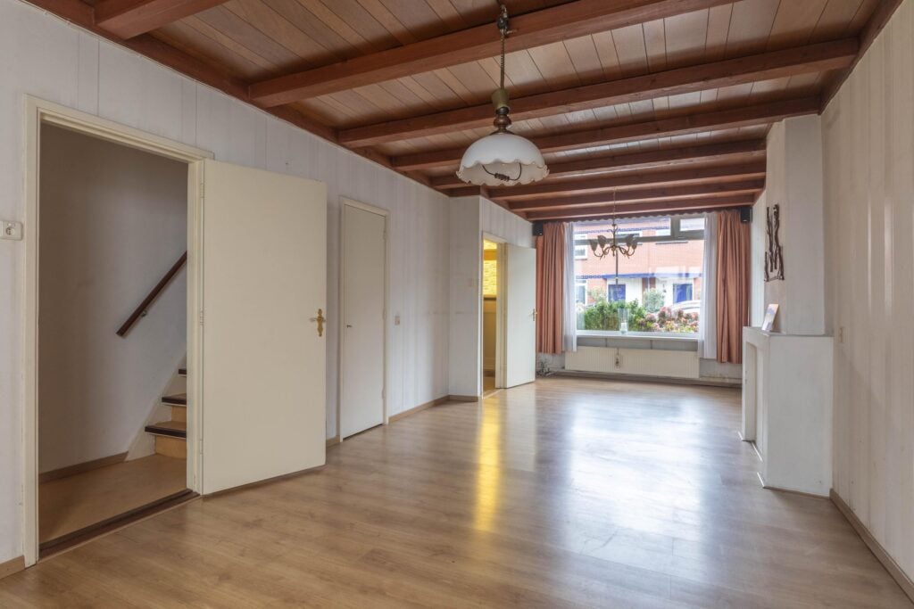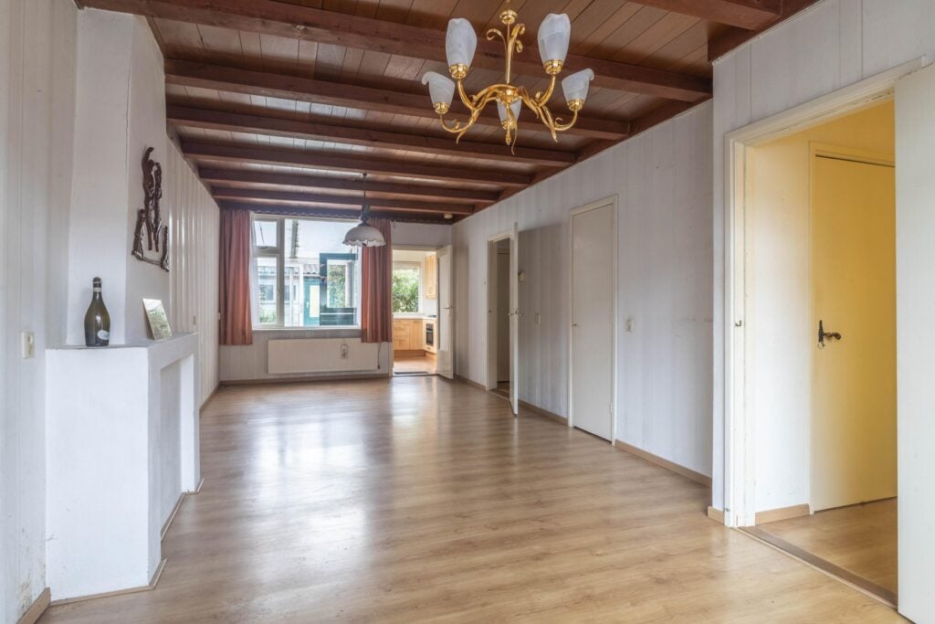 Het woonhuis beschikt over een riante doorzonwoonkamer met een schouw en het karakteristieke balkenplafond. Aan de achterzijde is een uitbouw gerealiseerd waar de keuken is gesitueerd. Via de keuken kom je in een overkapping met schuifdeuren die tevens toegang geeft tot de tuin met berging.