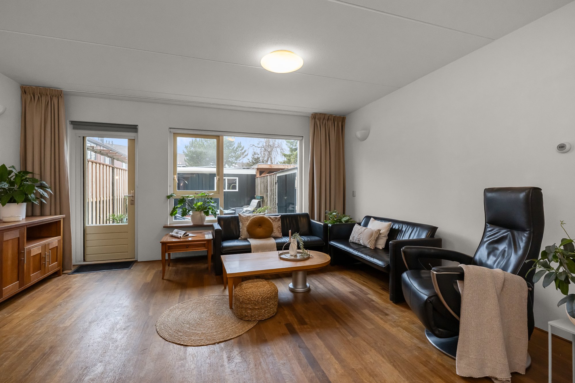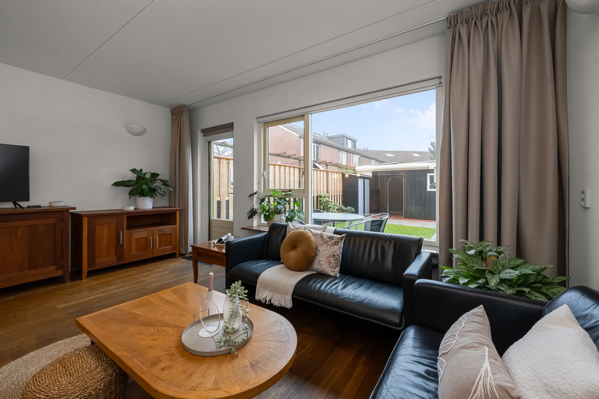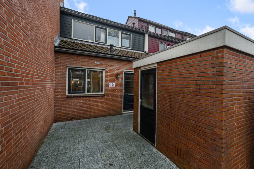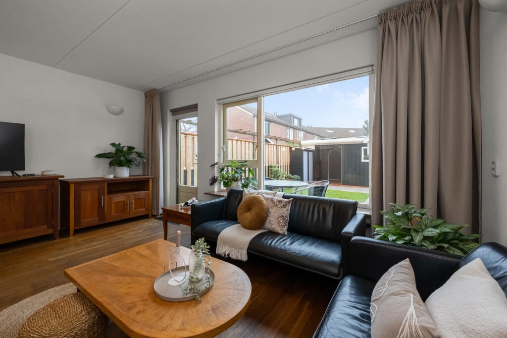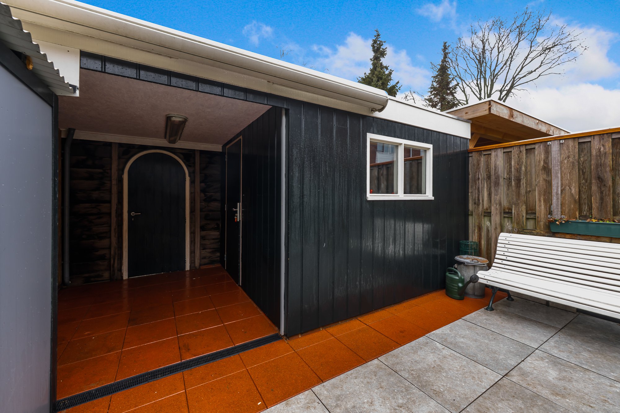 Vanuit de woonkamer heb je toegang tot de prachtige achtertuin, die netjes is aangelegd met een grasmat, mooie sierplanten en een strak en stevig tuinpad van grote terrastegels. De tuin is gelegen op het noordwesten. Doordat er geen direct achtergelegen bebouwing is en er in 2025 een nieuwe schutting is geplaatst, geniet je hier tot in de avonduren van de zon én van een vrij en open gevoel zonder inkijk van achterburen. In de tuin bevindt zich een houten berging met daarop zes zonnepanelen, ideaal voor de opslag van klusmaterialen en tuingereedschap. Daarnaast beschikt de woning over een gemetselde (fiets)berging aan de voorzijde, wat zorgt voor extra praktische bergruimte.