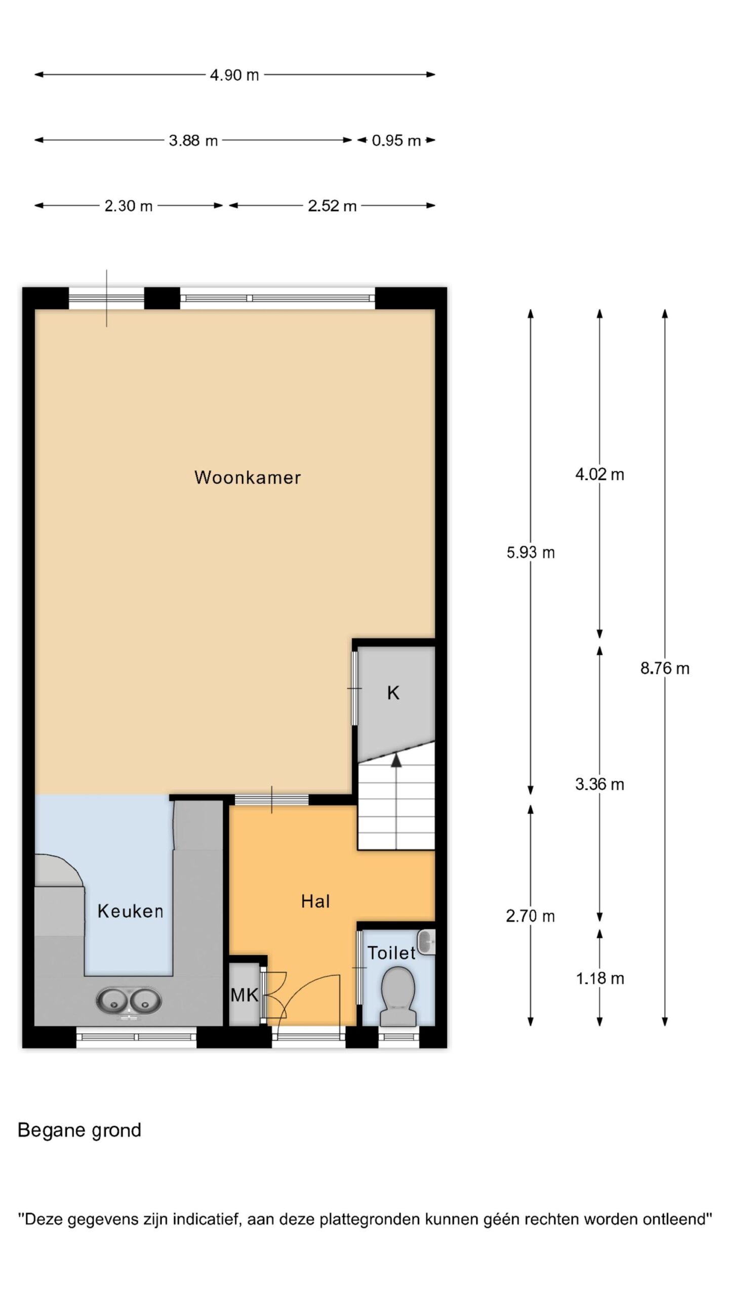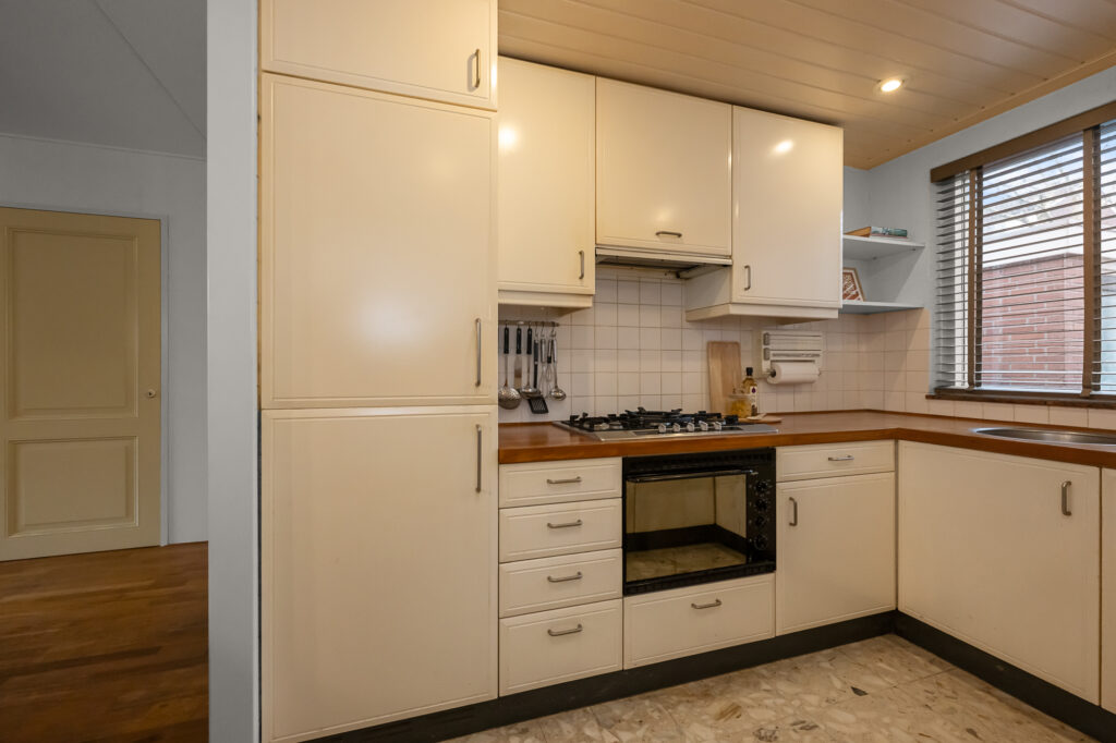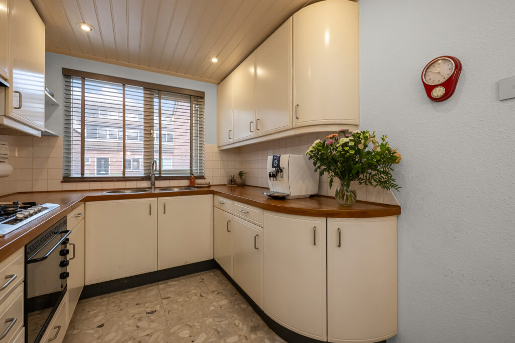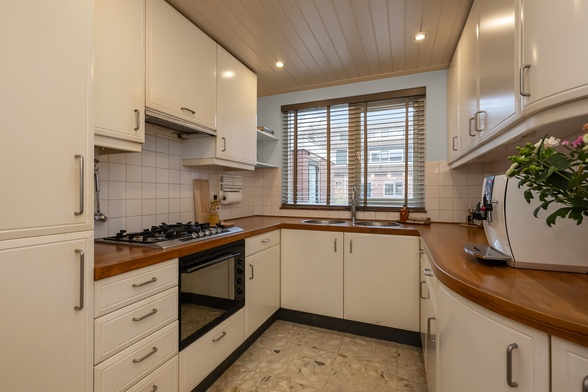 Laten we binnen een kijkje nemen. Op de begane grond tref je aan de achterzijde een mooie, grote raampartij aan, die zorgt voor een prachtige lichtinval in de woonkamer. De woonkamer heeft een prettige indeling en staat in open verbinding met de U-vormige keuken, die uitkijkt op de rustige binnenplaats van het hofje. De keuken wordt verwarmd middels vloerverwarming.