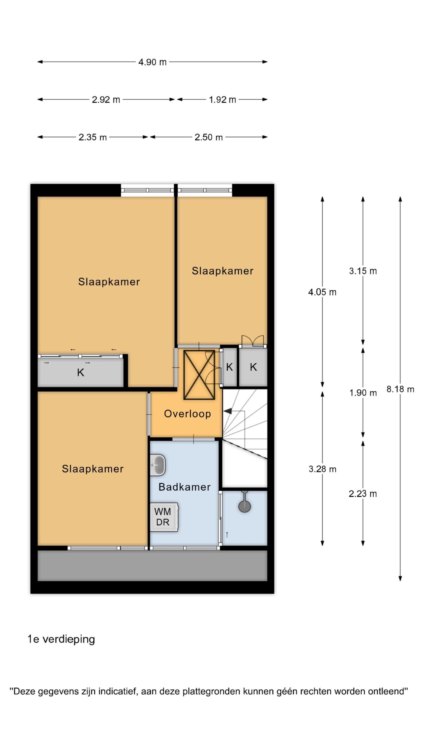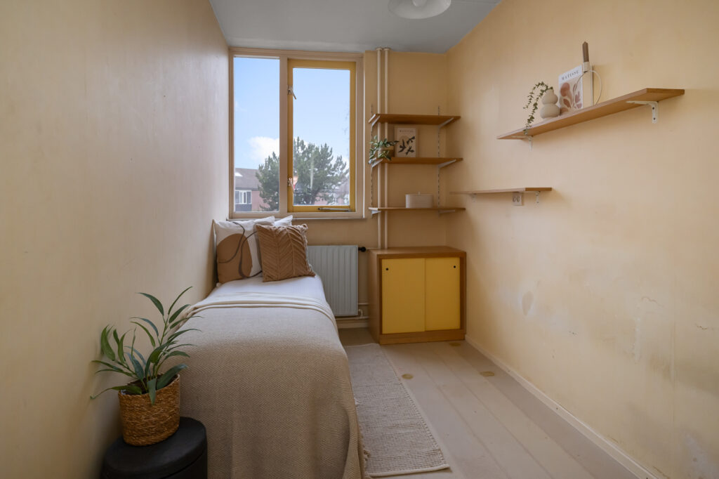 Op de verdieping bevinden zich drie slaapkamers, waarvan twee ruim zijn uitgevoerd en een derde kamer die uitstekend kan dienen als thuiswerkplek, kinderkamer of walk-in closet. De badkamer, tevens wasruimte, is voorzien van een loopdouche en wastafel en beschikt over zowel natuurlijke als mechanische ventilatie. Daarnaast biedt de badkamer volop mogelijkheden om deze geheel naar eigen wens en smaak te moderniseren.