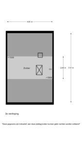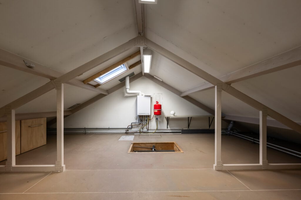 Via de vlizotrap betreed je de ruime zolderverdieping, die momenteel in gebruik is als bergzolder. Deze verdieping biedt uitstekende mogelijkheden om uit te bouwen met een dakopbouw, waarmee extra woonruimte kan worden gecreëerd, zoals een extra slaapkamer, werkruimte of hobbykamer.