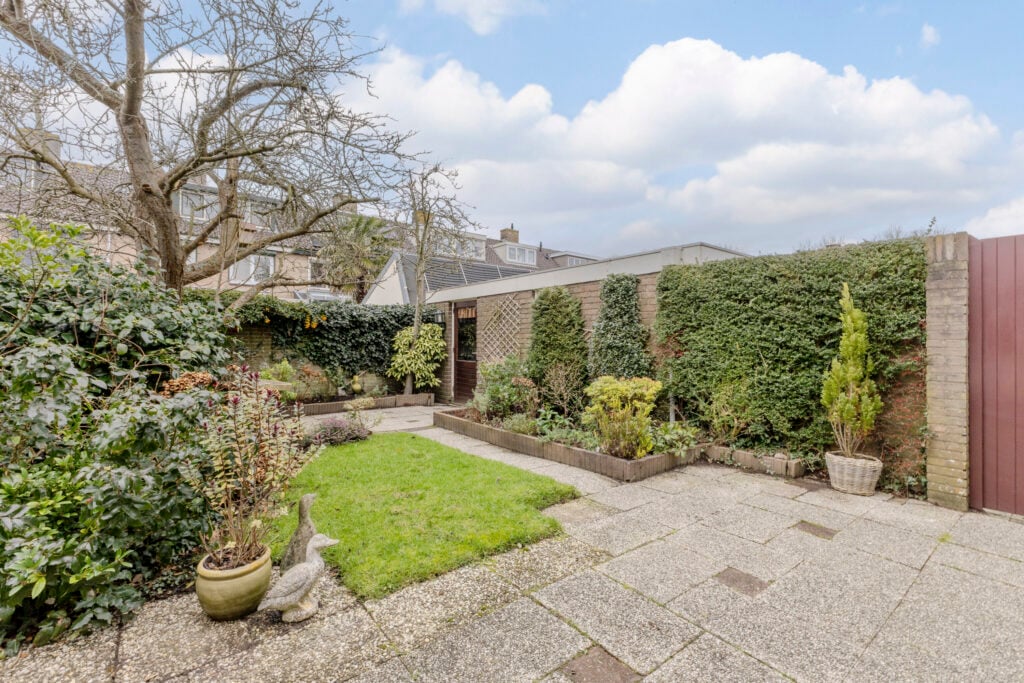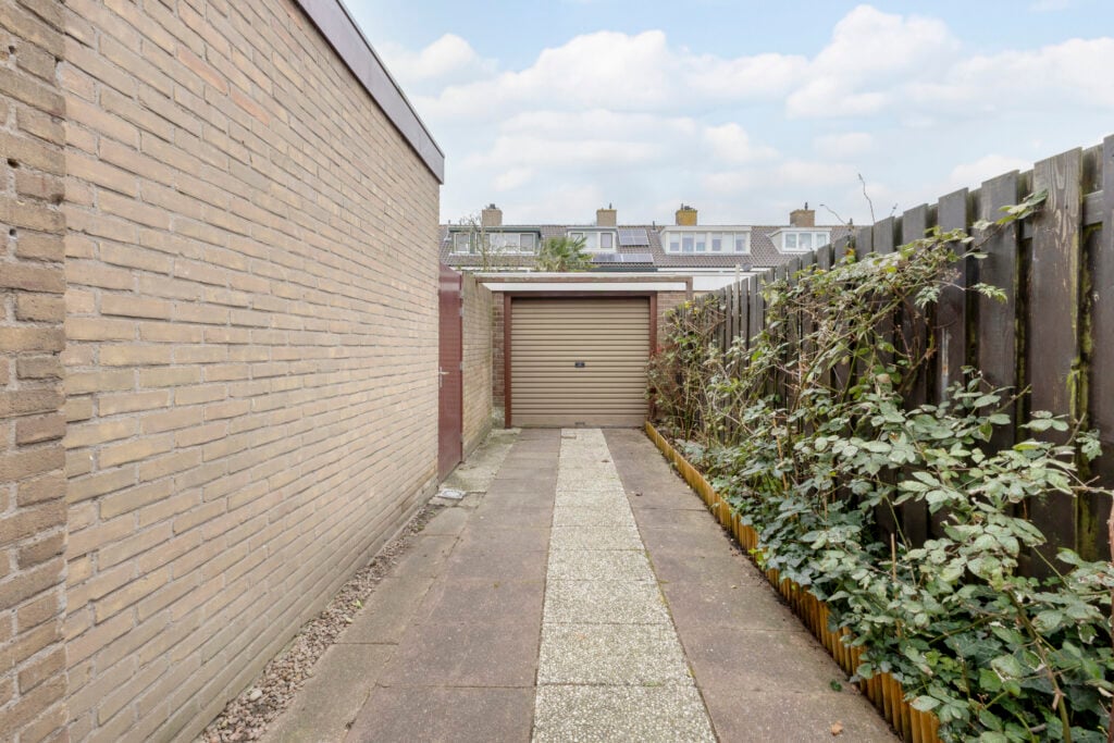De achtertuin is een groot pluspunt van deze woning. Hier vind je een vrijstaande stenen garage, ideaal voor het stallen van een auto, fietsen of als extra bergruimte of hobbyruimte. Daarnaast beschikt de woning over een royale oprit naast het huis, waardoor parkeren op eigen terrein mogelijk is.