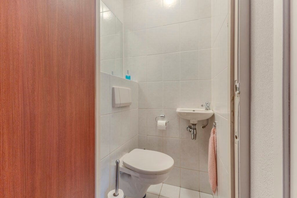 De badkamer is eenvoudig maar netjes en voorzien van de benodigde sanitaire voorzieningen.