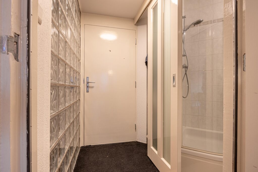 * Portiekflat met 2 kamers (1 slaapkamer) en balkon;