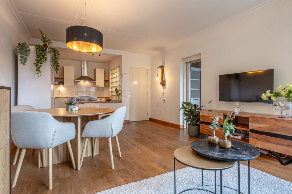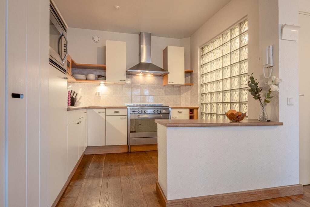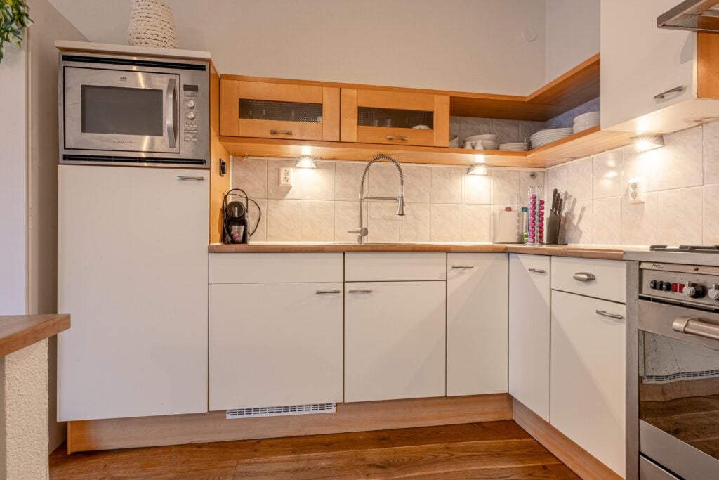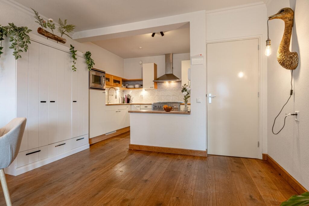De open/halfopen keuken is functioneel ingericht; alle inbouwapparatuur werkt naar behoren, zodat je direct kunt koken en wonen. Vanuit de living stap je het balkon op, waar je heerlijk van het zonnetje kan genieten.