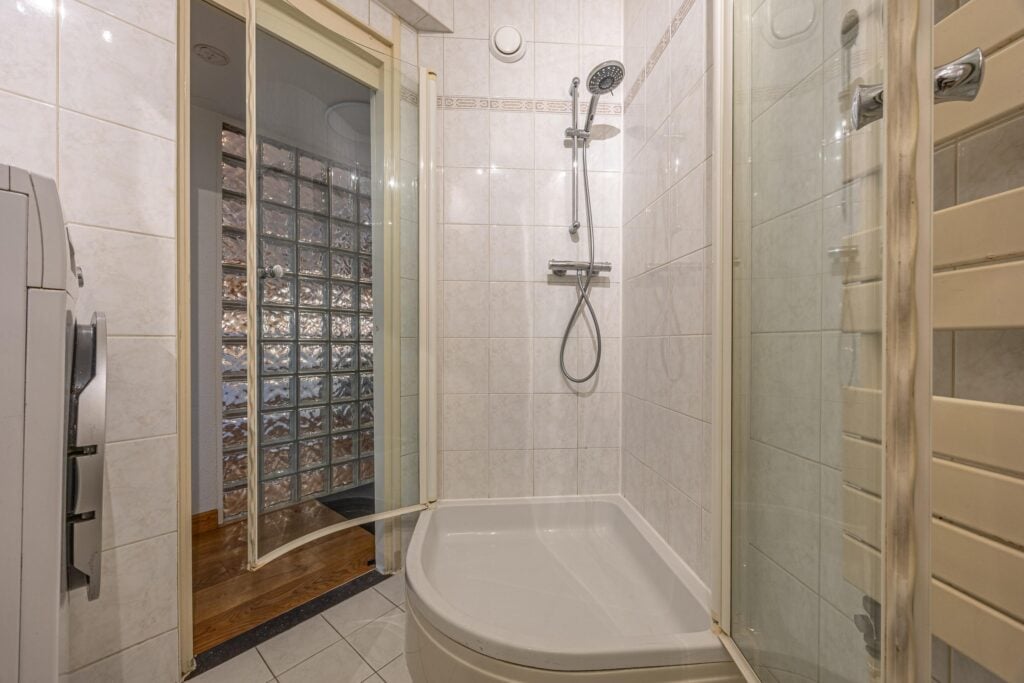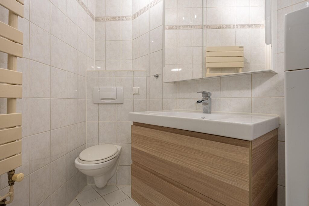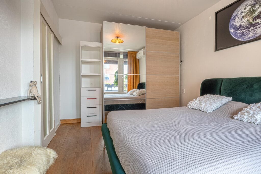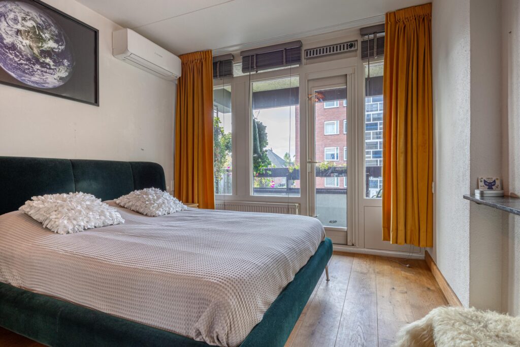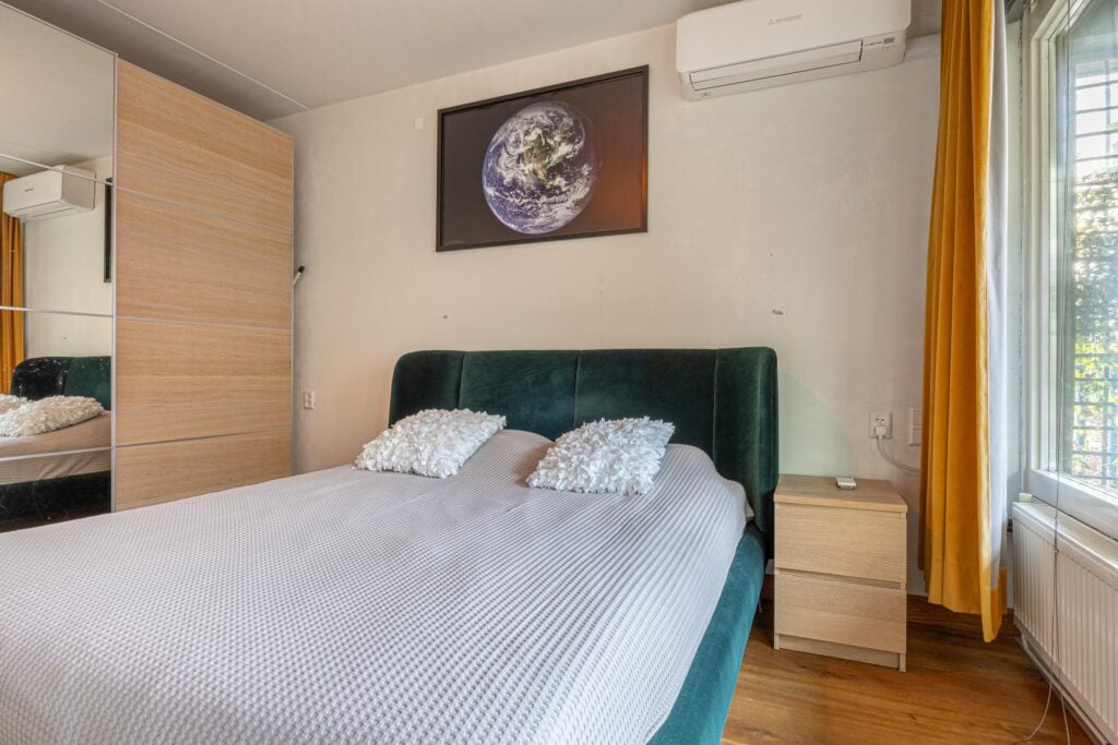 De slaapkamer is rustig gelegen en voorzien van airconditioning (Mitsubishi, 2021), ideaal voor zomerse nachten. De badkamer is verzorgd en praktisch, met douche, wastafel en toilet. De gehele woonlaag oogt netjes, met hardhouten kozijnen en een frisse afwerking.