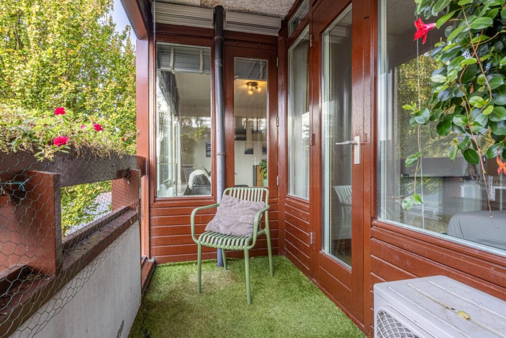 Binnen tref je een praktische indeling met een lichte woonkamer, separate slaapkamer en een zonnig balkon met kunstgras. Het geheel is netjes onderhouden, voorzien van HR++ glas, airconditioning en een moderne cv-installatie.