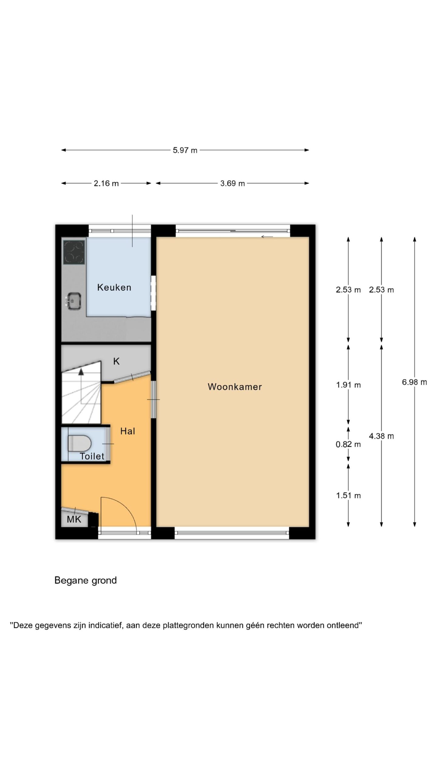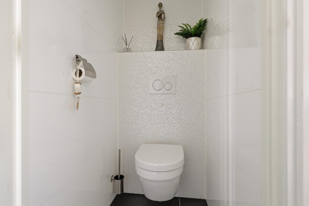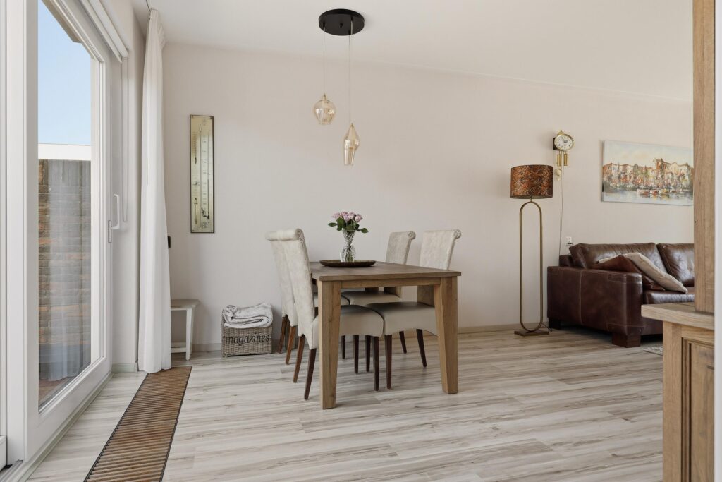 Bij binnenkomst stapt je direct een lichte hal binnen waar een toilet is gevestigd. Vanuit de hal loop je door naar de gezellige woonkamer, die dankzij een schuifpui directe toegang biedt tot de sfeervolle achtertuin, de ideale plek om te ontspannen en te genieten van de buitenlucht.