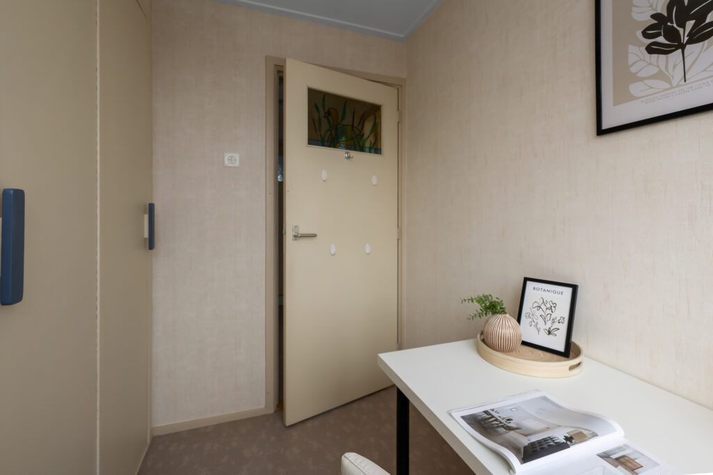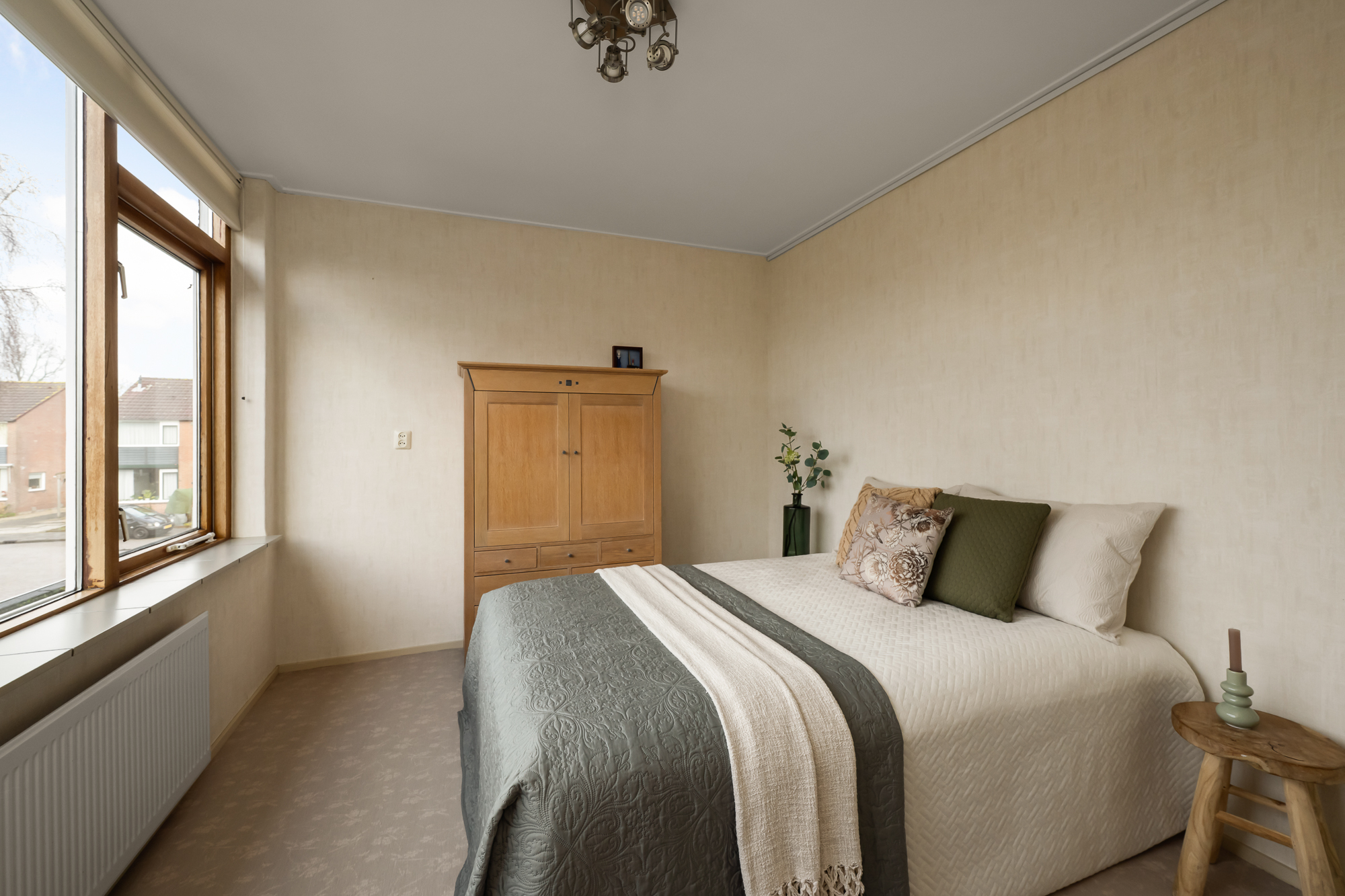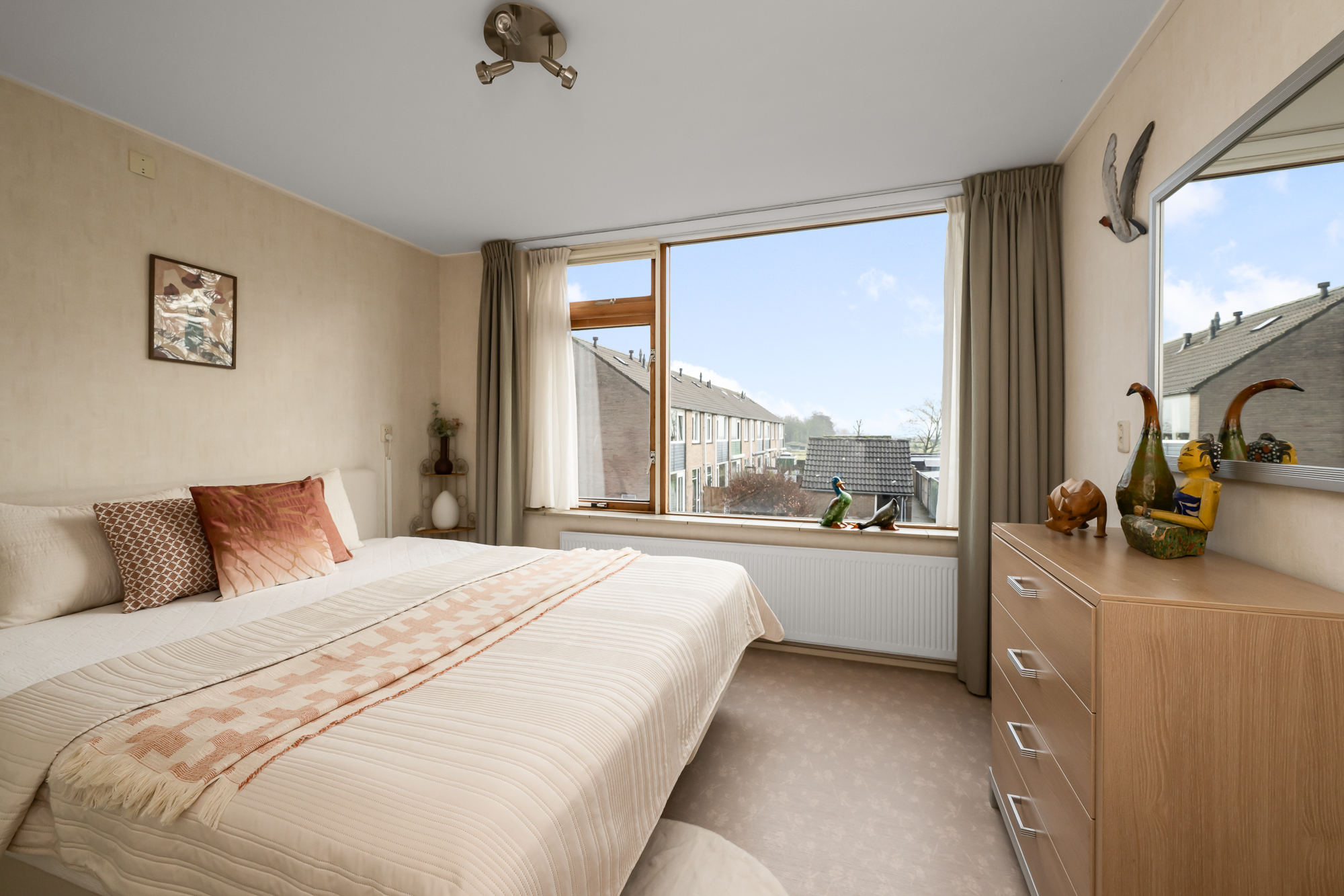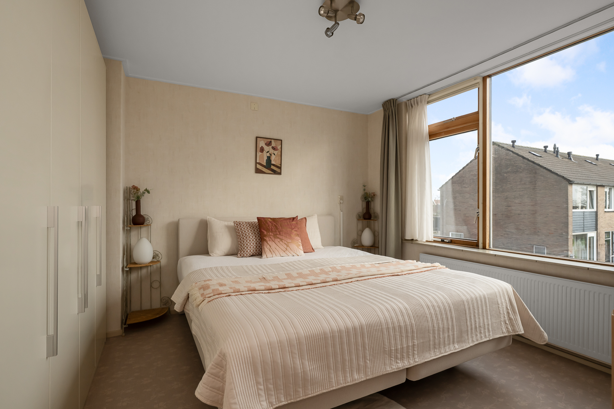 Via een vaste trap bereik je de zolderverdieping. Je komt boven op de overloop waar tevens de cv-ketel is opgesteld (Atag, 2017, eigendom). Vanuit hier loop je door naar de vierde slaapkamer, voorzien van een dakraam dat zorgt voor prettig daglicht. Achter de knieschotten zijn maatwerkkasten gerealiseerd, waardoor de ruimte optimaal wordt benut en er verrassend veel bergruimte aanwezig is. Deze verdieping biedt volop mogelijkheden en is uitstekend geschikt als slaapkamer, werkruimte of hobbykamer.