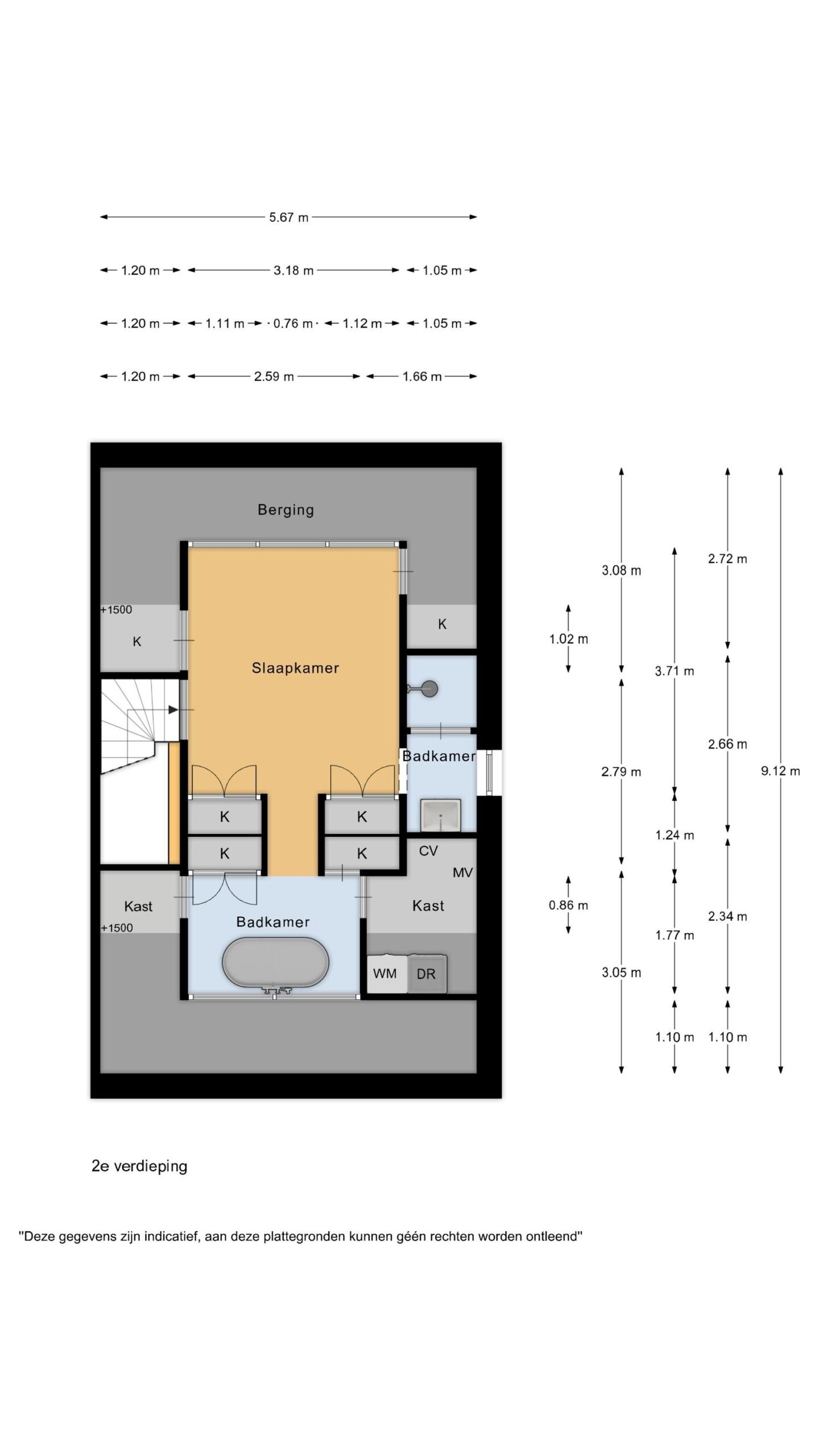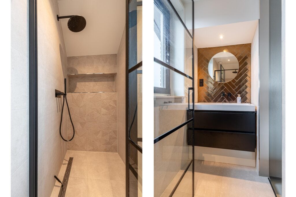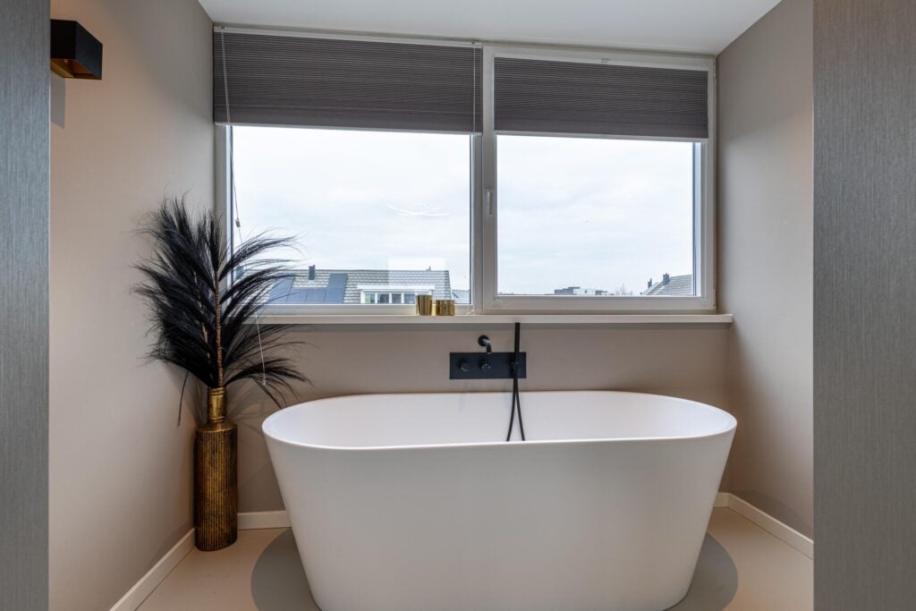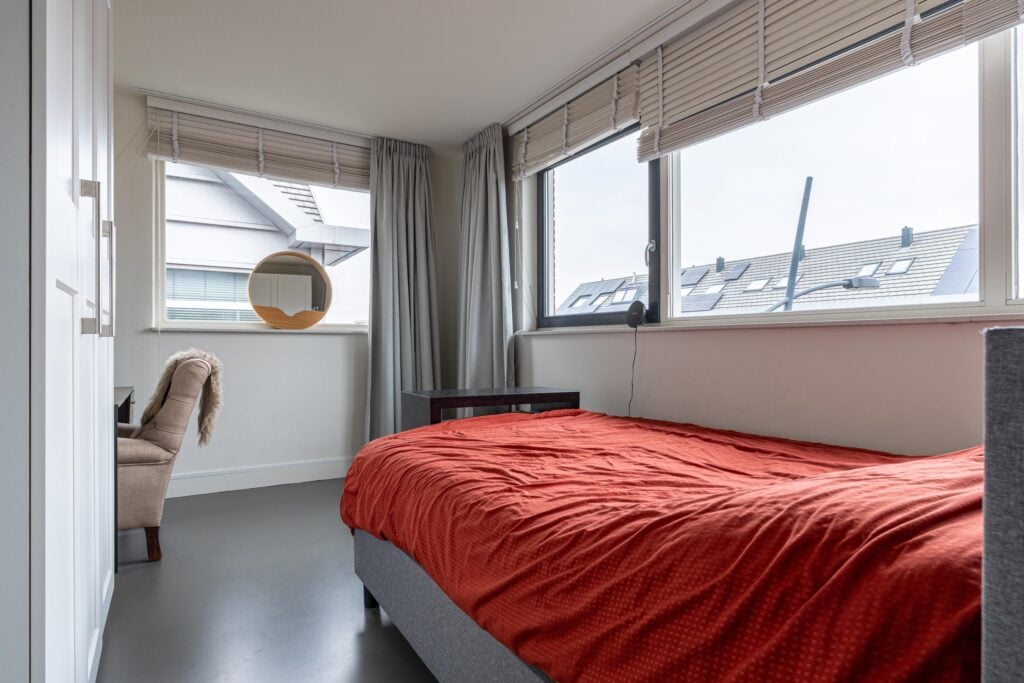 De tweede verdieping is dankzij twee dakkapellen verrassend ruim en licht. Hier vind je een vierde slaapkamer die is voorzien van airconditioning voor zowel verwarming als koeling. Ook bevindt zich hier de tweede volwaardige badkamer met douche en wastafel, waarbij het ligbad stijlvol in de nis van de dakkapel is geplaatst. Optimale benutting van de ruimte zie je ook hier terug in de op maat gemaakte inbouwkasten.