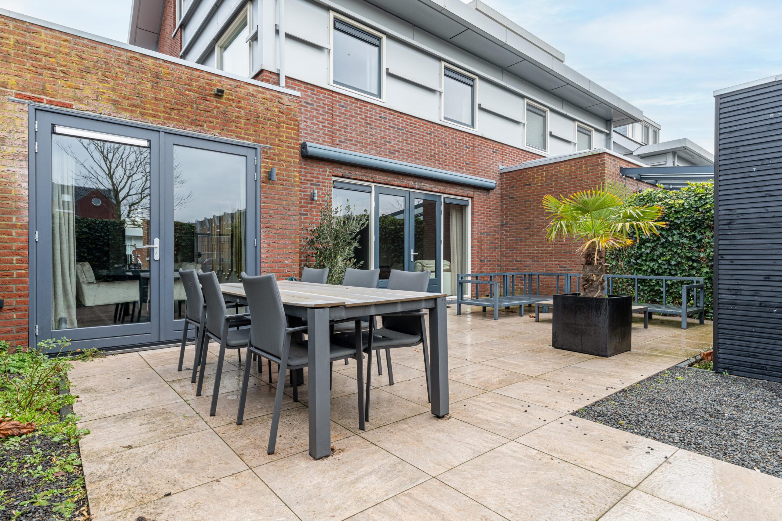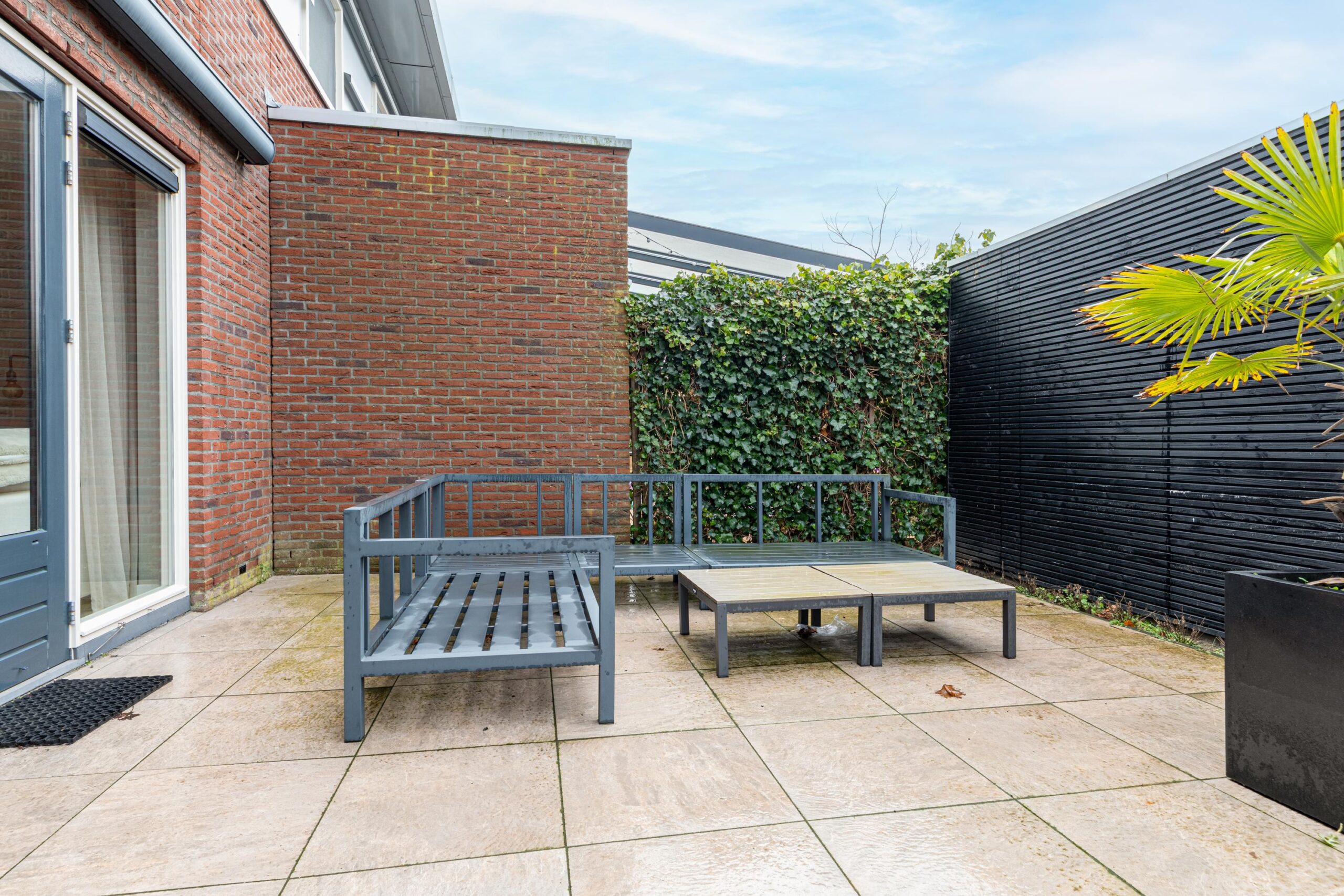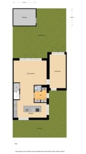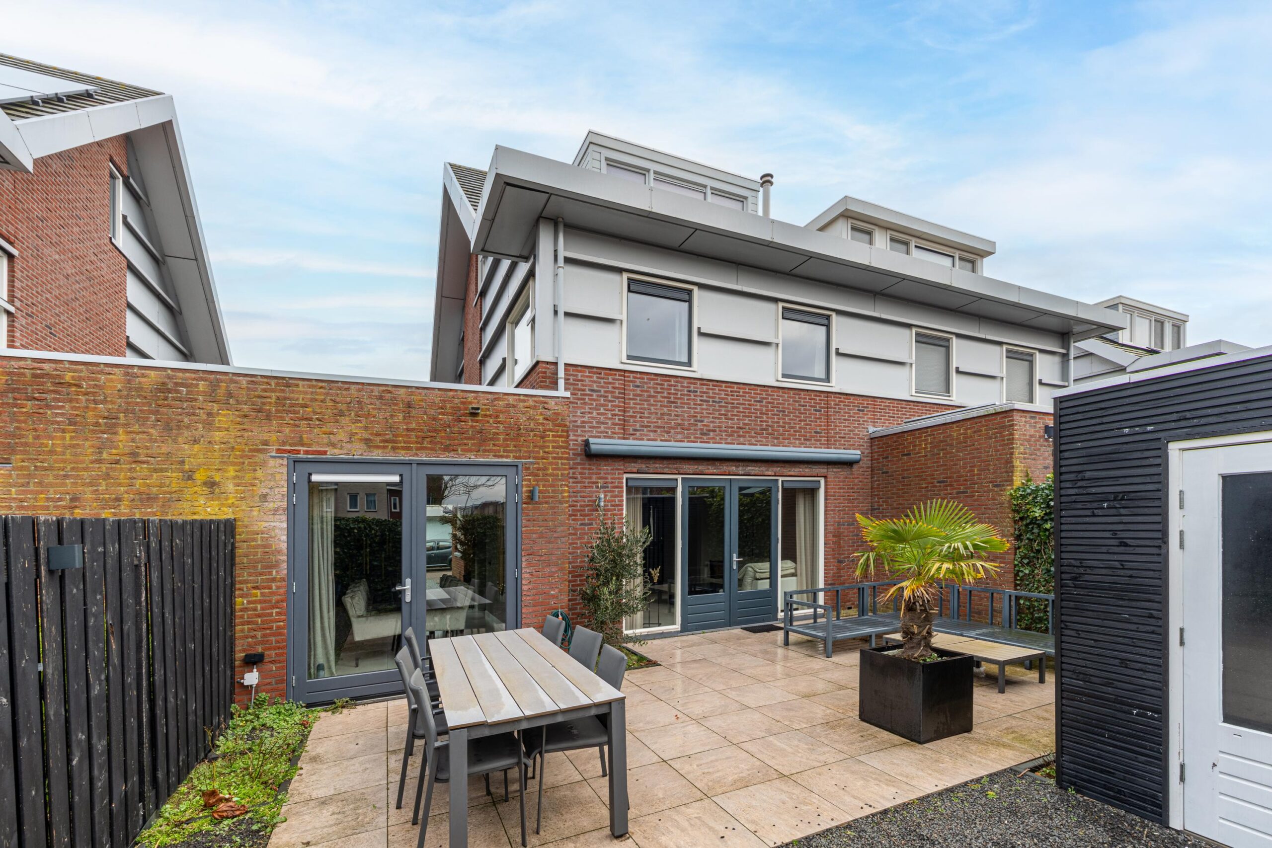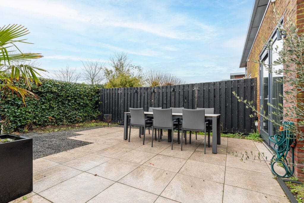 Vanuit de woon- en eetkamer heb je toegang tot de smaakvol aangelegde achtertuin. De tuin met schuur is in 2024 opnieuw aangelegd. Hier geniet je van rust en privacy dankzij de gunstige ligging. In de tuin staat een ruime houten berging voor al je opslagwensen en er is een praktische achterom. De strook direct achter de woning wordt dit jaar bovendien verrijkt met een prachtige nieuwe groenzone (volgens plankaart gemeente). Aan de voorzijde beschikt de woning over een eigen oprit, zodat parkeren op eigen terrein altijd mogelijk is.