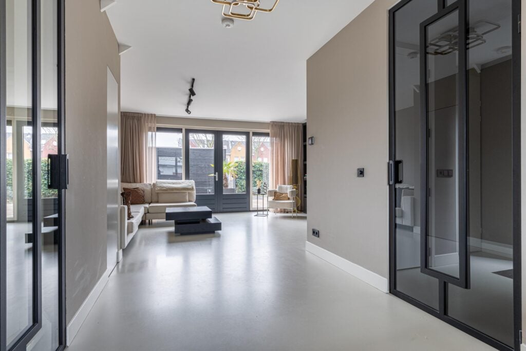 In de hal word je direct verwelkomd door prachtige, op maat gemaakte inbouwkasten en een strakke gietvloer die naadloos doorloopt over de gehele begane grond. De woonkamer biedt een sfeervolle ruimte waar comfort en esthetiek hand in hand gaan. Deze staat in open verbinding met de luxe keuken (2022), een droom voor elke kookliefhebber. Het kookeiland is voorzien van een duurzaam, kras- en hittebestendig Dekton werkblad, een Quooker en een Bora-inductiekookplaat met geïntegreerde afzuiging. De kastenwand langs de muur is uitgerust met hoogwaardige Siemens-inbouwapparatuur en biedt volop extra werk- en opbergruimte. Bijzonder is de voormalige garage, die in 2022 stijlvol is verbouwd tot een riante eetkamer. Dit vormt een prachtige verlenging van de leefruimte op de begane grond.