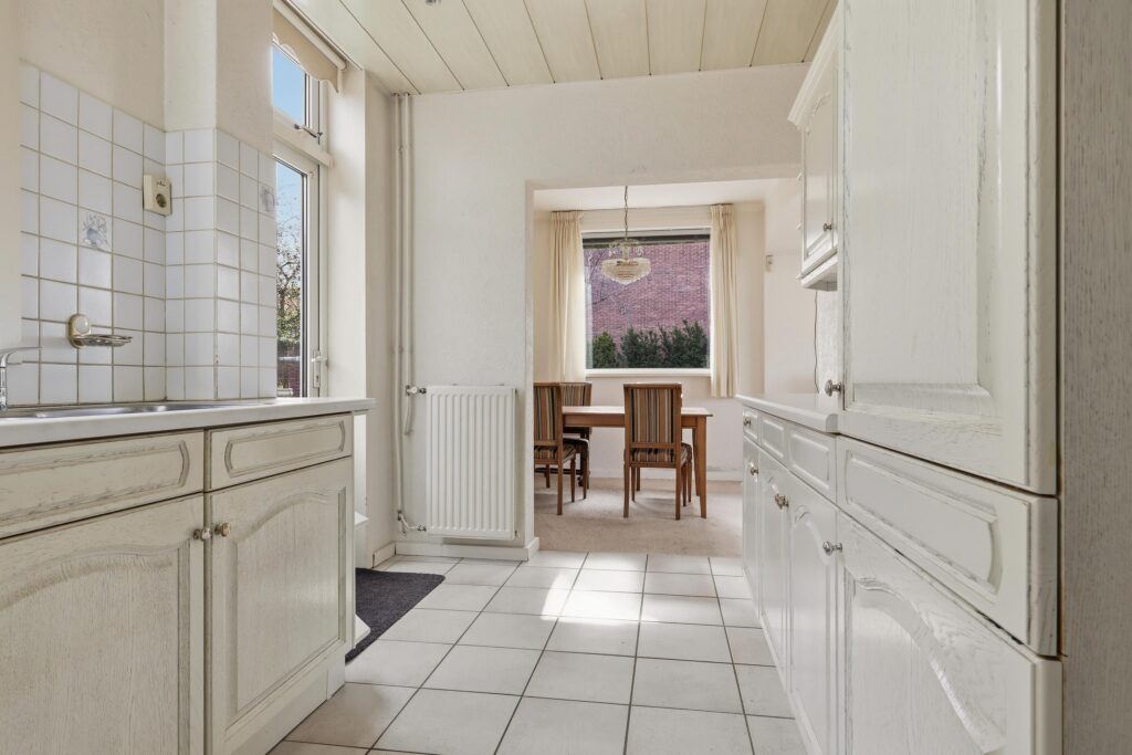 Je wordt in de hal van harte welkom geheten, die leidt naar de opvallend lichte woonkamer. Via de openslaande deuren stap je direct de tuin in, waar je optimaal kunt genieten van de zon en het uitzicht. De halfopen keuken, met voldoende ruimte voor een gezellige eethoek, vormt een perfecte verbinding tussen de woonruimtes en is ideaal voor sfeervolle ochtenden en avonden.