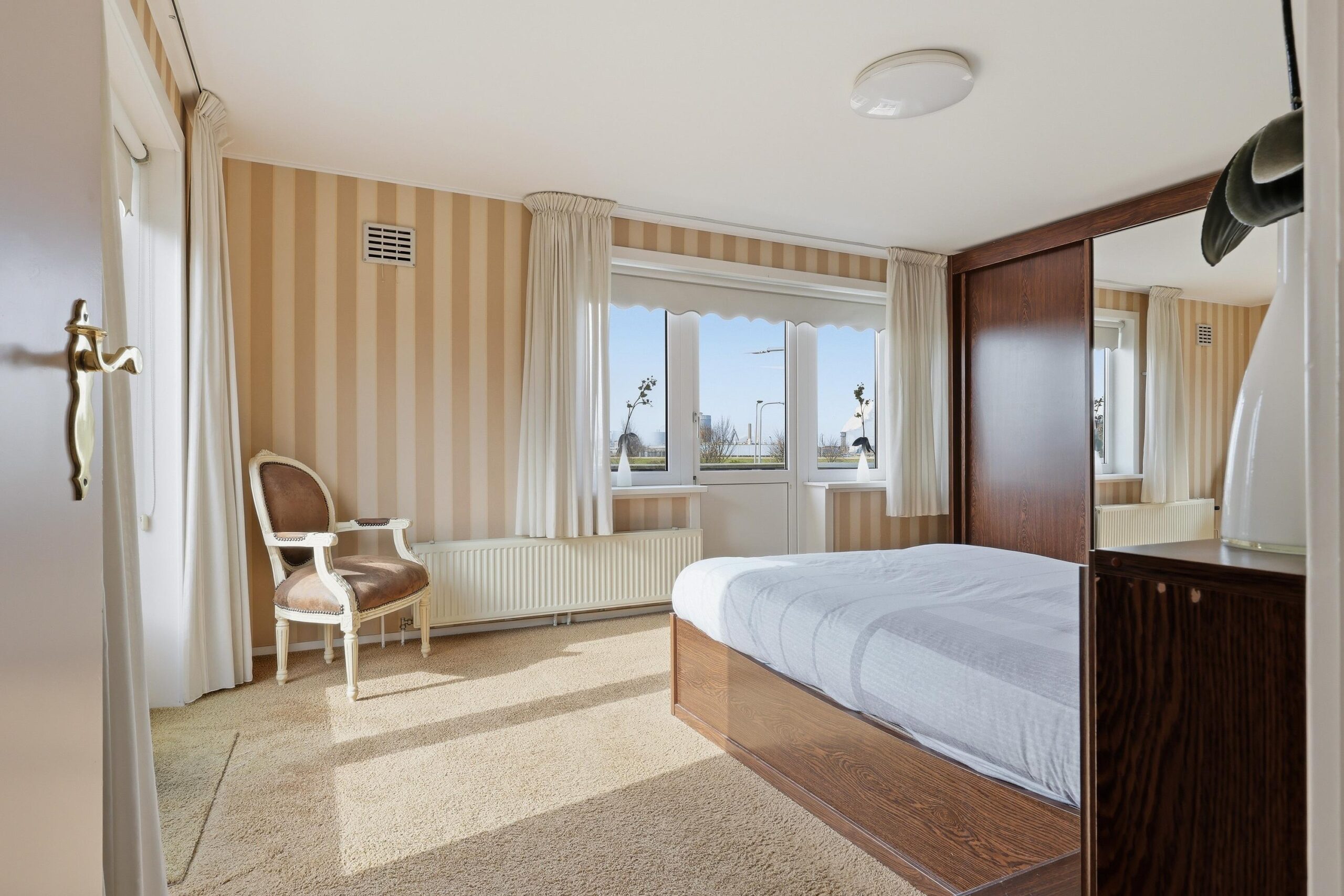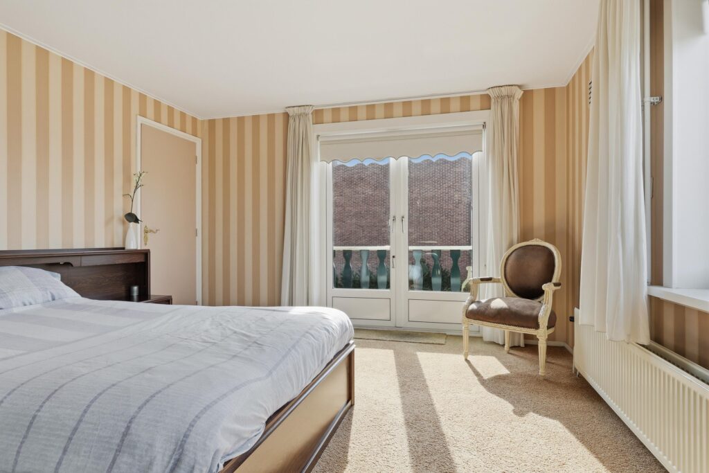 Op de eerste verdieping vind je twee slaapkamers. De eerste slaapkamer beschikt over een balkon met een schitterend uitzicht op het kanaal en grenst aan een lichte extra kleine kamer, die perfect in te richten is als inloopkast of gezellige werkplek. De tweede slaapkamer is ruim en straalt eveneens een prettige sfeer uit.