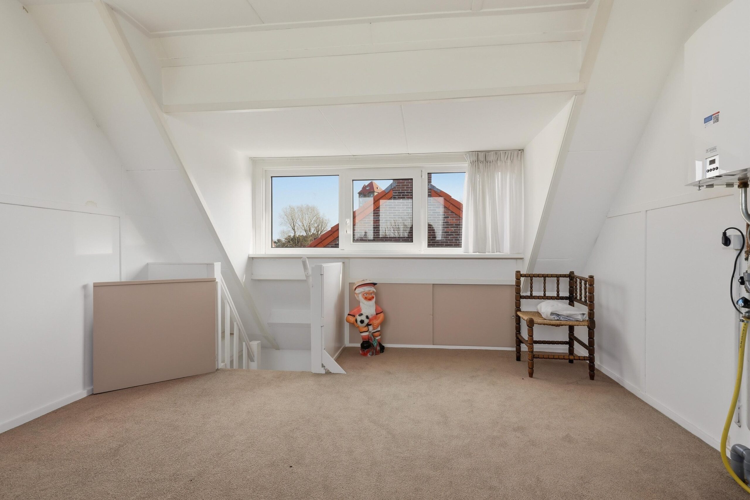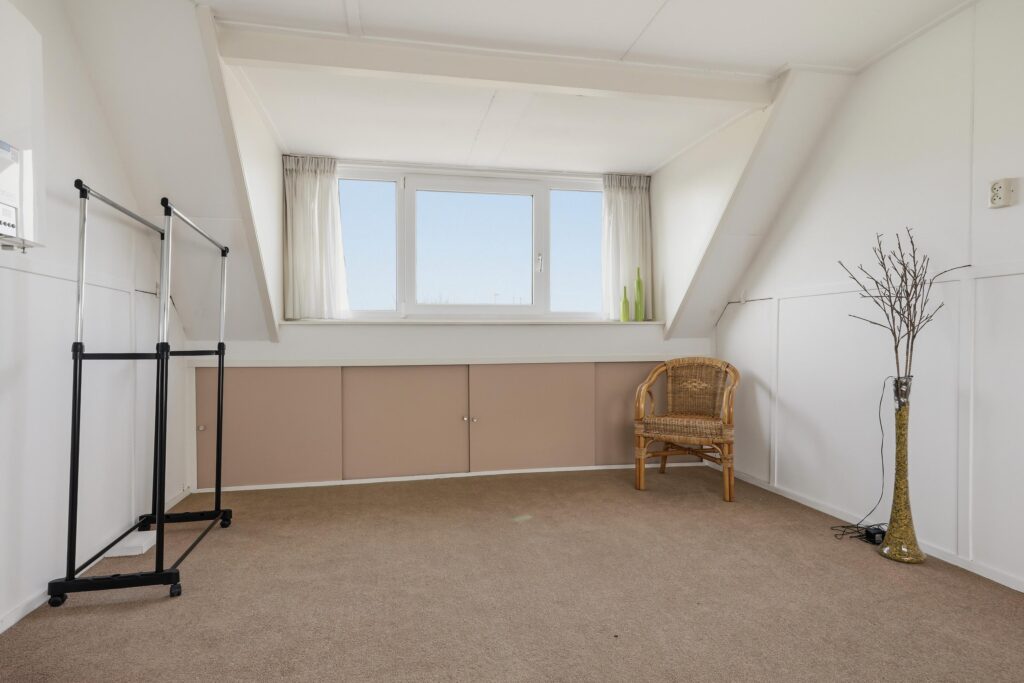 De zolder biedt volop potentie en kan desgewenst worden omgevormd tot een extra slaapkamer, atelier of ruime bergruimte.