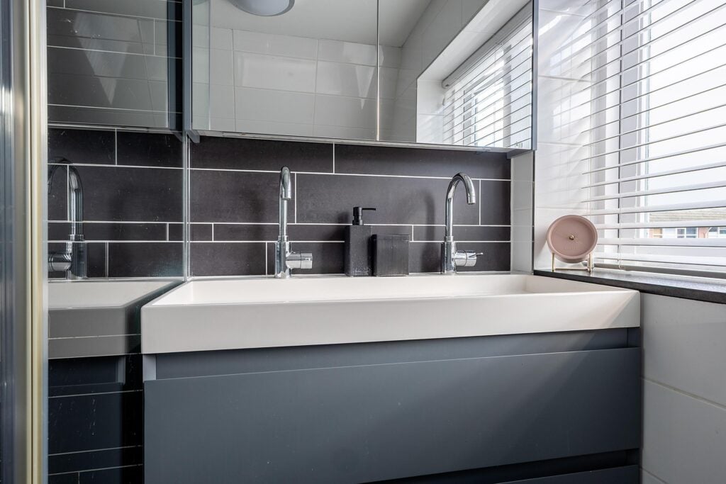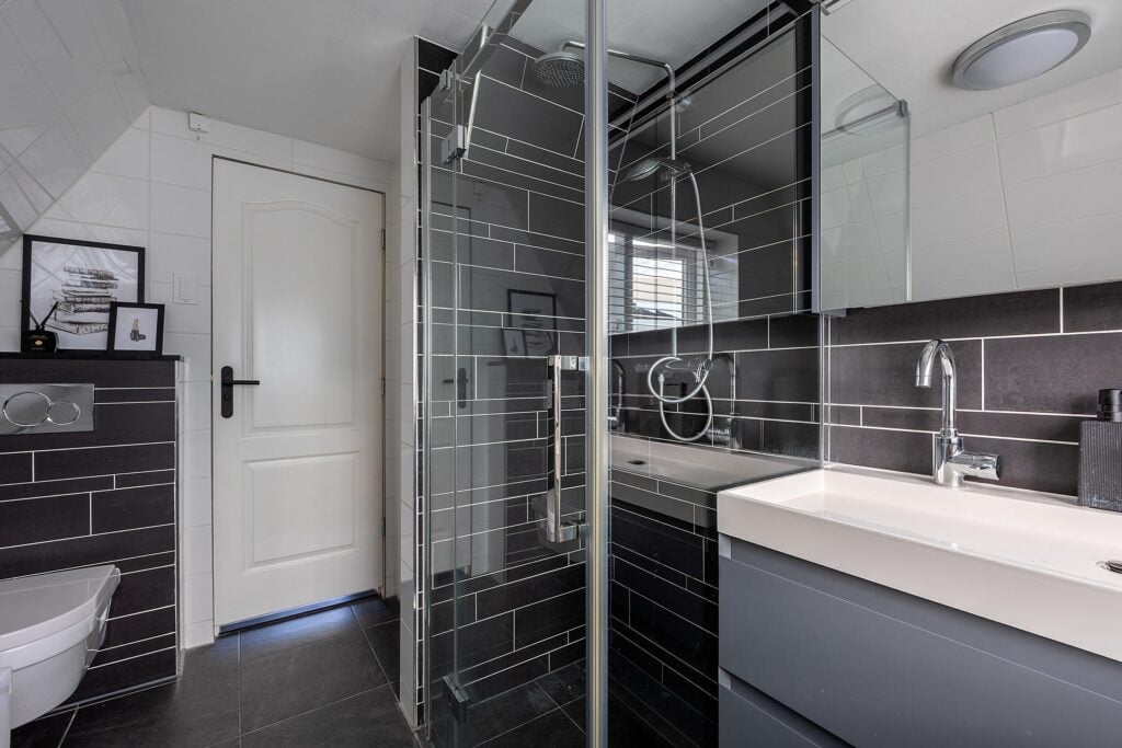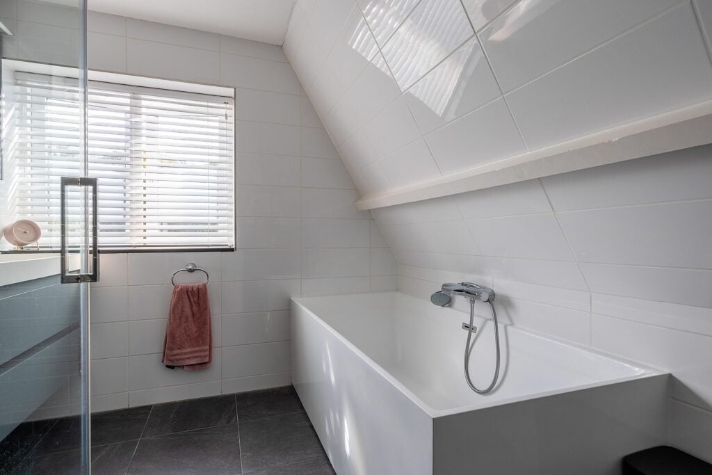 Op de eerste verdieping vind je twee slaapkamers en de moderne badkamer. Deze is nog altijd tiptop in orde, met een ligbad, aparte douche, dubbele wastafel en een tweede toilet dat in 2025 geheel is vernieuwd. Eén van de slaapkamers wordt nu gebruikt als kleding- en werkkamer, maar laat zich eenvoudig weer omtoveren tot slaapkamer. Dankzij de airco, geplaatst in 2023, is het hier het hele jaar door aangenaam.