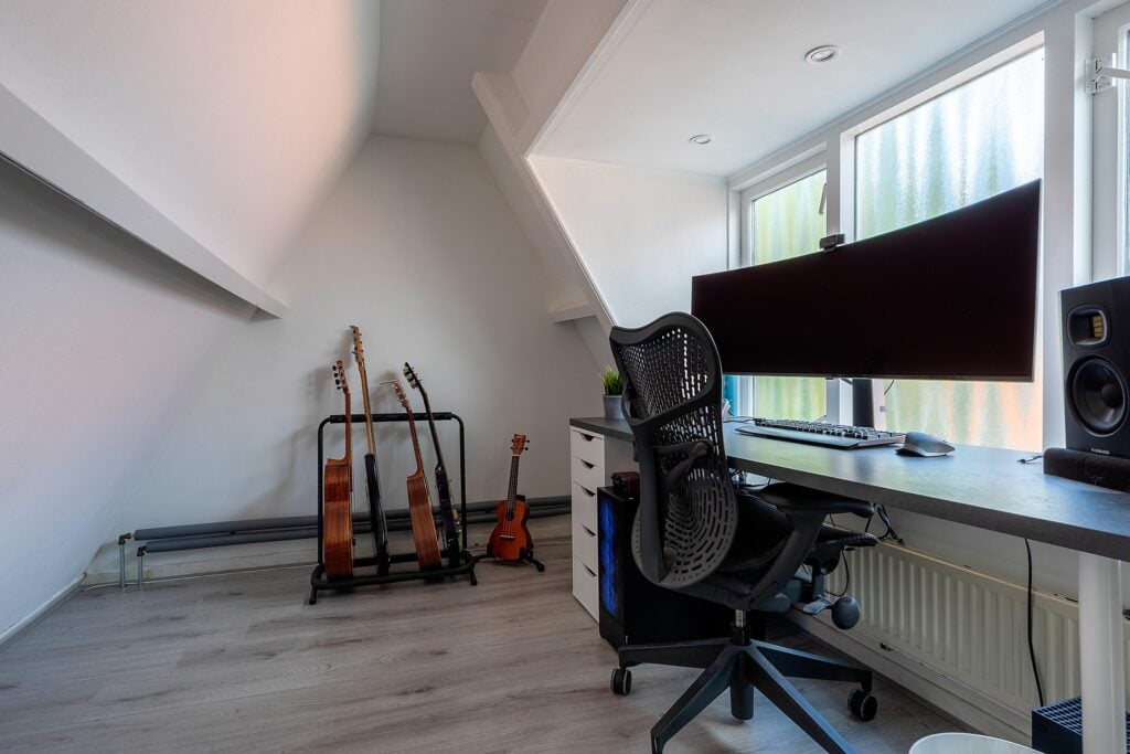 De tweede verdieping is in 2025 opnieuw aangepakt en heeft daardoor een frisse, eigentijdse uitstraling. De trap naar boven is verbouwd en voorzien van een nieuwe leuning en traphek, terwijl de zolderkamer zelf is gerenoveerd en extra comfortabel oogt. Deze ruimte telt niet eens mee in het officiële woonoppervlak, wat betekent dat je hier nog extra bonusruimte hebt. Ideaal dus voor bijvoorbeeld een fijne thuiswerkplek, zoals ook in de huidige situatie is ingericht.