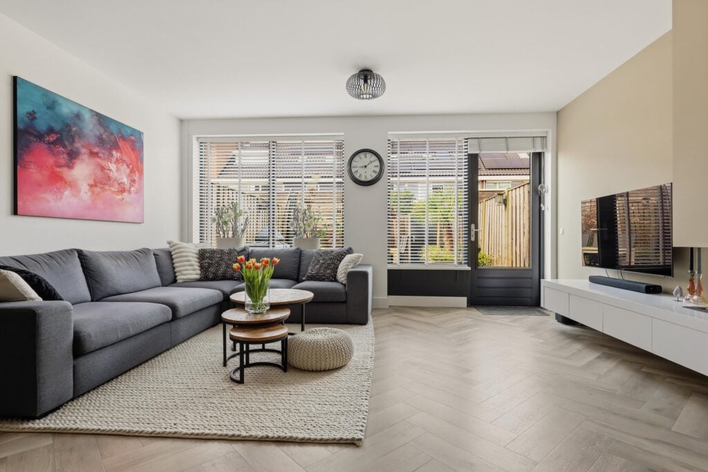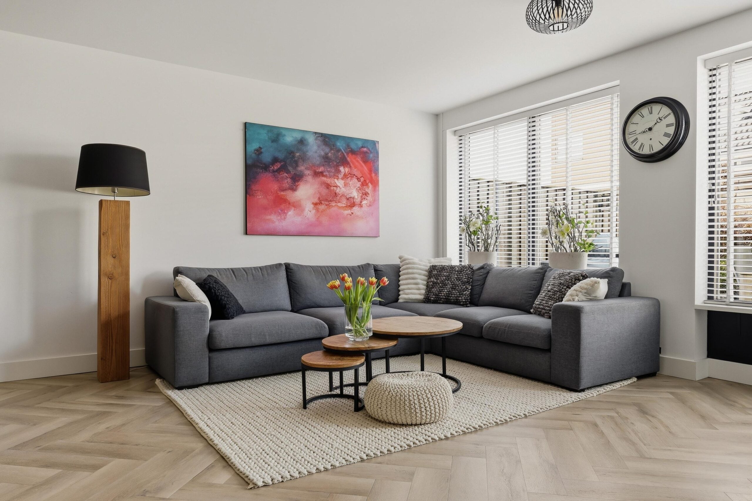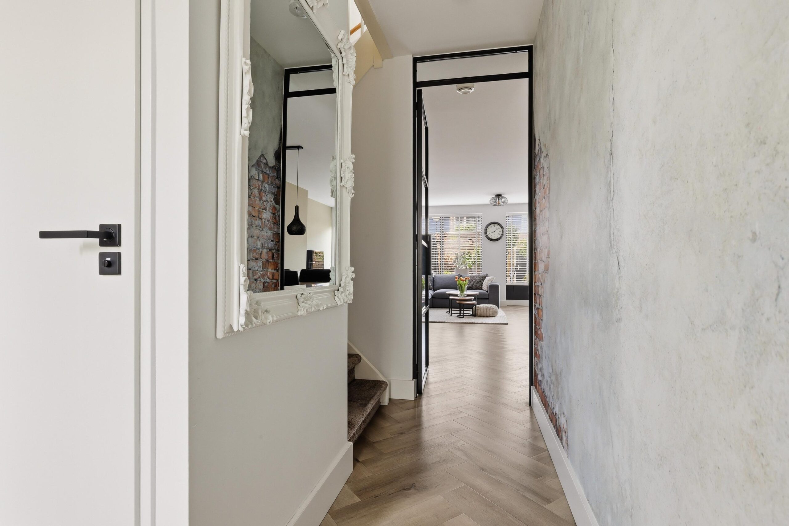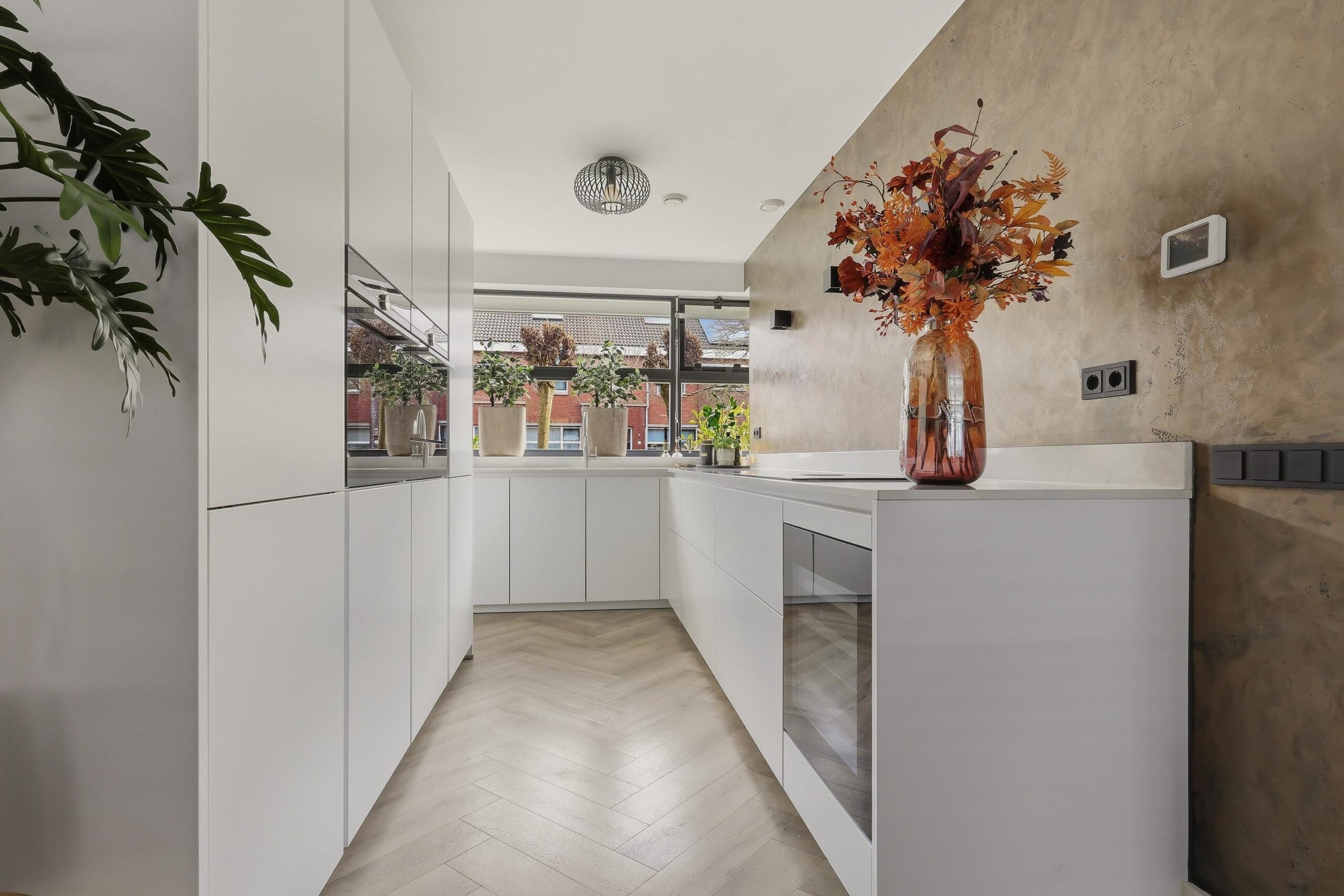 Bij binnenkomst valt direct de verzorgde afwerking en het prettige licht op. De hal biedt toegang tot het toilet en de ruime leefruimte. De woonkamer voorzien van vloerverwarming is heerlijk licht en ruim opgezet, met voldoende plaats voor een gezellige zithoek en een royale eettafel. Dankzij de grote raampartijen en de directe verbinding met de achtertuin ontstaat een fijne, open sfeer, extra versterkt door de gashaard. De moderne keuken is uitgevoerd met diverse inbouwapparatuur onder andere een klimaatkast en een kokend waterkraan, en vormt een prettige plek voor kookliefhebbers.