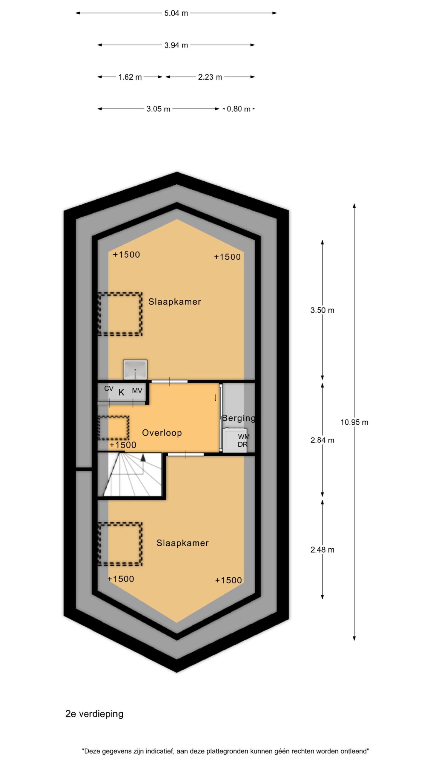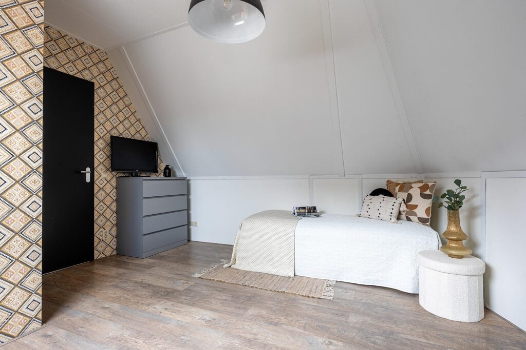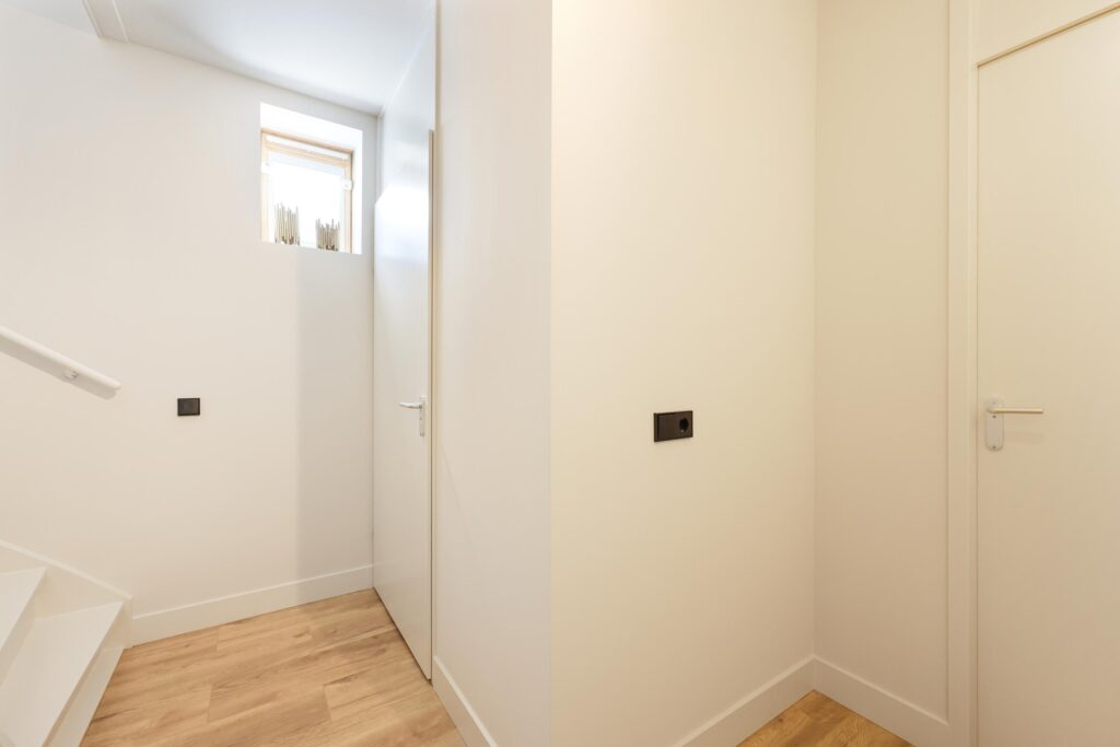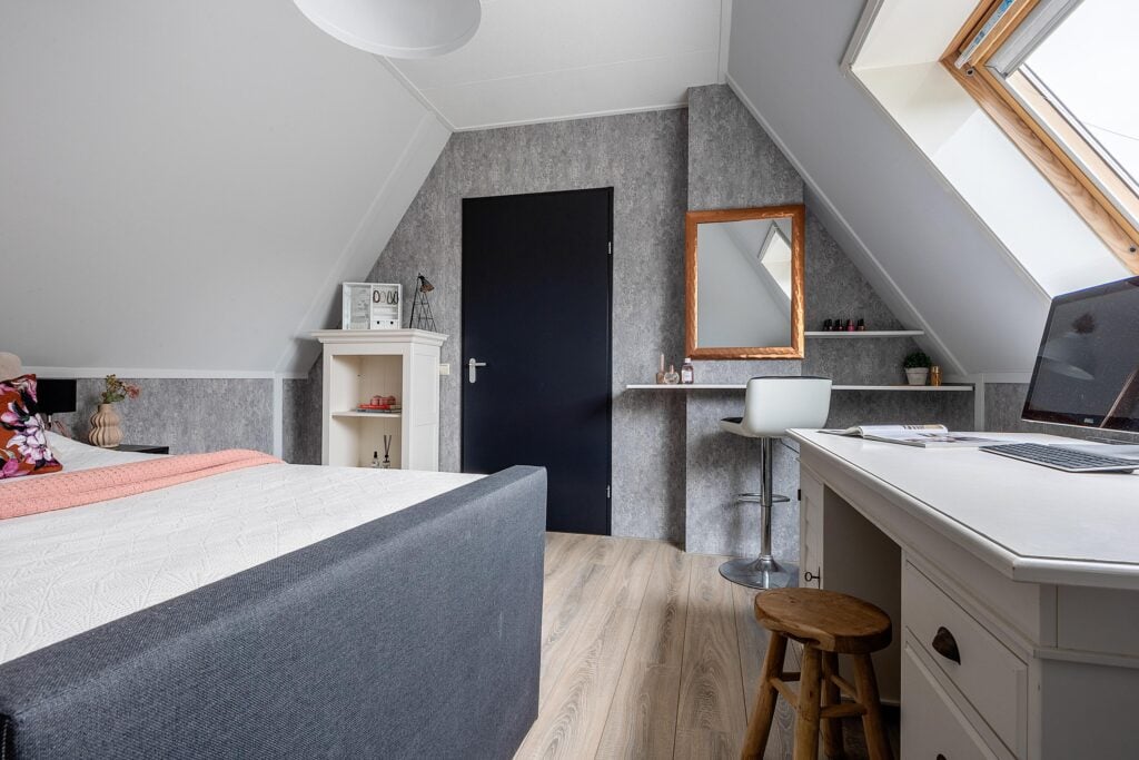 De tweede verdieping herbergt aan weerszijden nog twee slaapkamers. Beide kamers profiteren van grote dakramen die zorgen voor veel daglicht. Tevens is er op de overloop een berging te vinden met ruimte voor de wasmachine en droger, naast de CV-ketel en mechanische ventilatie-unit.