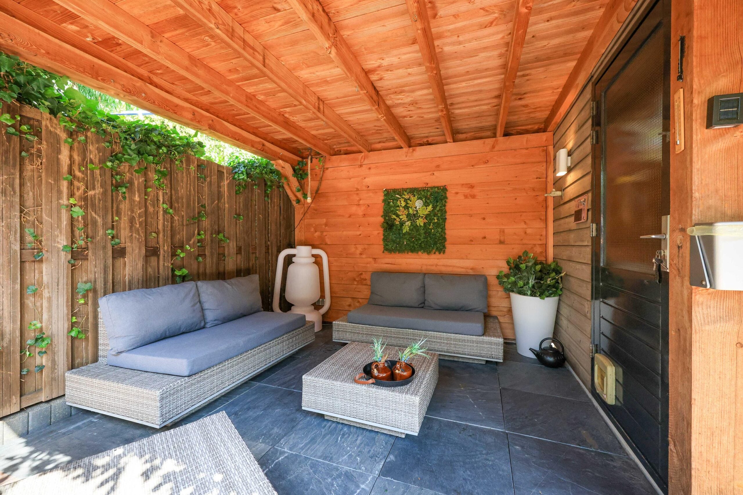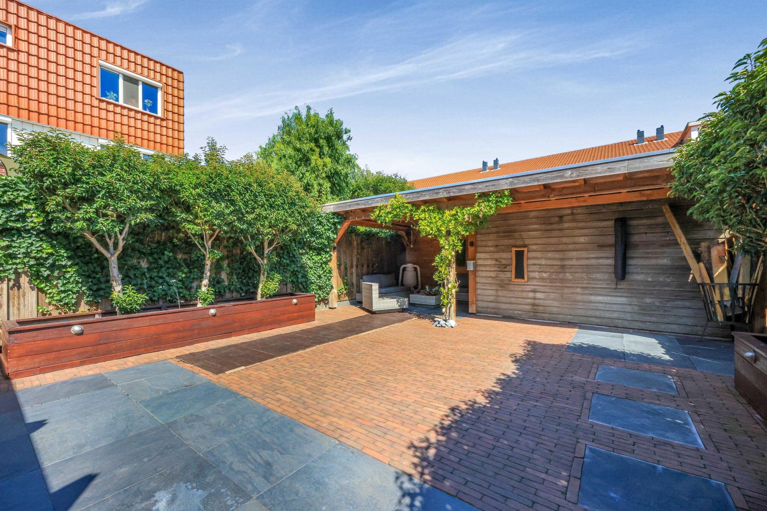 – Overkapping in de grote achtertuin;