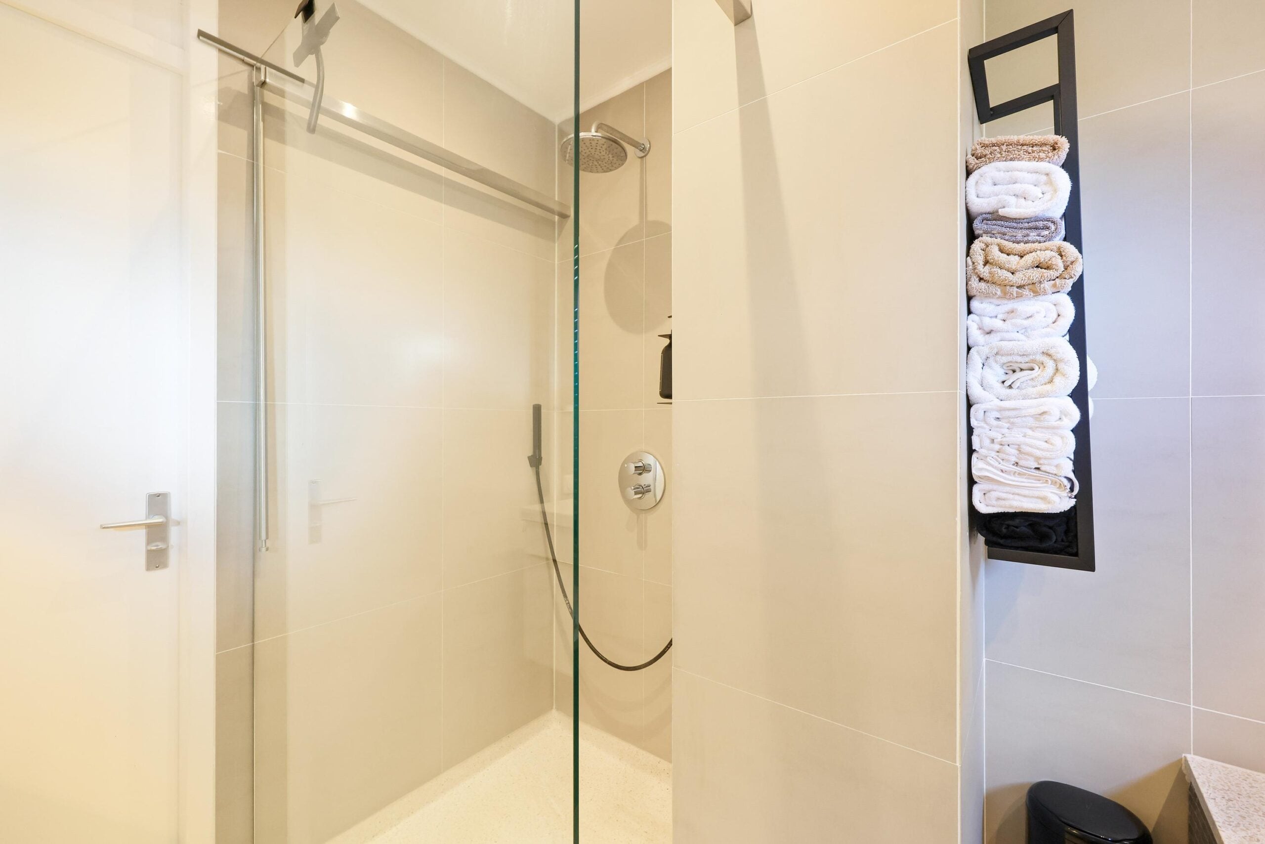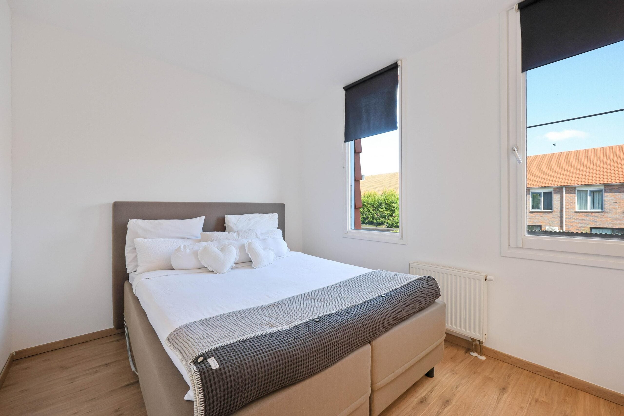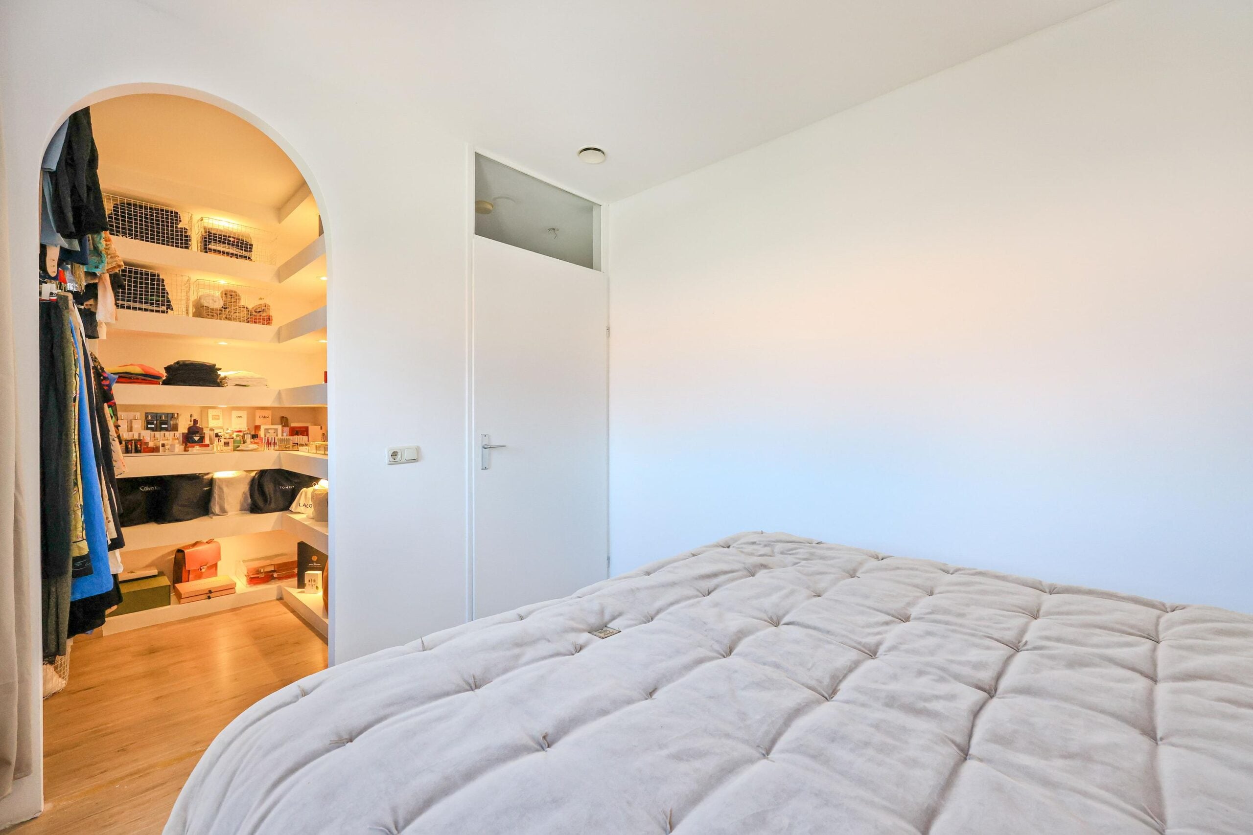 De bovenste etage biedt twee extra slaapkamers, waarvan een tweede master bedroom, die nóg ruimer is en beschikt over een ingebouwd kastmeubel en veel lichtinval dankzij meerdere ramen. De vierde slaapkamer is eveneens verrassend ruim en bevat een eigen inloopkast. Op deze verdieping bevindt zich ook een aparte ruimte met de CV-ketel en aansluitingen voor een wasmachine en droger.