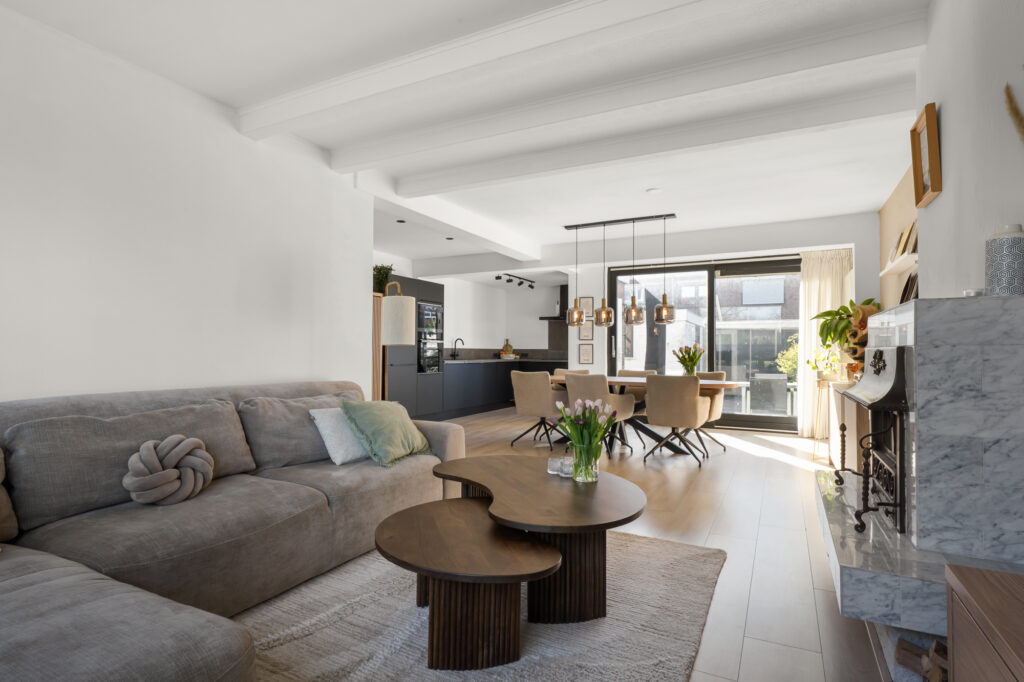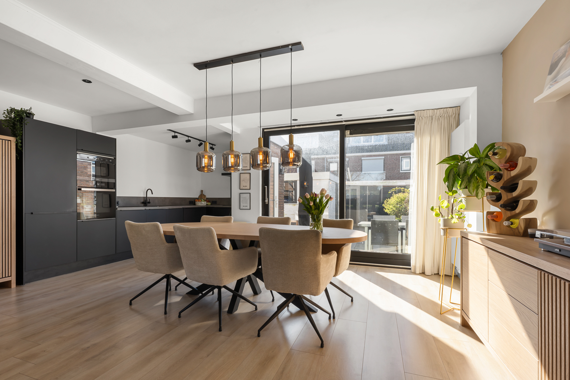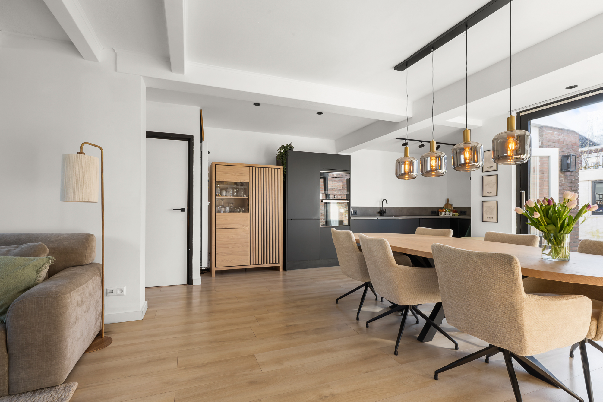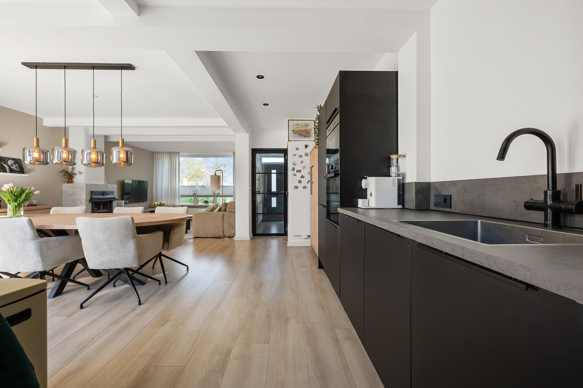 Bij binnenkomst valt direct de lichte en prettige sfeer op. De woonkamer is ruim opgezet en dankzij de grote raampartijen geniet je hier van een fijne lichtinval en vrij uitzicht aan de voorzijde. Aan de achterzijde bevindt zich de moderne keuken, voorzien van diverse inbouwapparatuur en een praktische indeling die koken en samen zijn moeiteloos combineert. Via de schuifpui is er een directe verbinding met de achtertuin, wat zorgt voor een heerlijk binnen-buitengevoel.