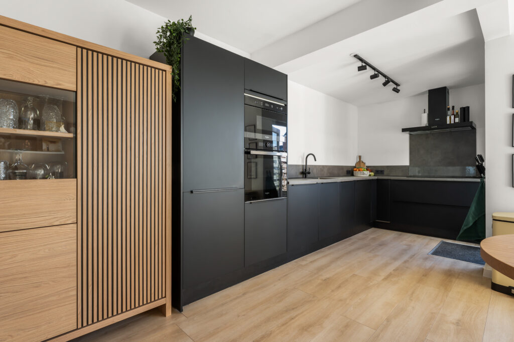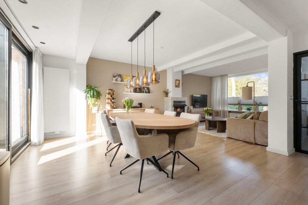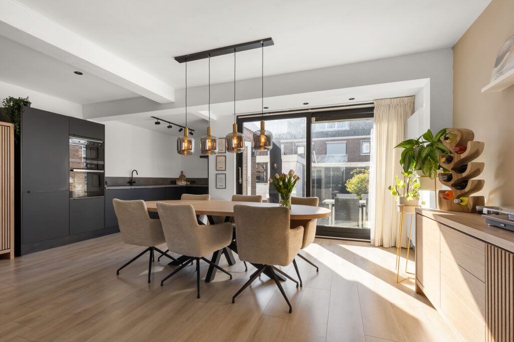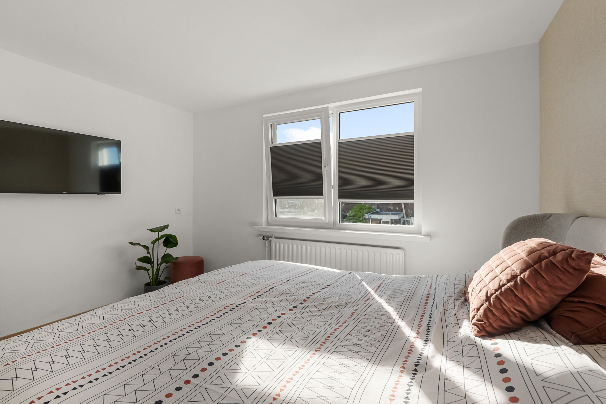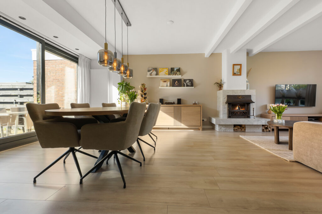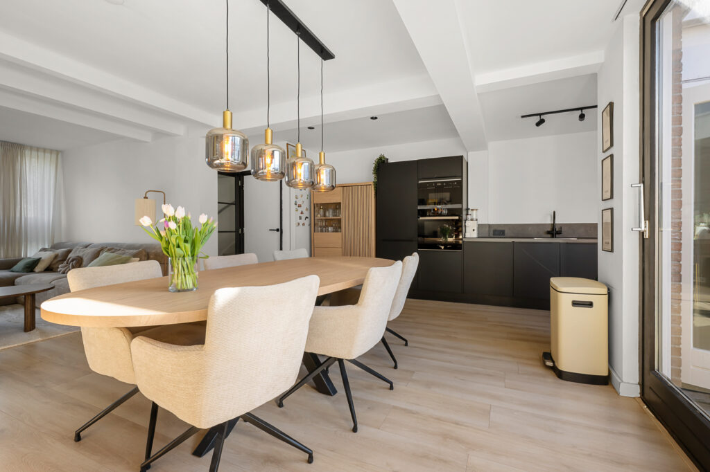 Bij binnenkomst valt direct de lichte en prettige sfeer op. De woonkamer is ruim opgezet en dankzij de grote raampartijen geniet je hier van een fijne lichtinval en vrij uitzicht aan de voorzijde. Aan de achterzijde bevindt zich de moderne keuken, voorzien van diverse inbouwapparatuur en een praktische indeling die koken en samen zijn moeiteloos combineert. Via de schuifpui is er een directe verbinding met de achtertuin, wat zorgt voor een heerlijk binnen-buitengevoel.